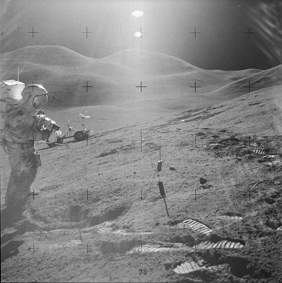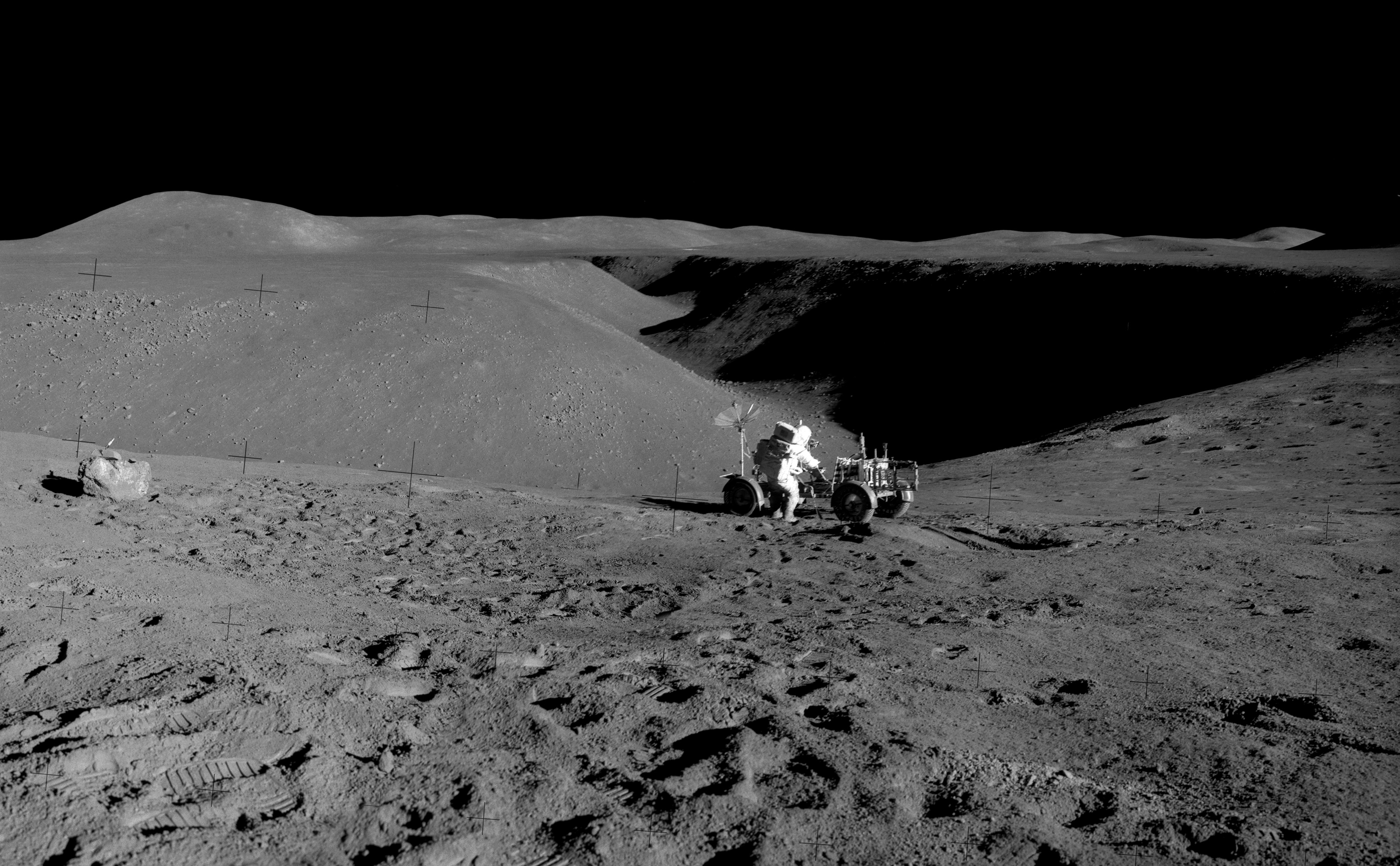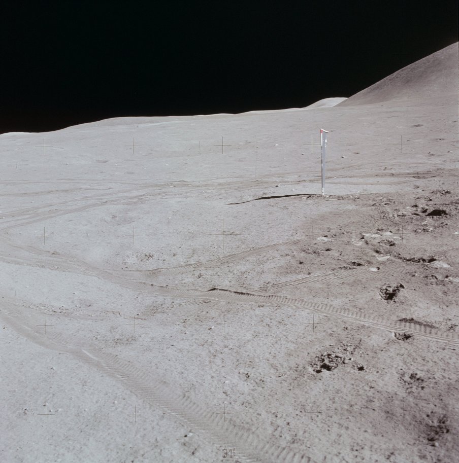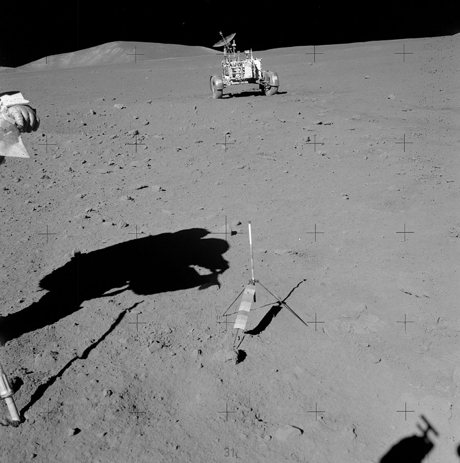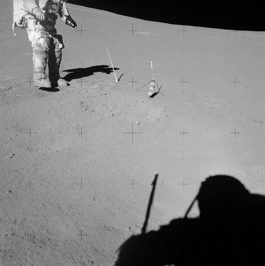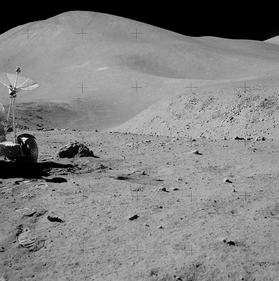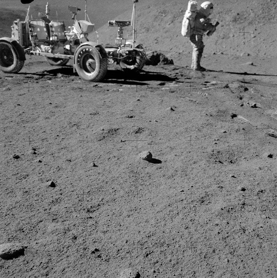 See, also, a labeled version ( 47 Mb ) with the Station 10 pinned down by triangulation of objects on the far wall of the rille identified by comparison between the LROC images and the 500-mm Hasselblad sequences Dave Scott took from Station 10.
