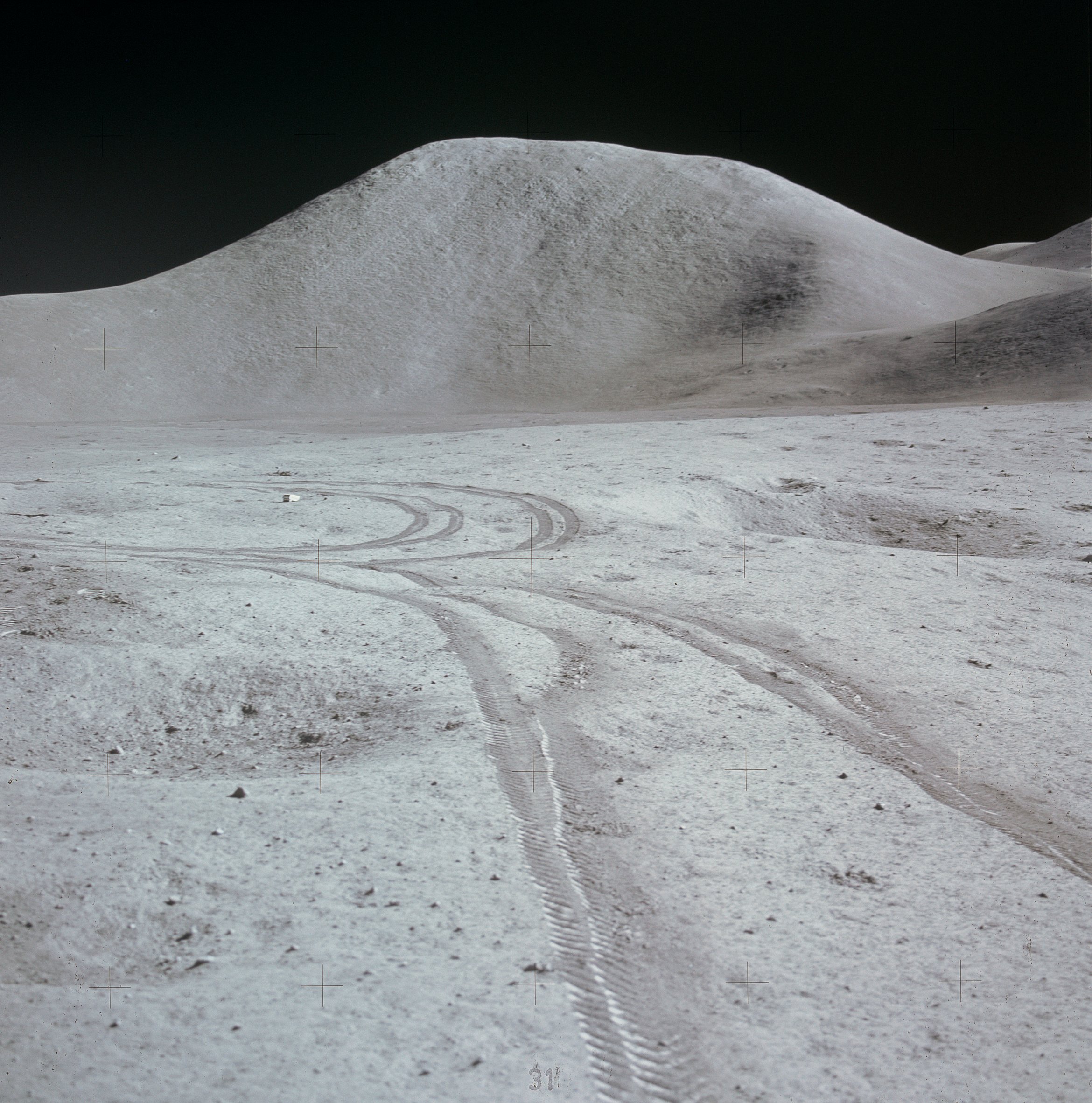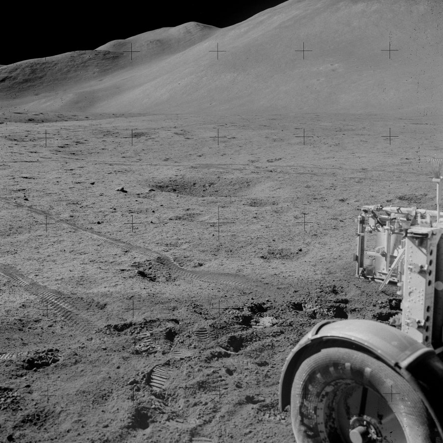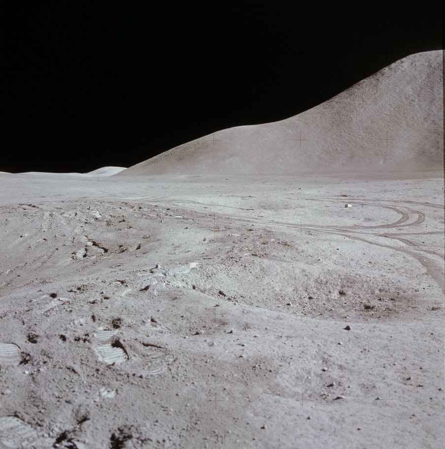 Rev 25. Vertical view into Taurus-Littrow.AS15-94-12810 ( 137k or 629k )