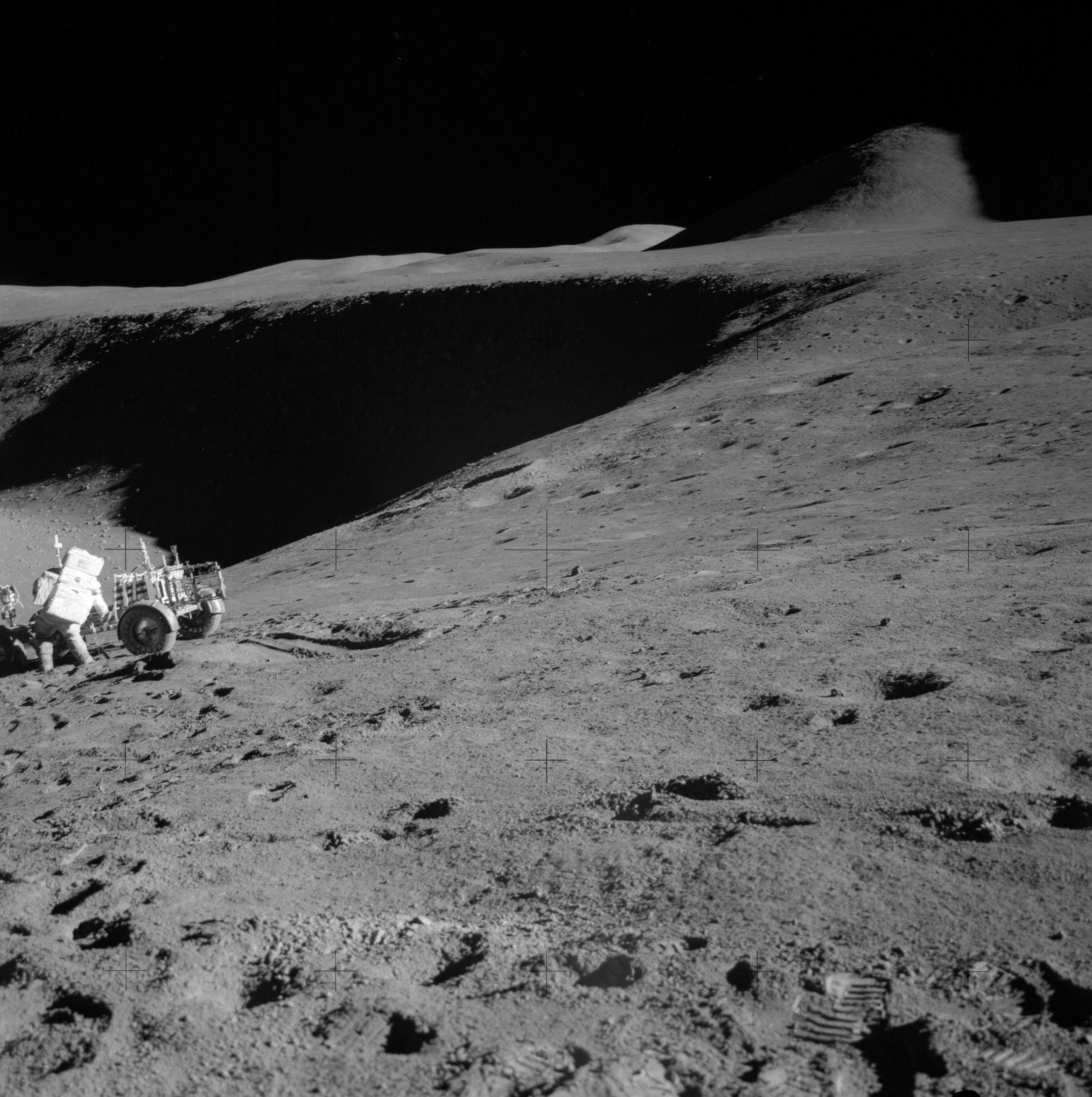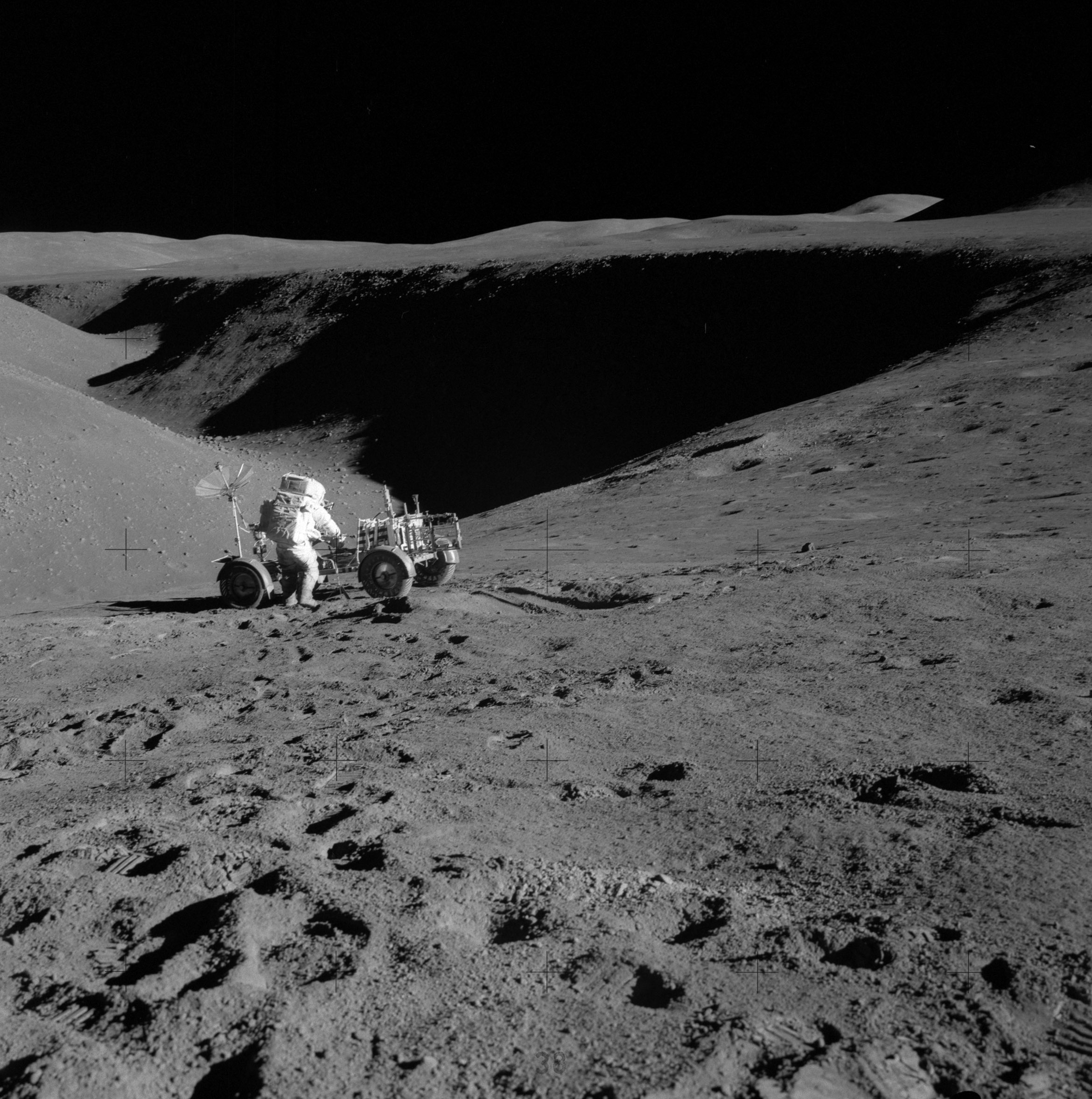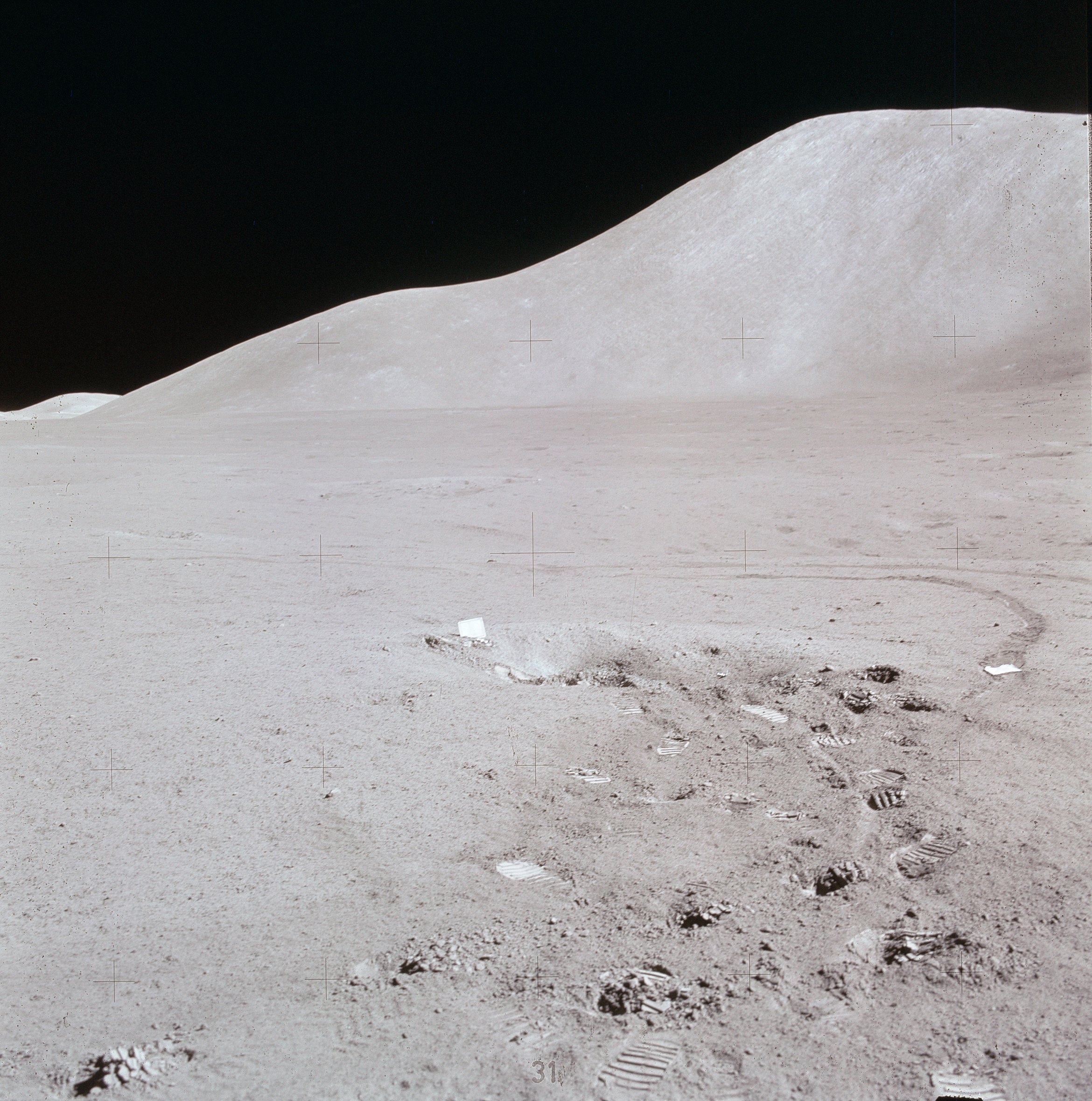 Rev 25. Vertical view into Taurus-Littrow.AS15-94-12810 ( 137k or 629k )