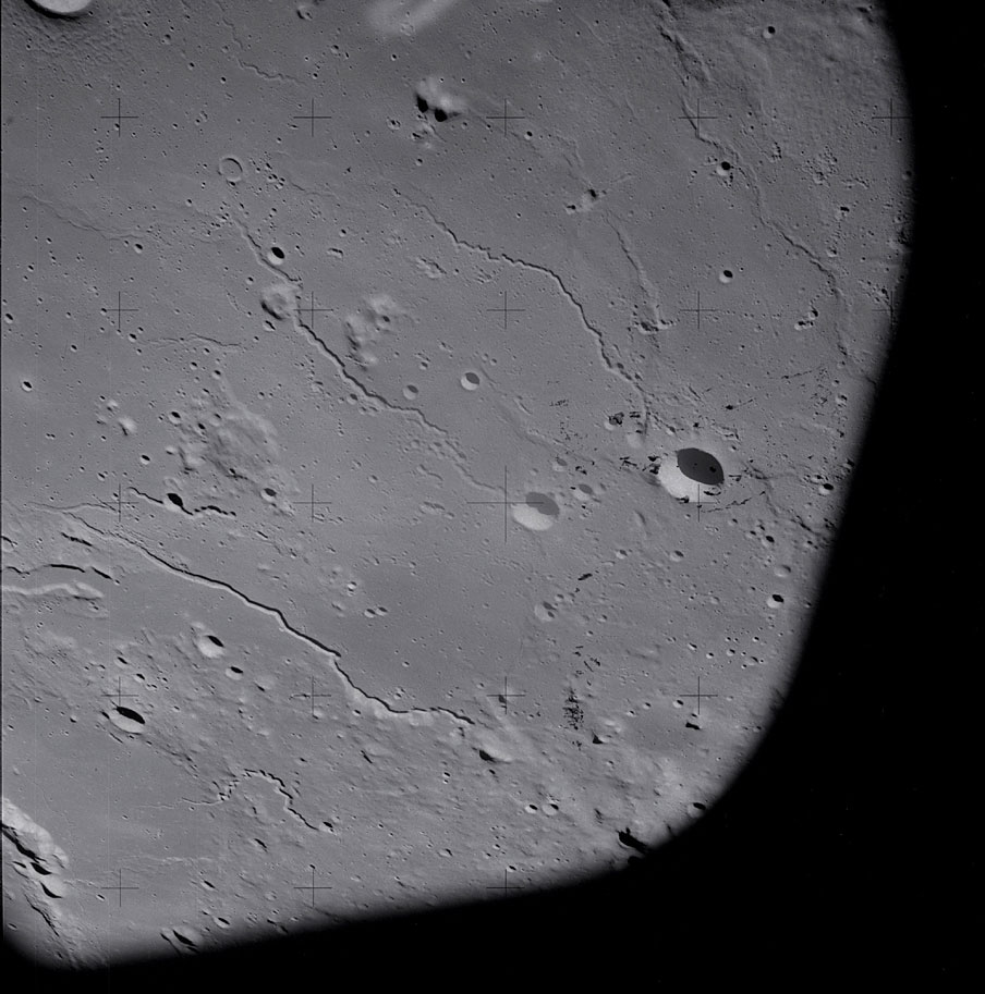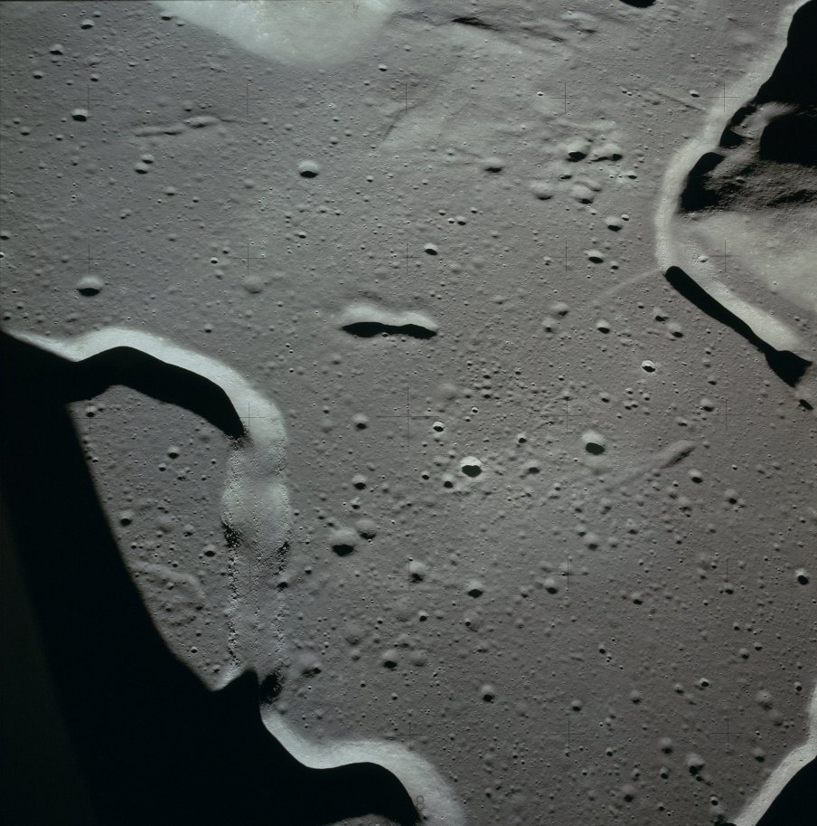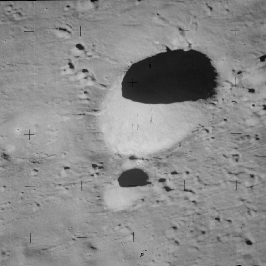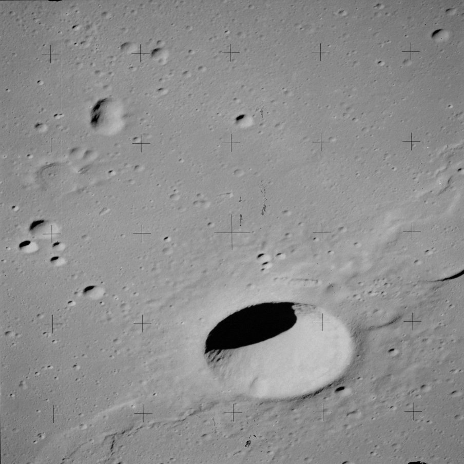Rev 70. Sea of Tranquility. Crater Moltke. Hypatia Rille. Scan by Kipp Teague.AS15-97-13285 ( 99k or 744k )