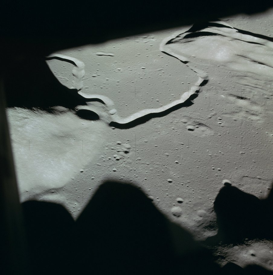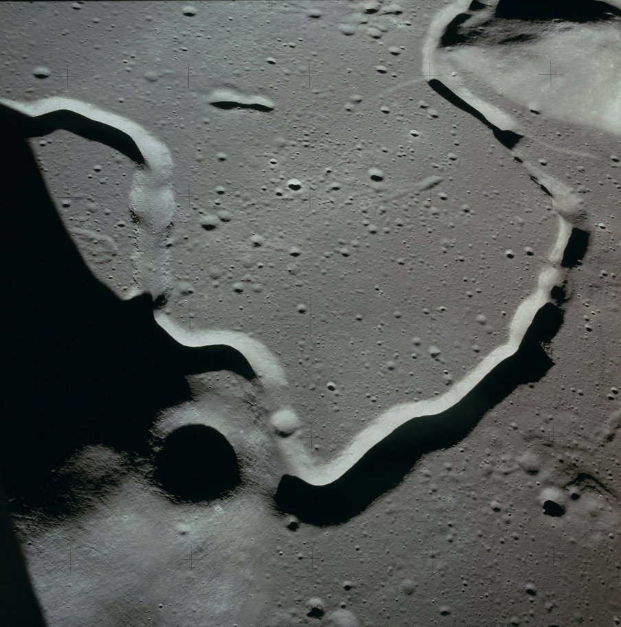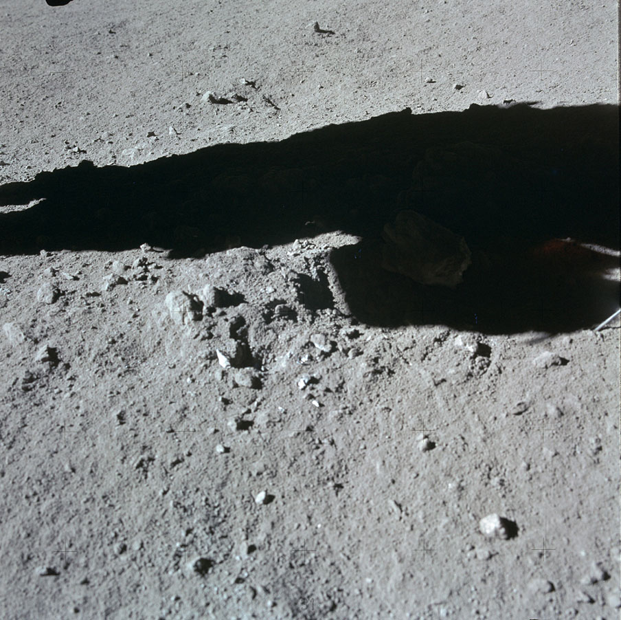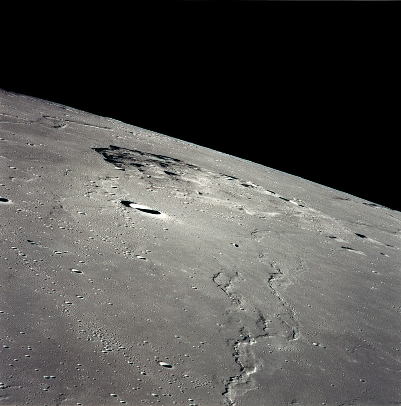 Rev 70. Sea of Tranquility. Crater Moltke. Hypatia Rille. Scan by Kipp Teague.AS15-97-13285 ( 99k or 744k )