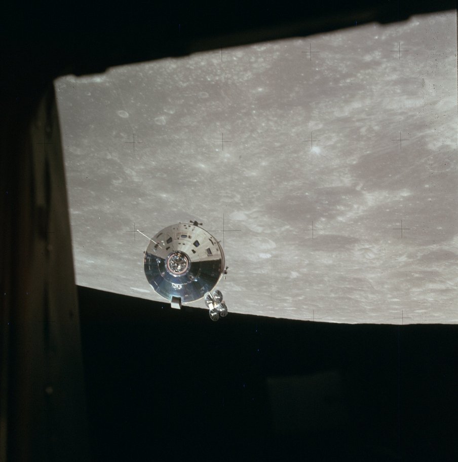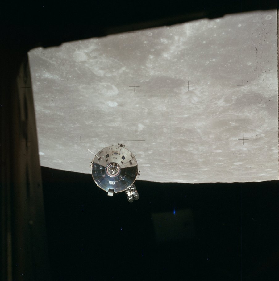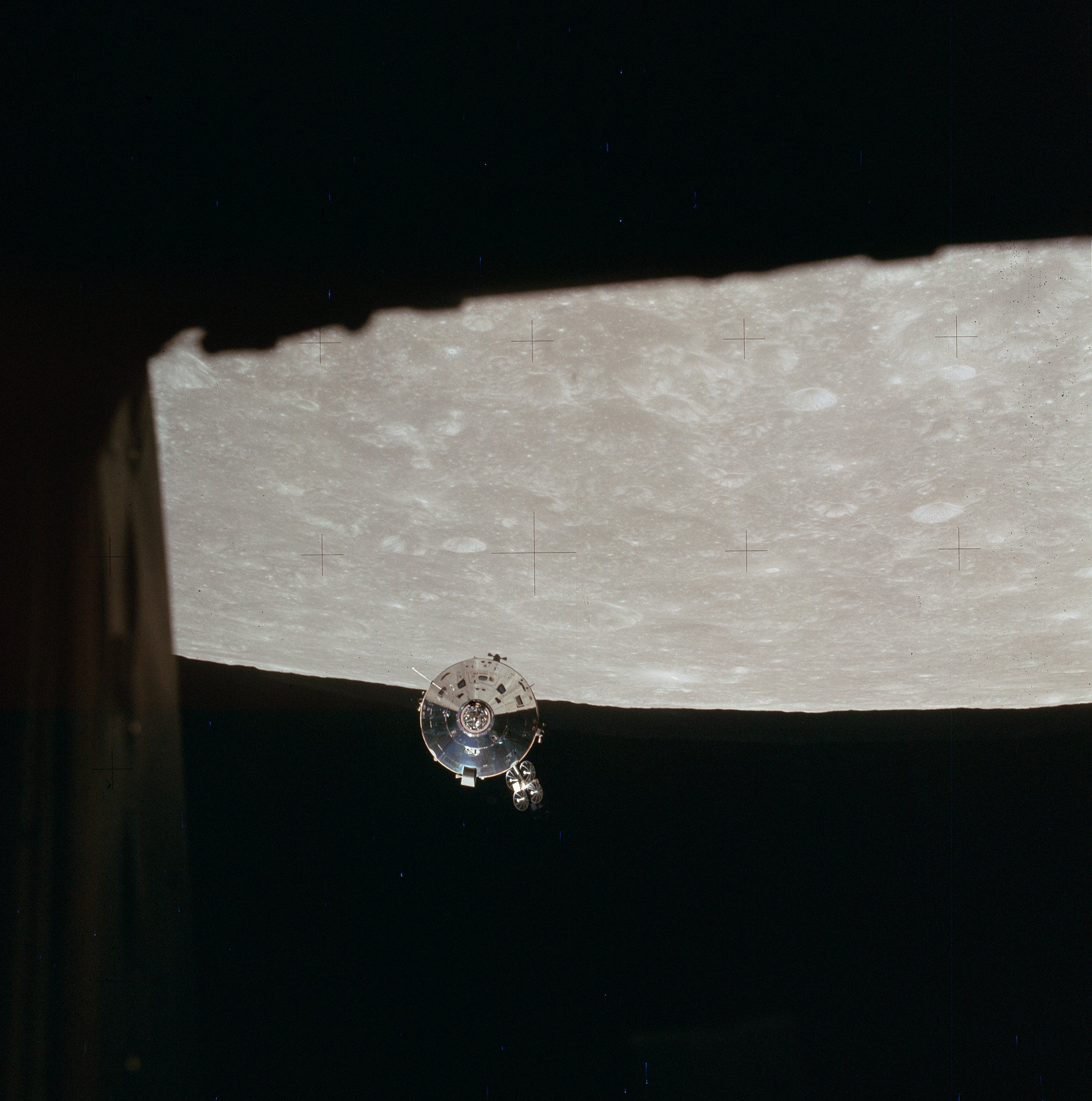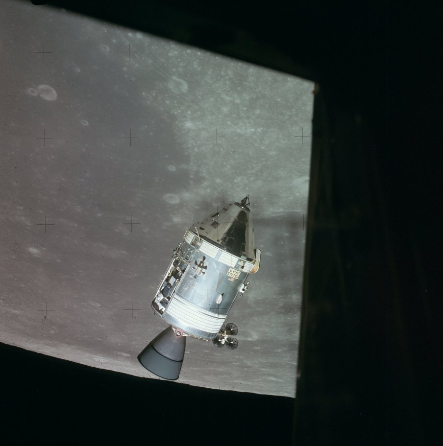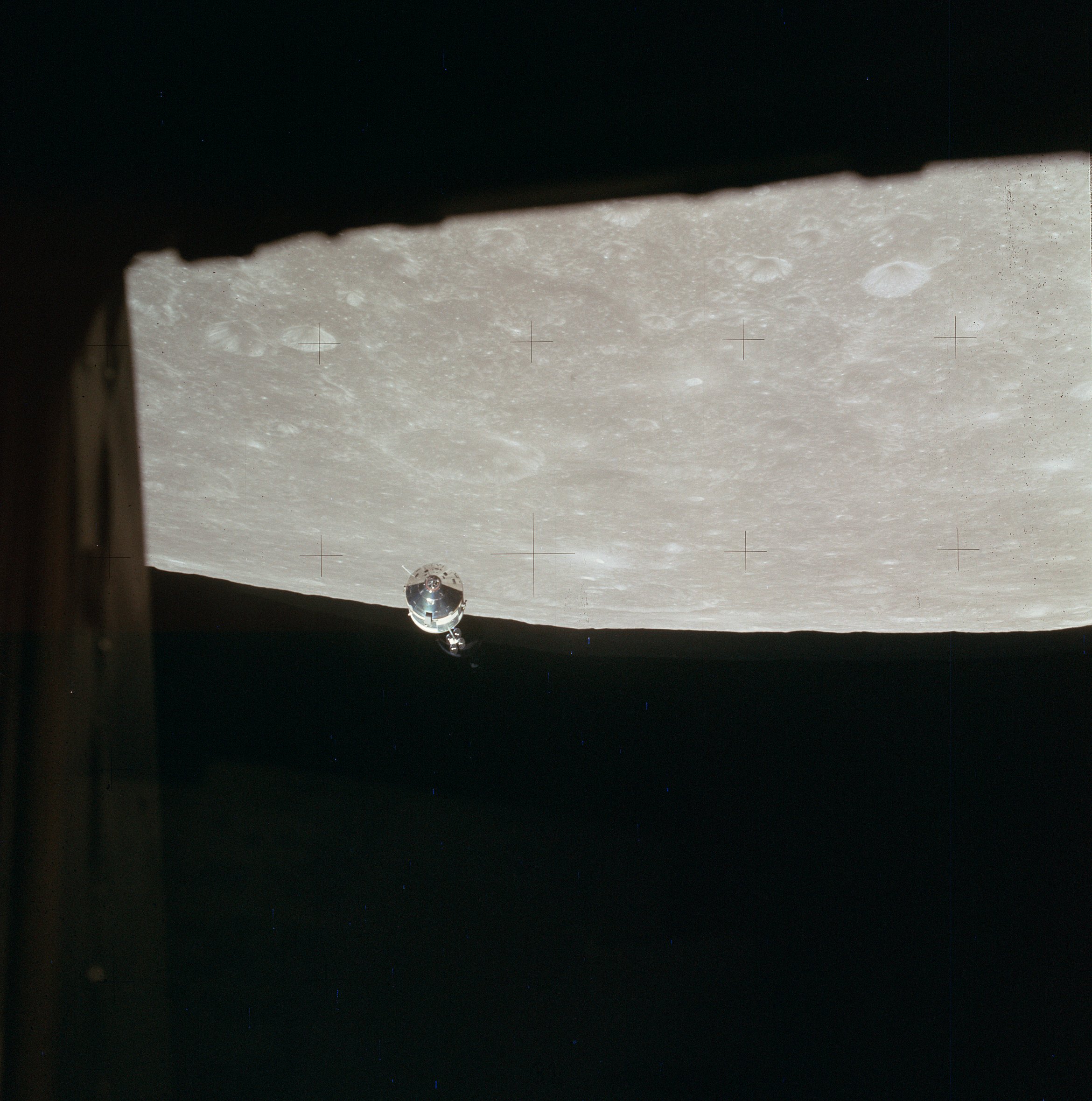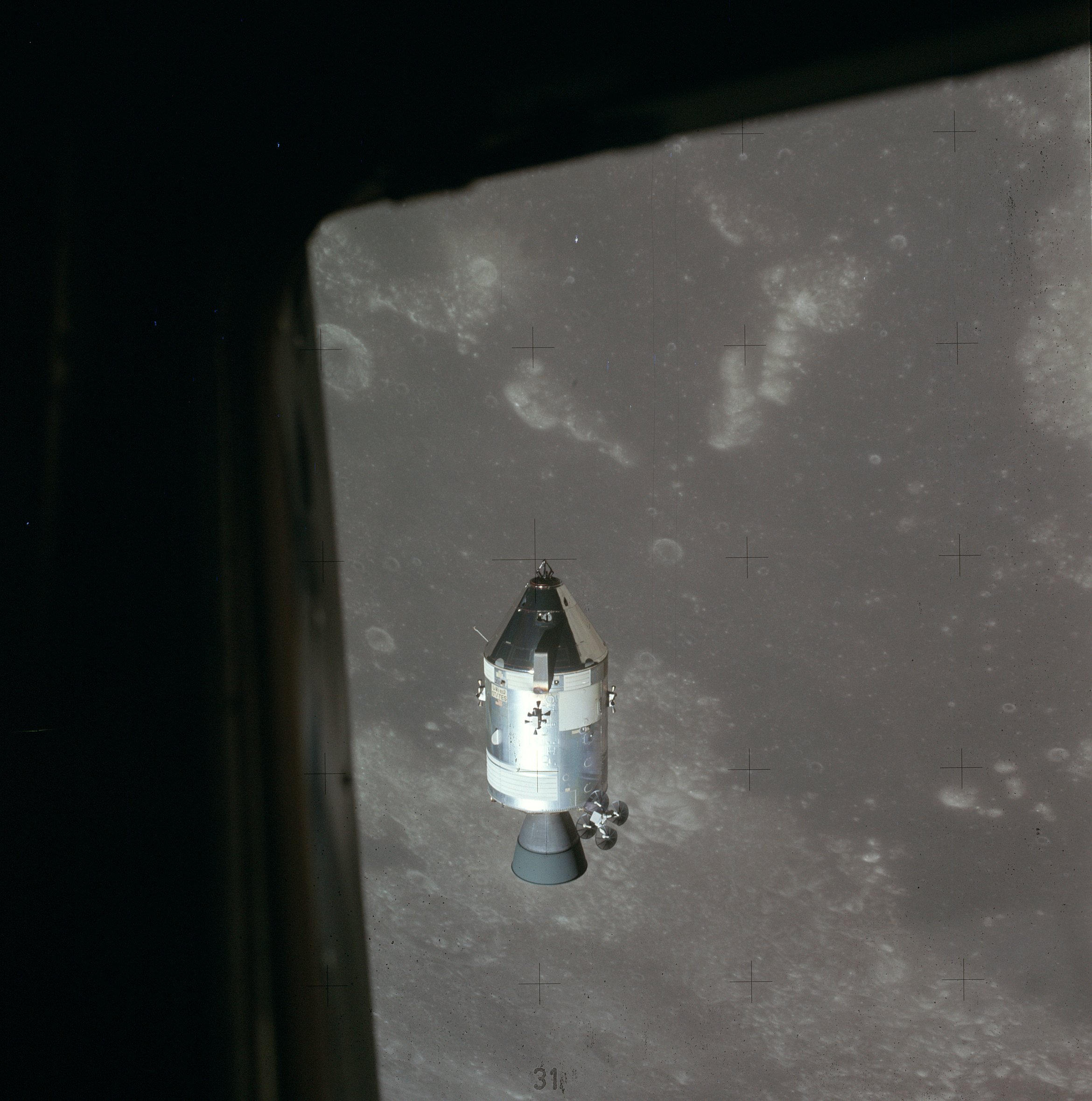 At some point after the SEVA but prior to EVA-1, Dave and Jim took a series of pictures out the windows. The photos taken out Jim's window are 11394 to 11397. Assembled by Erik van Meijgaarden.107:31:57 Post-SEVA Window Pan