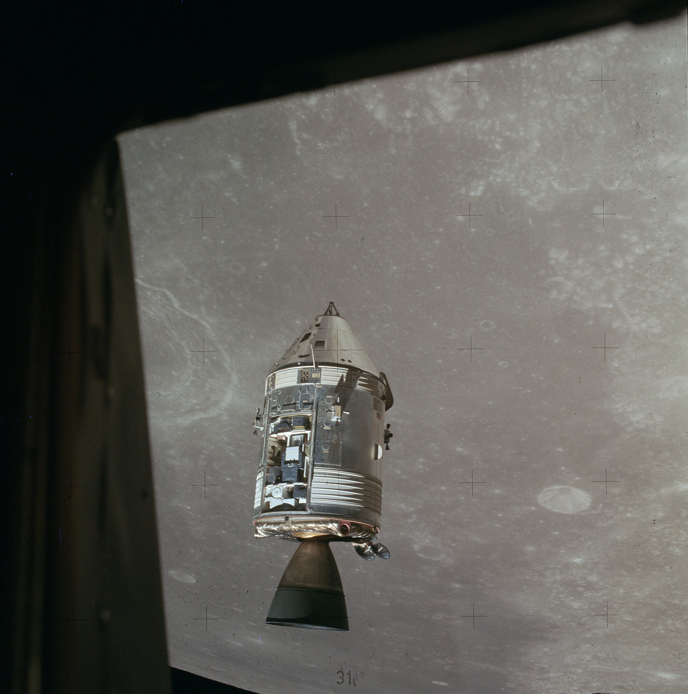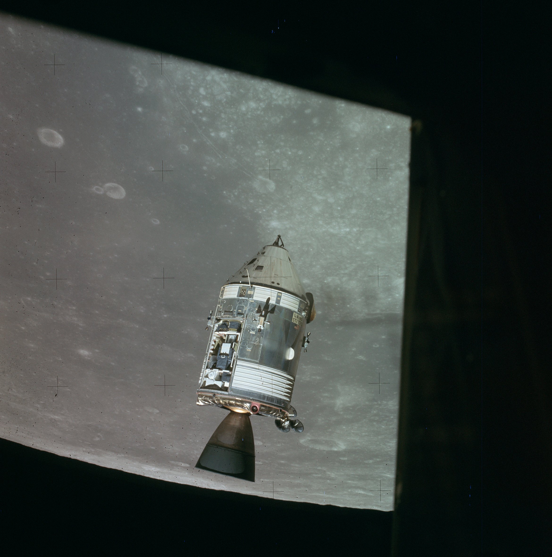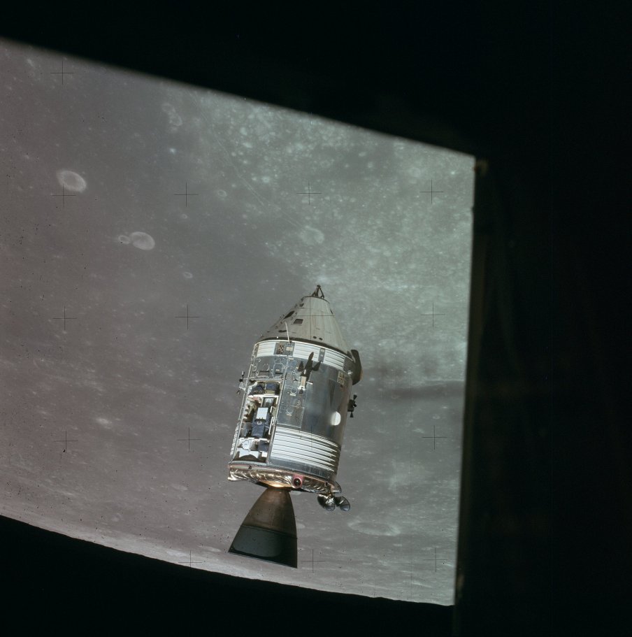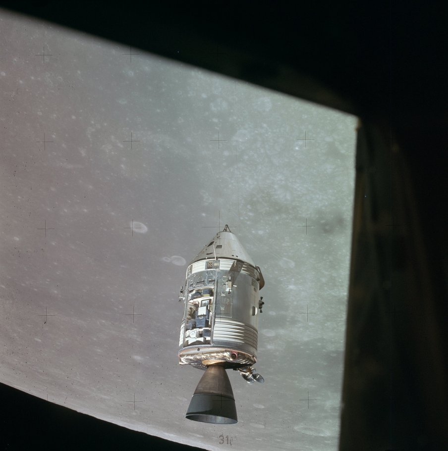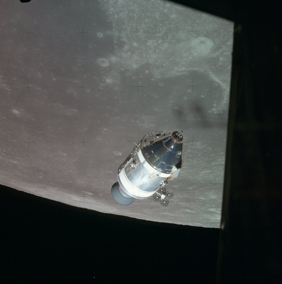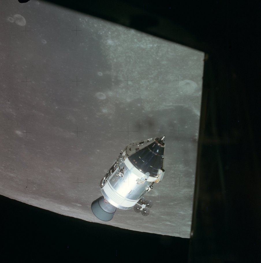 At some point after the SEVA but prior to EVA-1, Dave and Jim took a series of pictures out the windows. The photos taken out Jim's window are 11394 to 11397. Assembled by Erik van Meijgaarden.107:31:57 Post-SEVA Window Pan