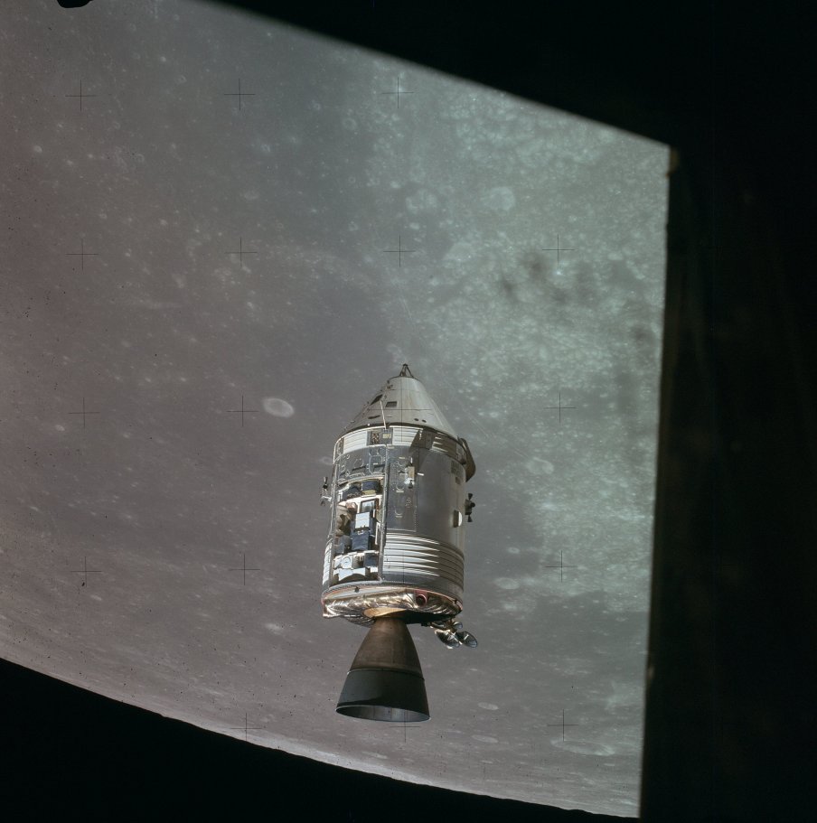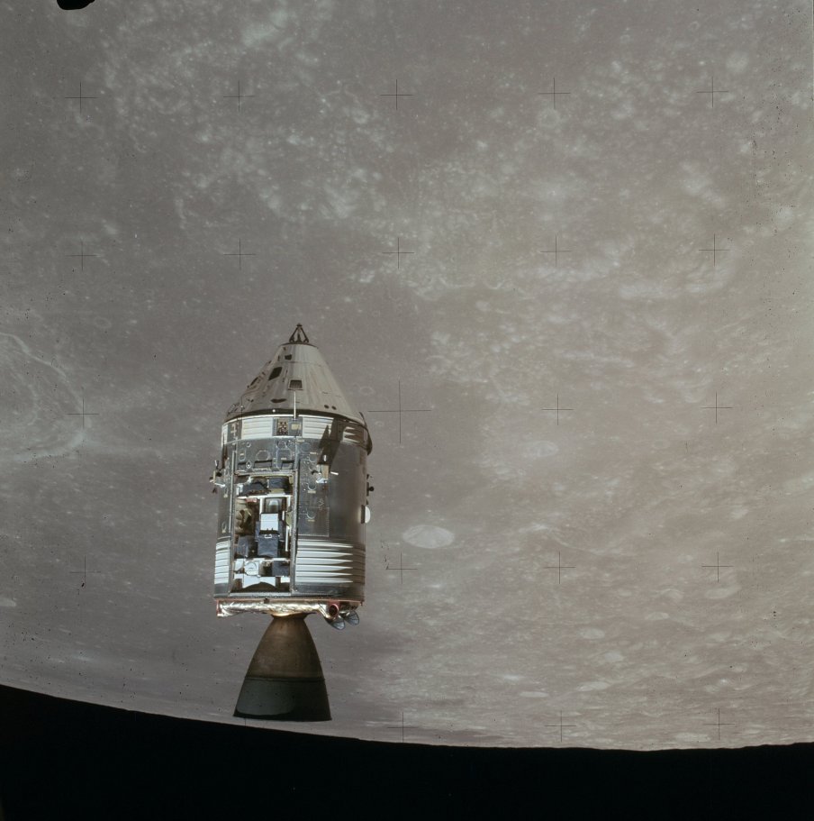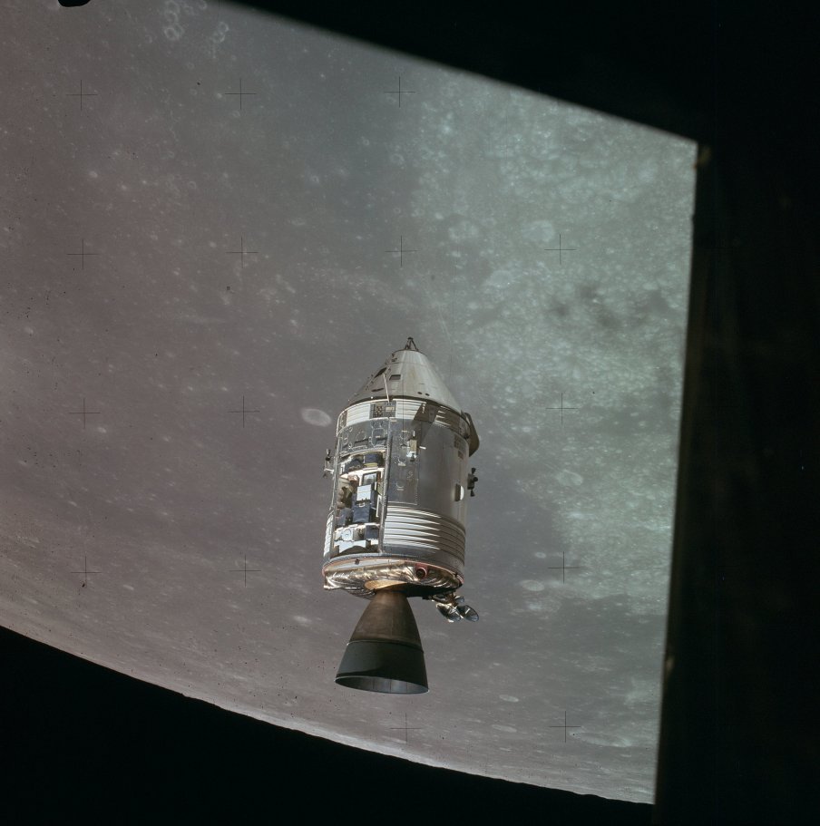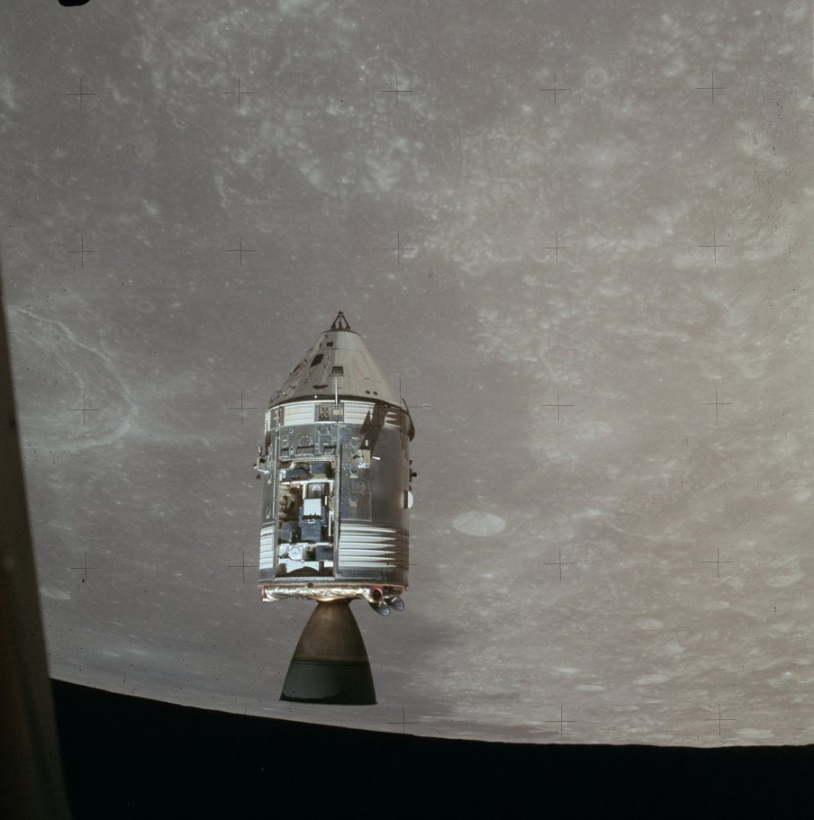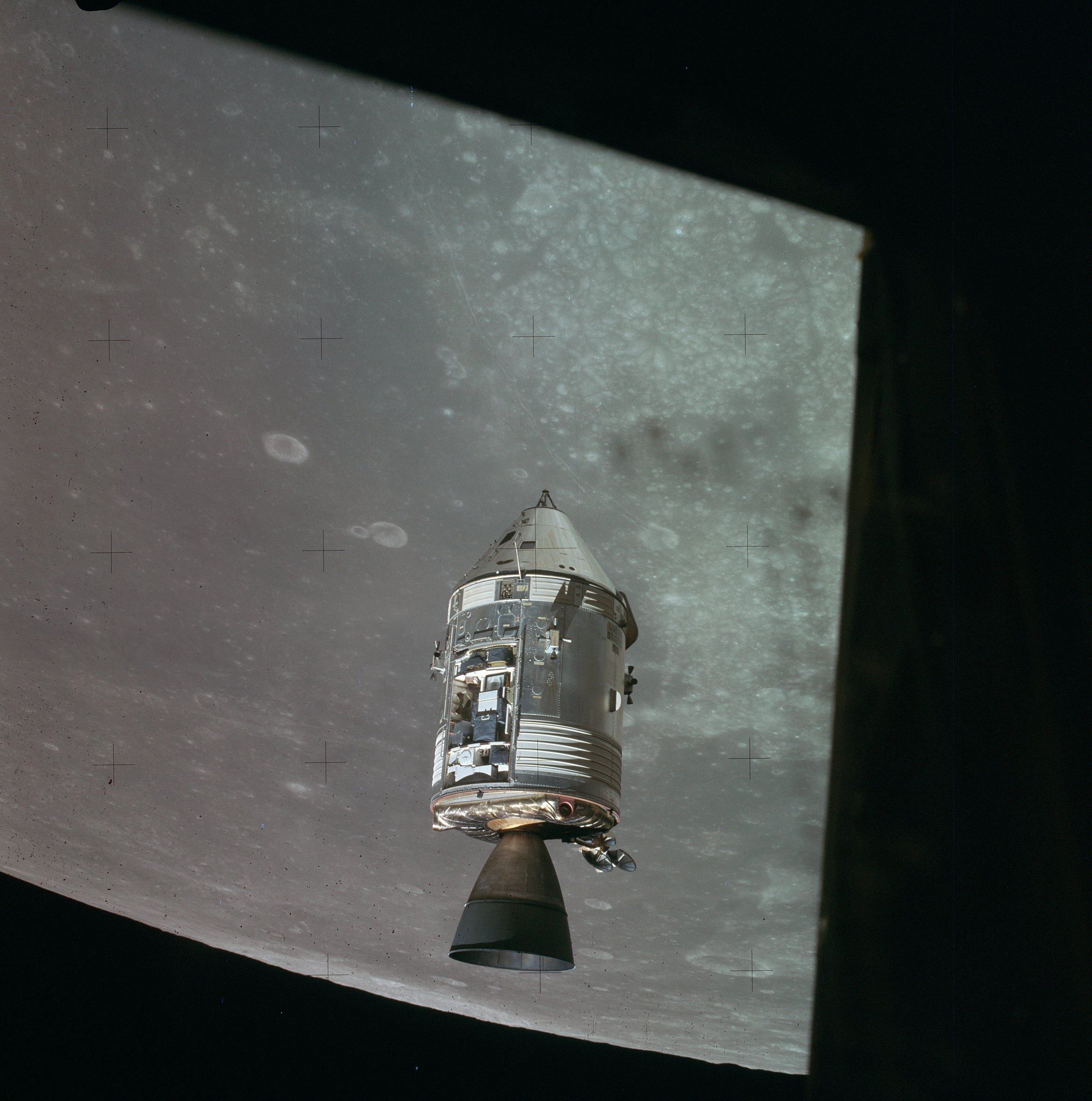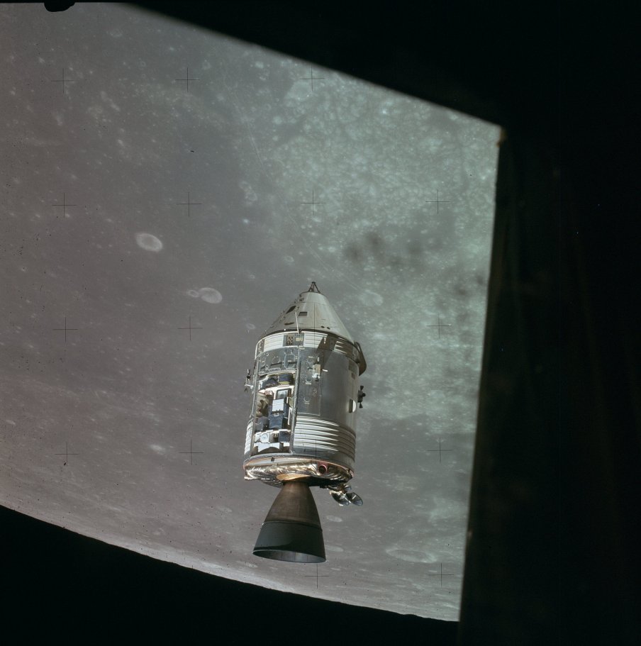 At some point after the SEVA but prior to EVA-1, Dave and Jim took a series of pictures out the windows. The photos taken out Jim's window are 11394 to 11397. Assembled by Erik van Meijgaarden.107:31:57 Post-SEVA Window Pan