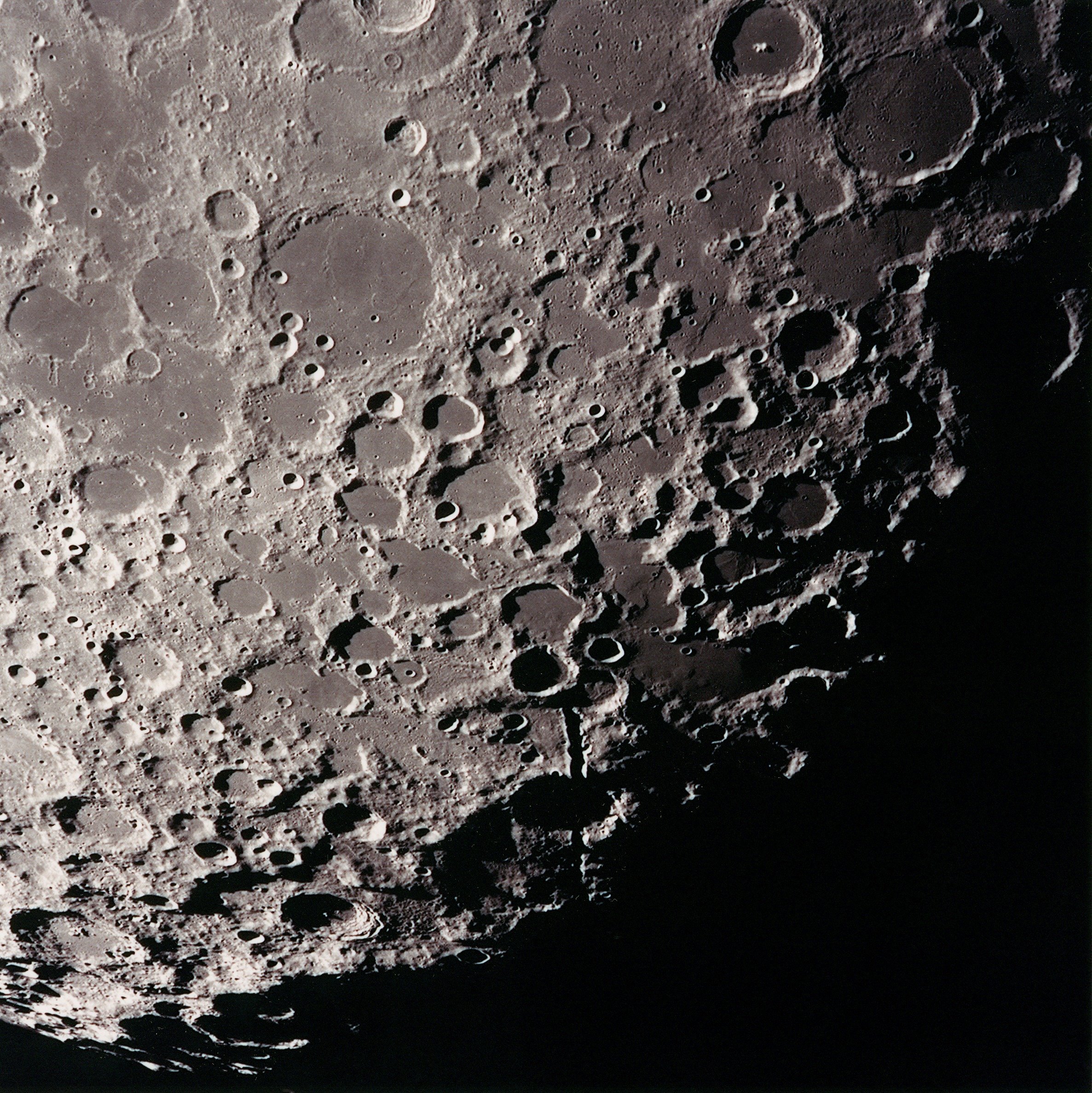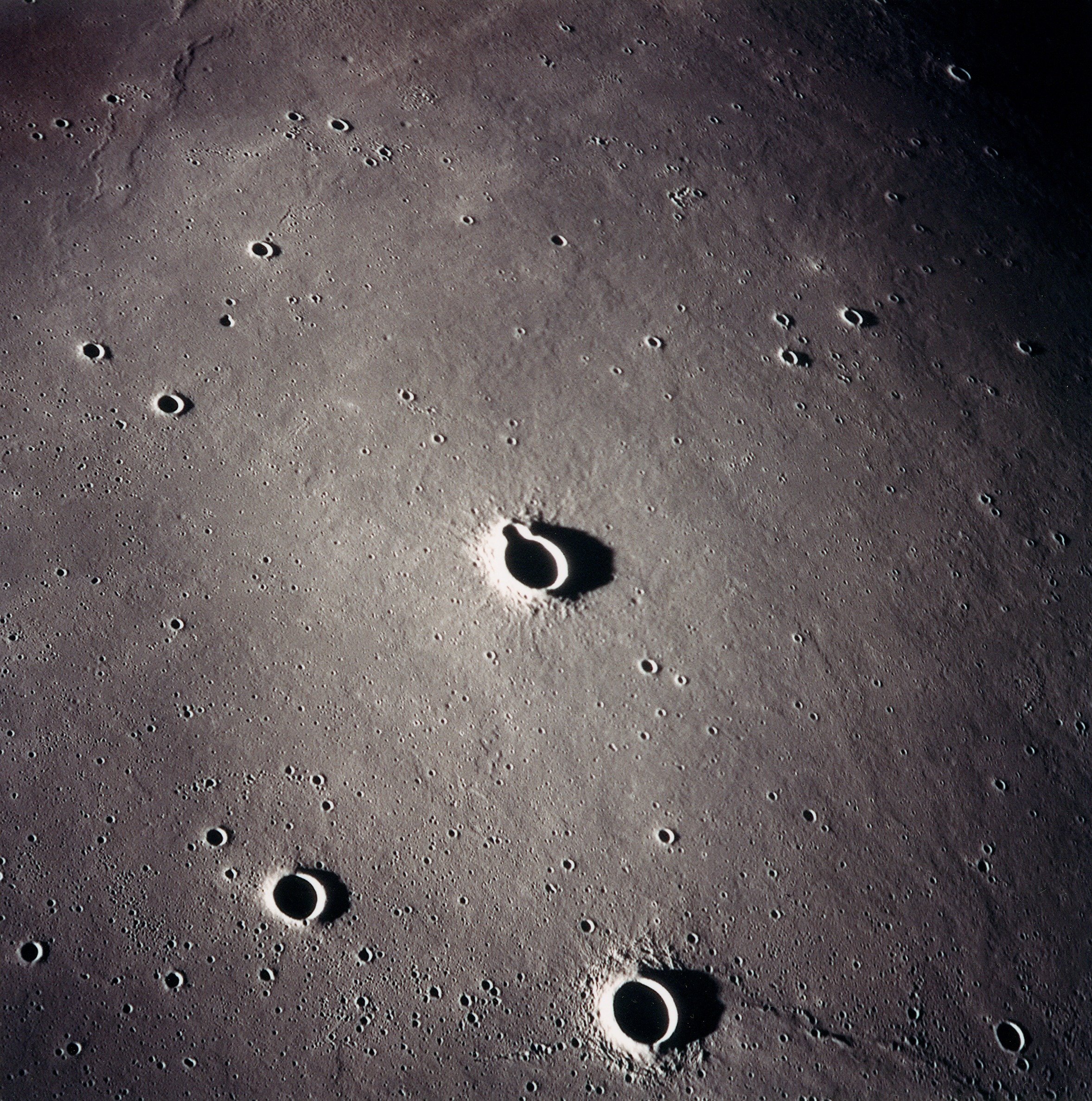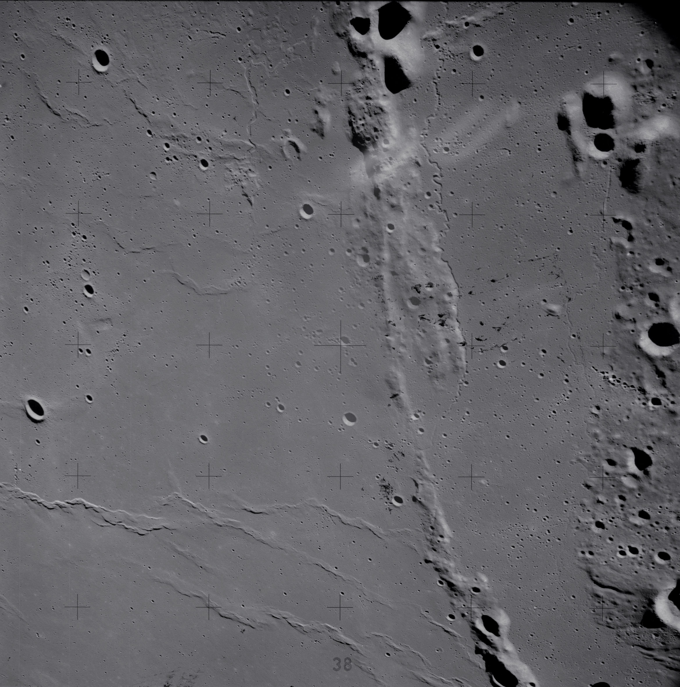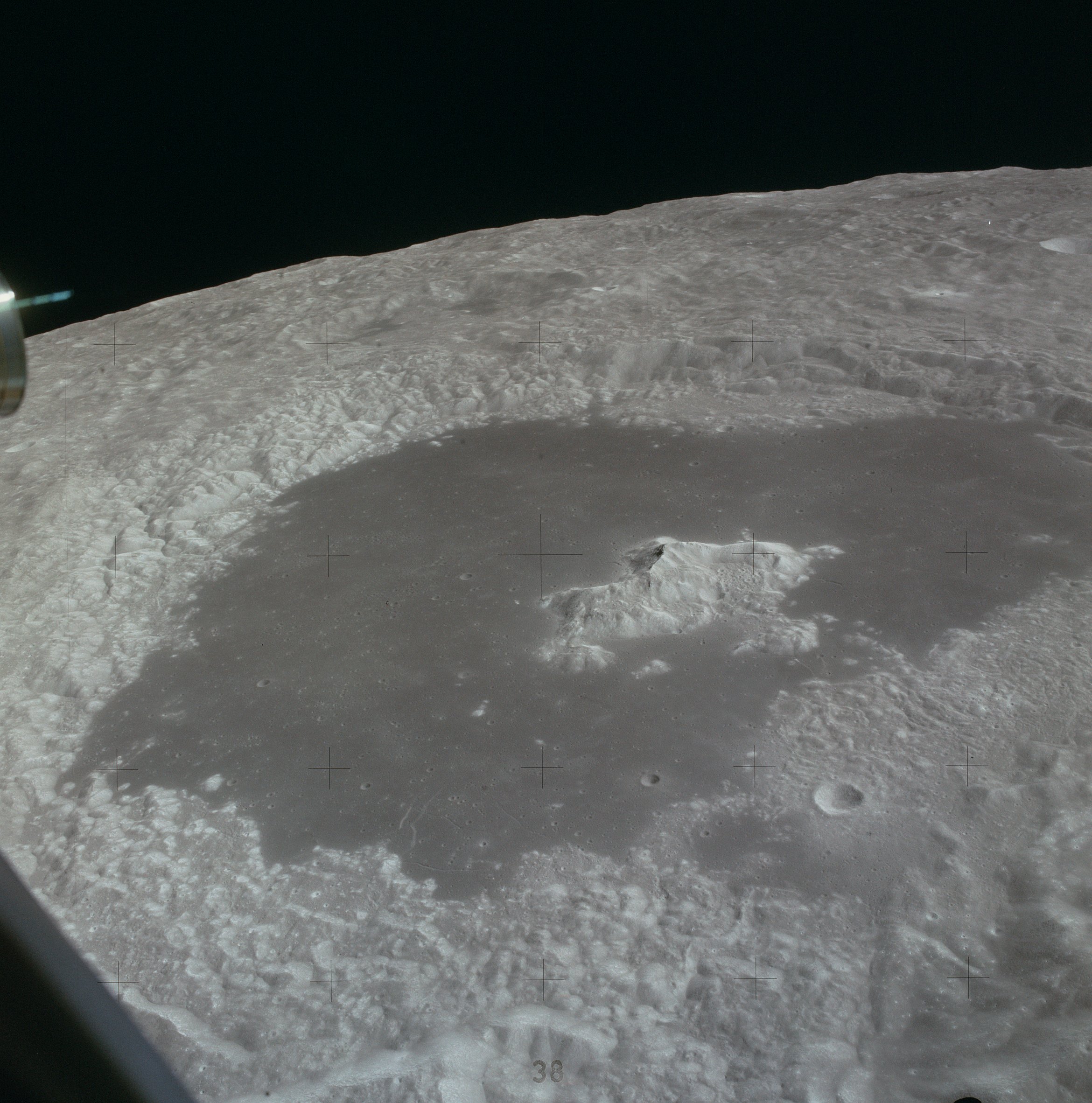 Oceanus Procellarum. Crater Naumann to the lower right. Lichtenberg B to lower left. Naumann G to the extreme lower left. Scan by Kipp Teague / David Woods.AS15-97-13257