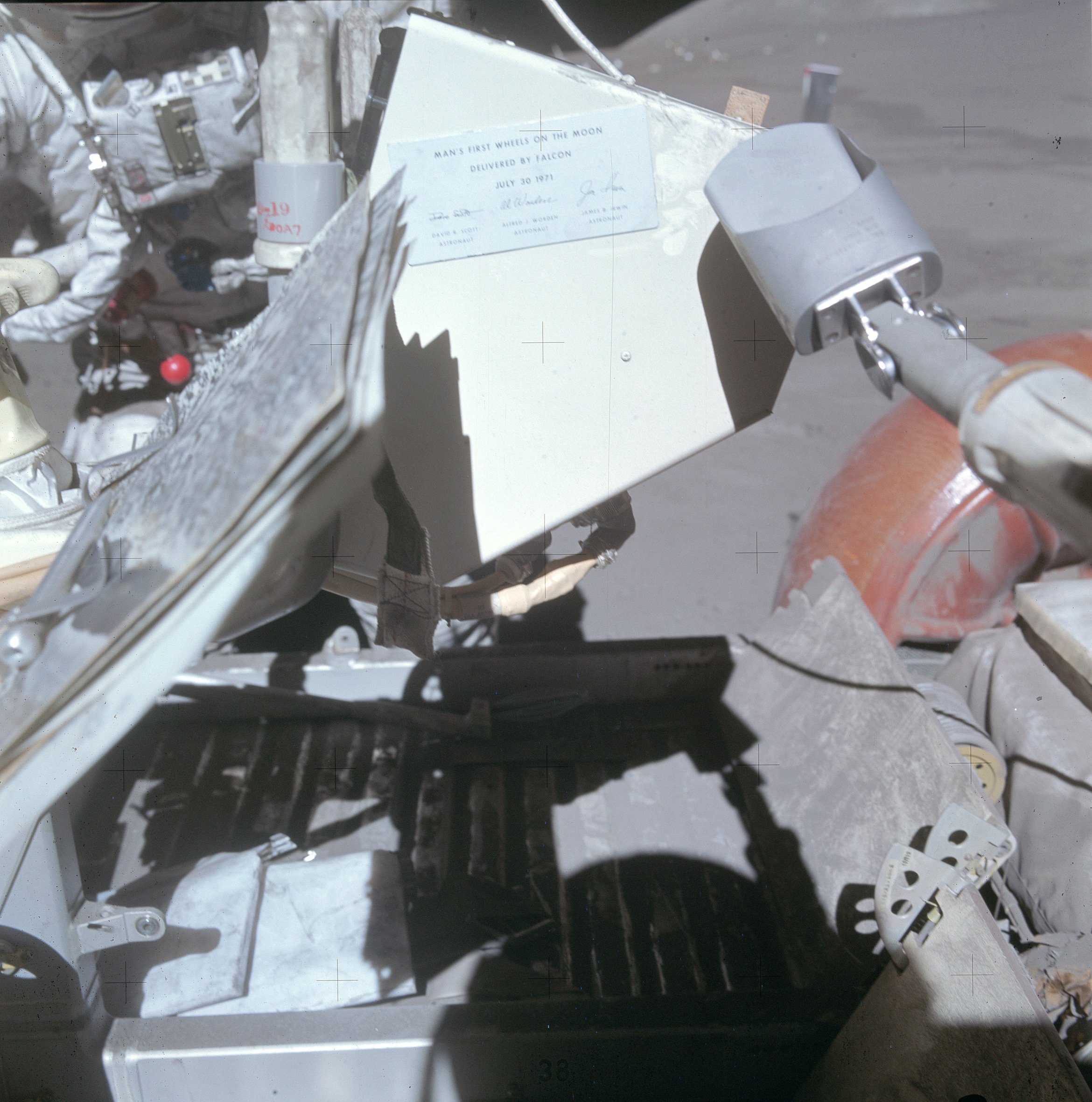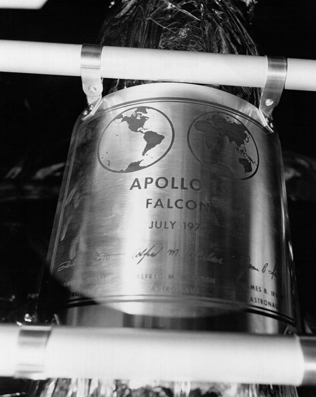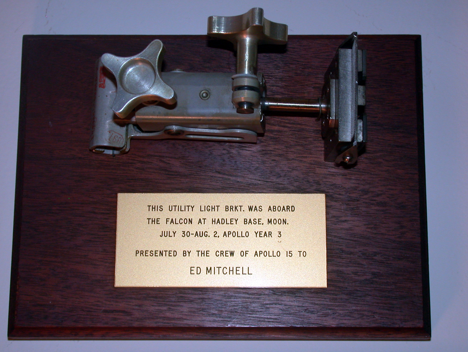 Flown bracket presented by the Apollo 15 crew to Ed Mitchell, who served as their CapCom for the lunar landing and liftoff. Photo by Ulrich Lotzmann.
