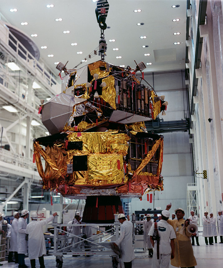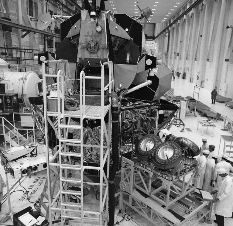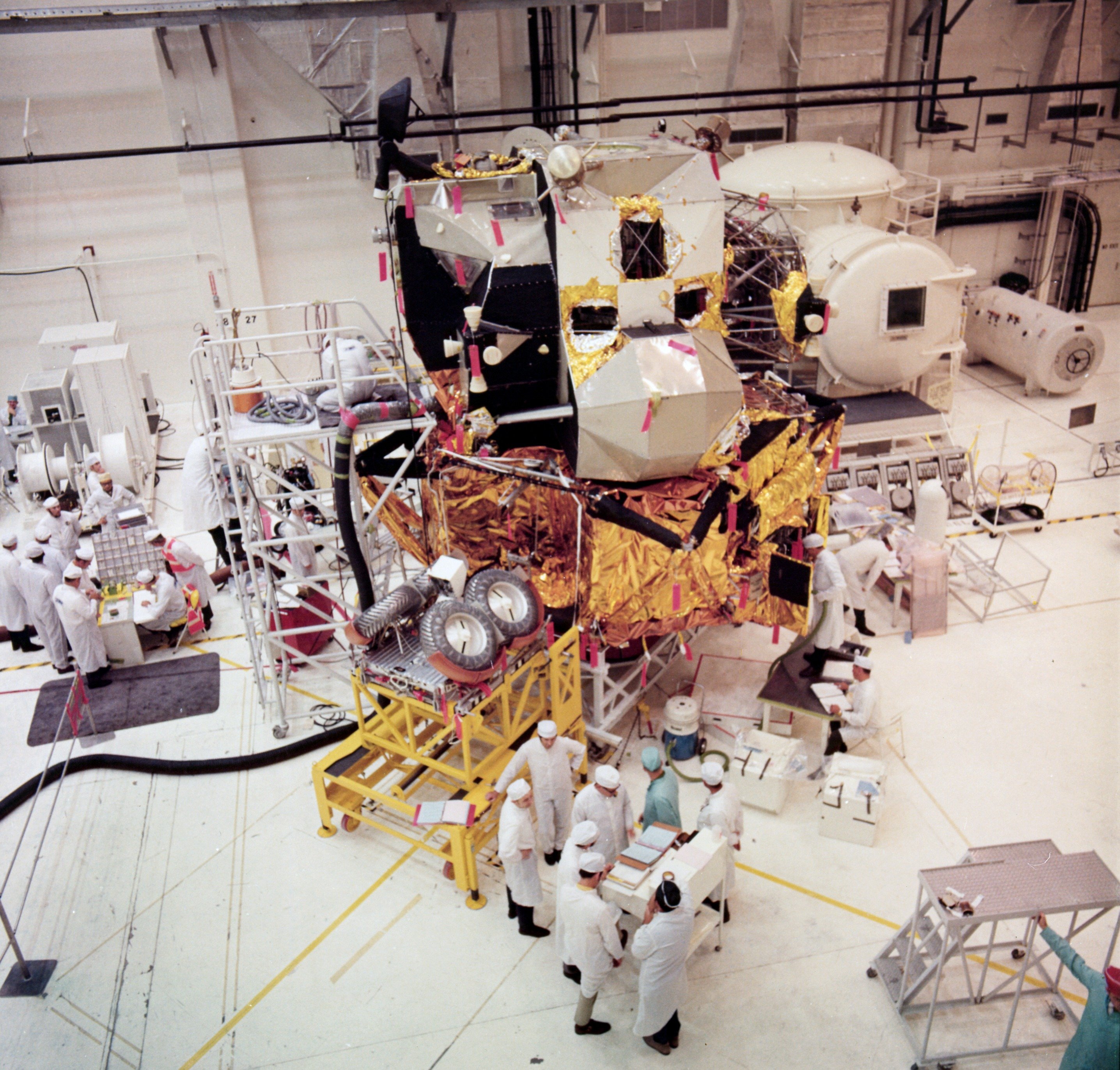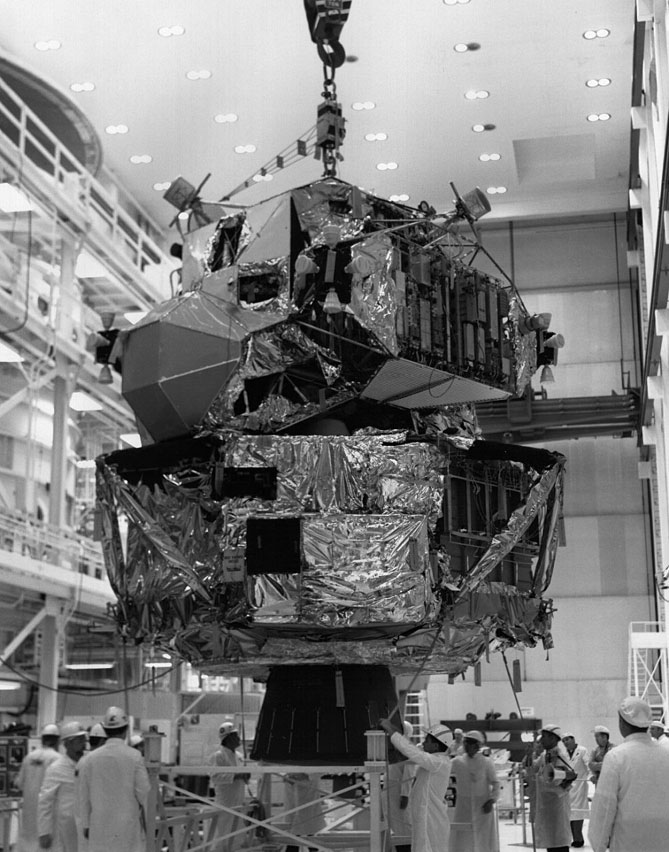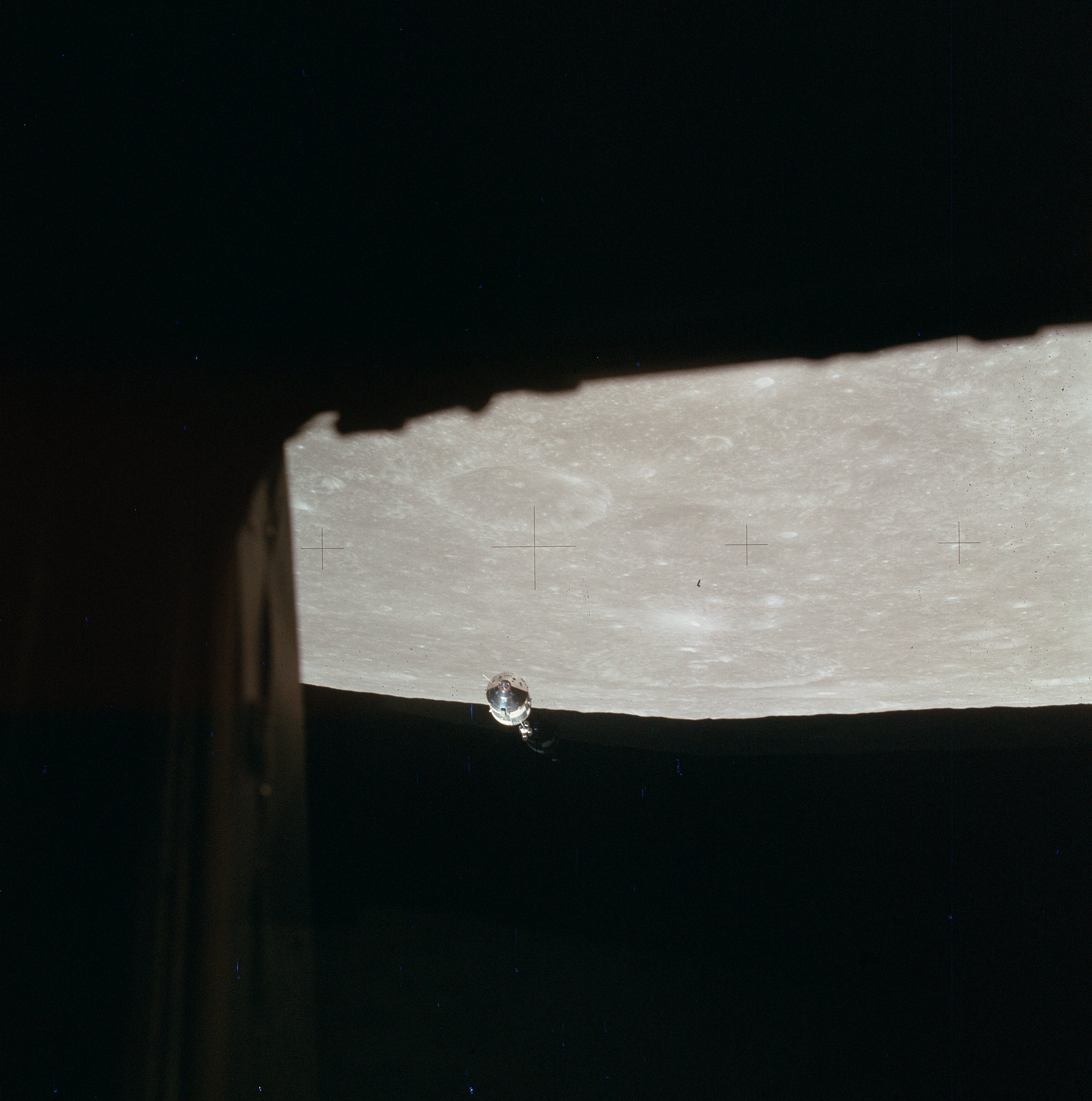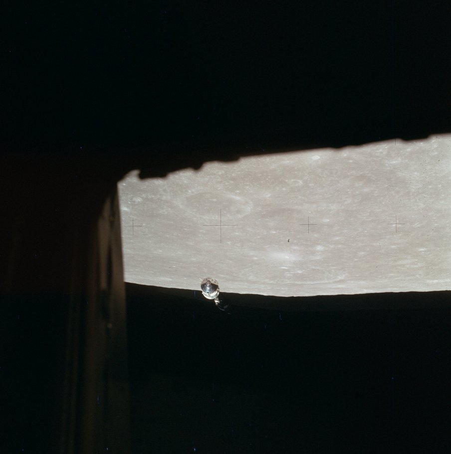 Ascent Stage during rendezvous. The LM hatch and windows are facing the CSM.AS15-96-13040 ( 37k or 62k )