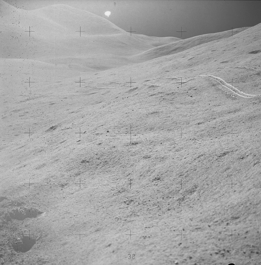 Rev 37. Semi-oblique view into Taurus-Littrow with a good view of the Sculptured Hills.