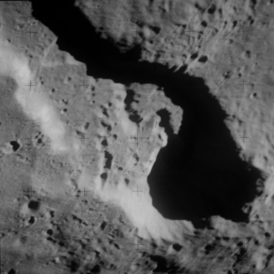 Rev 70. Sea of Tranquility. Crater Moltke. Hypatia Rille. Scan by Kipp Teague.AS15-97-13286 ( 93k or 737k )