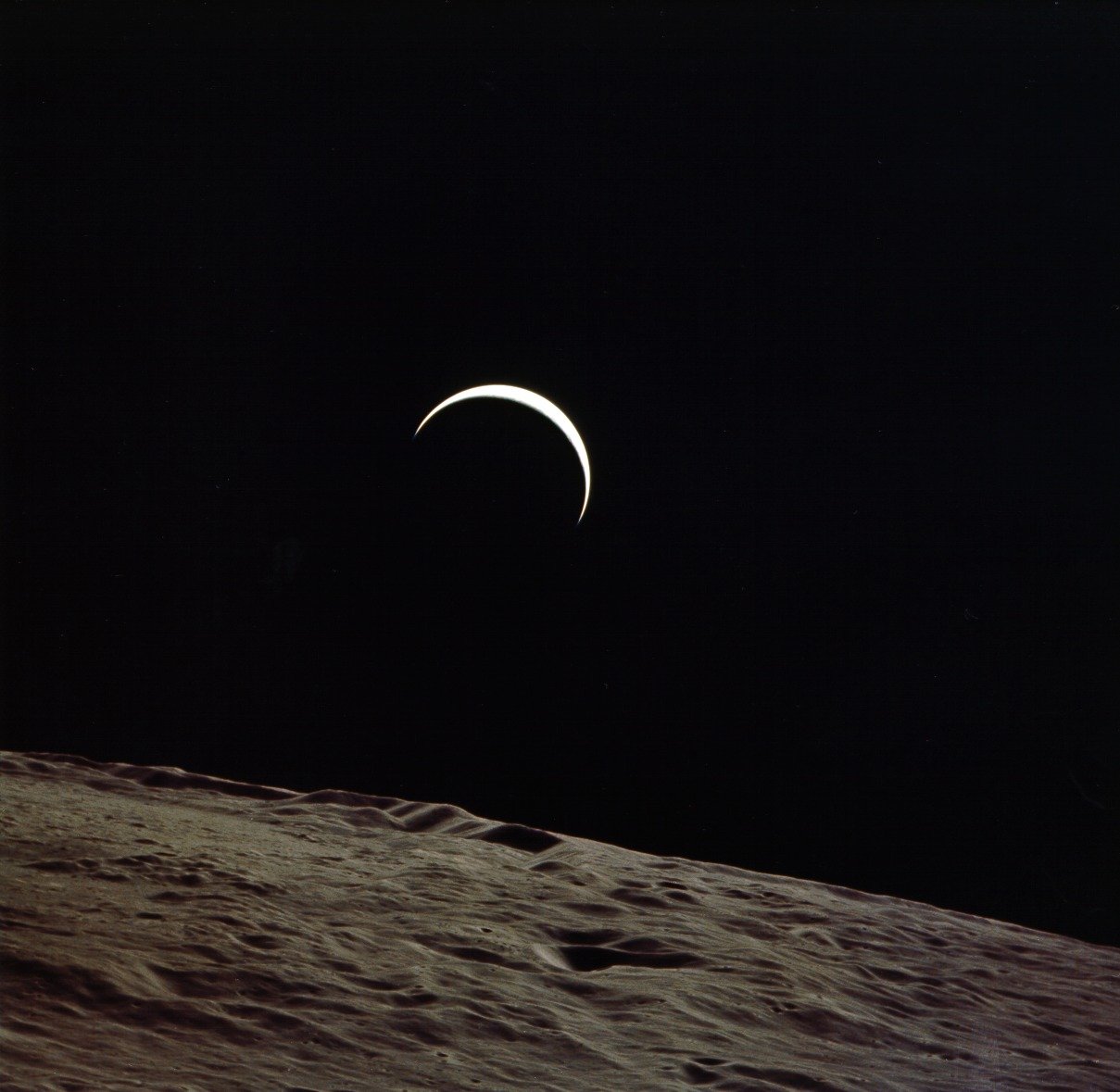 Earthrise from lunar orbit during Rev 70. Scan by Kipp Teague.AS15-97-13284 ( 93k or 716k )