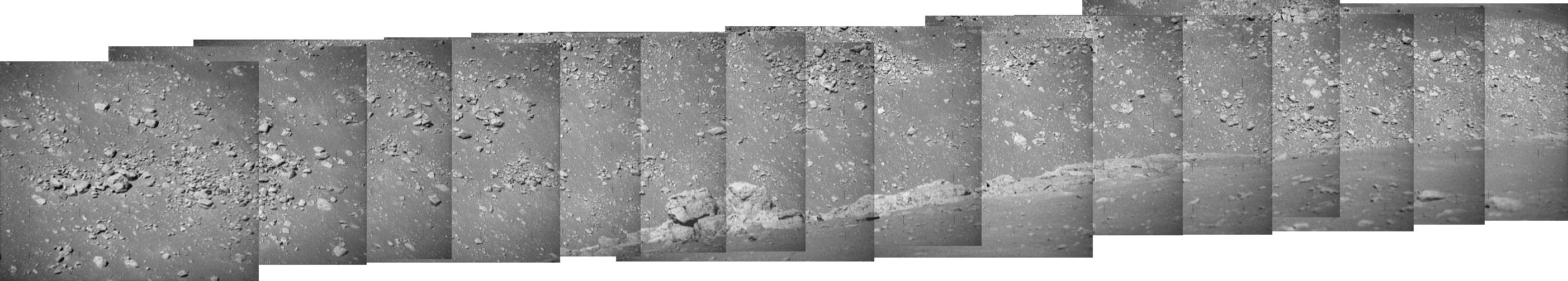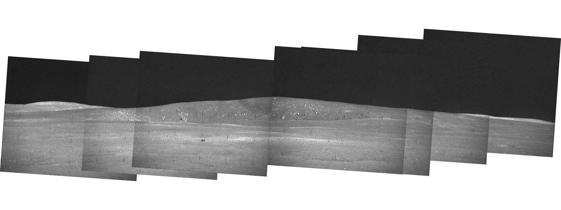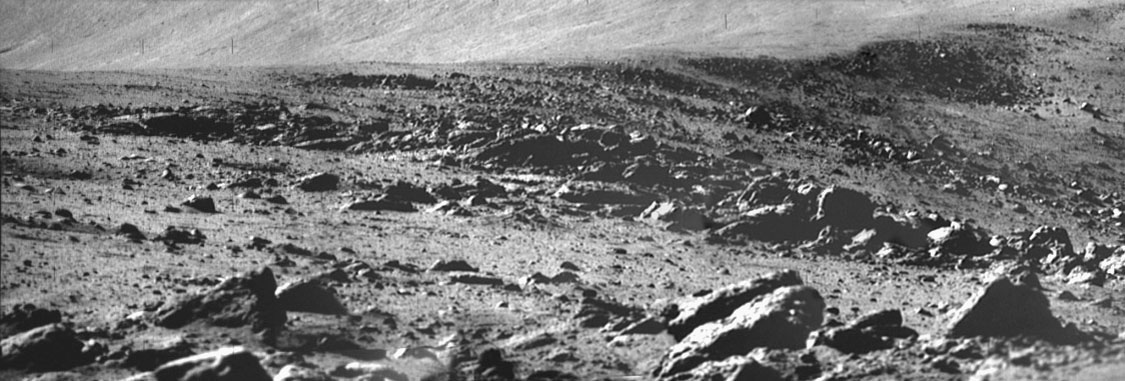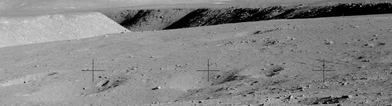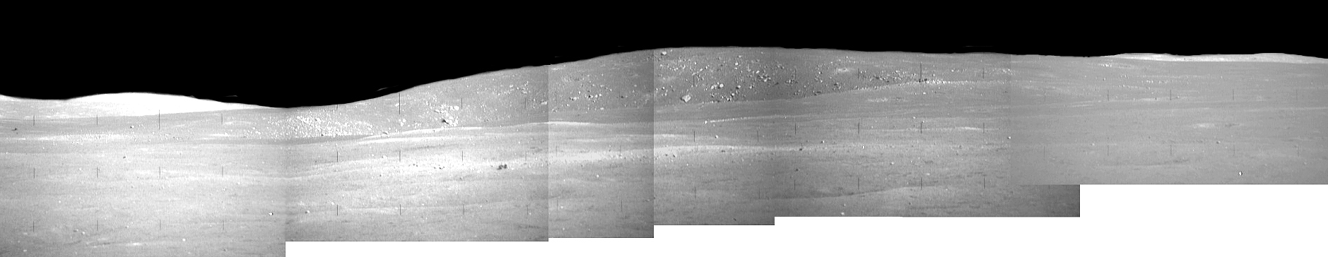 Assembled by David Harland. An 1800-dpi assembly (8.6 Mb) by Eric Jones includes the rille around to Mt. Hadley and a portion of the Swann Range.123:19:35 Station 2 500-mm Pan of Trophy Point, First Strip ( 1.7Mb or 0.3Mb )