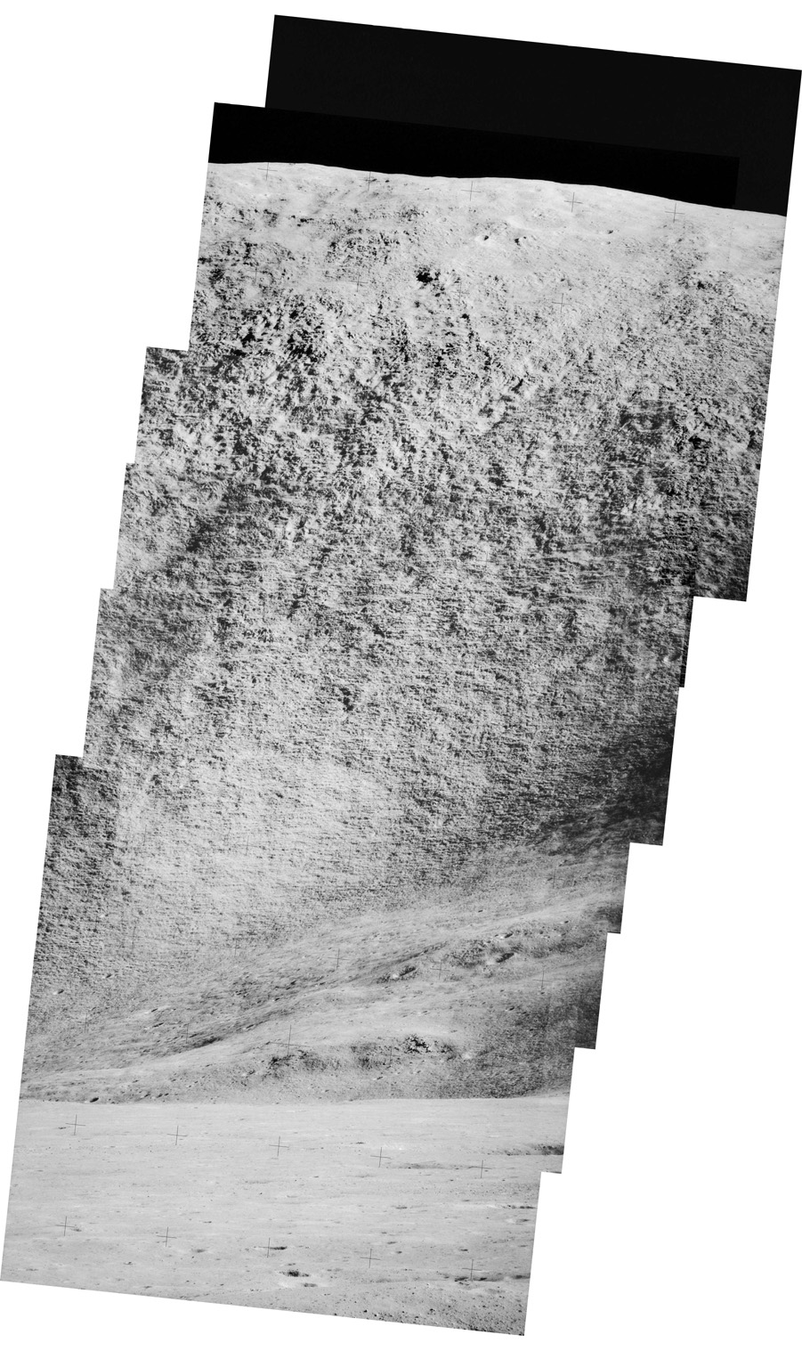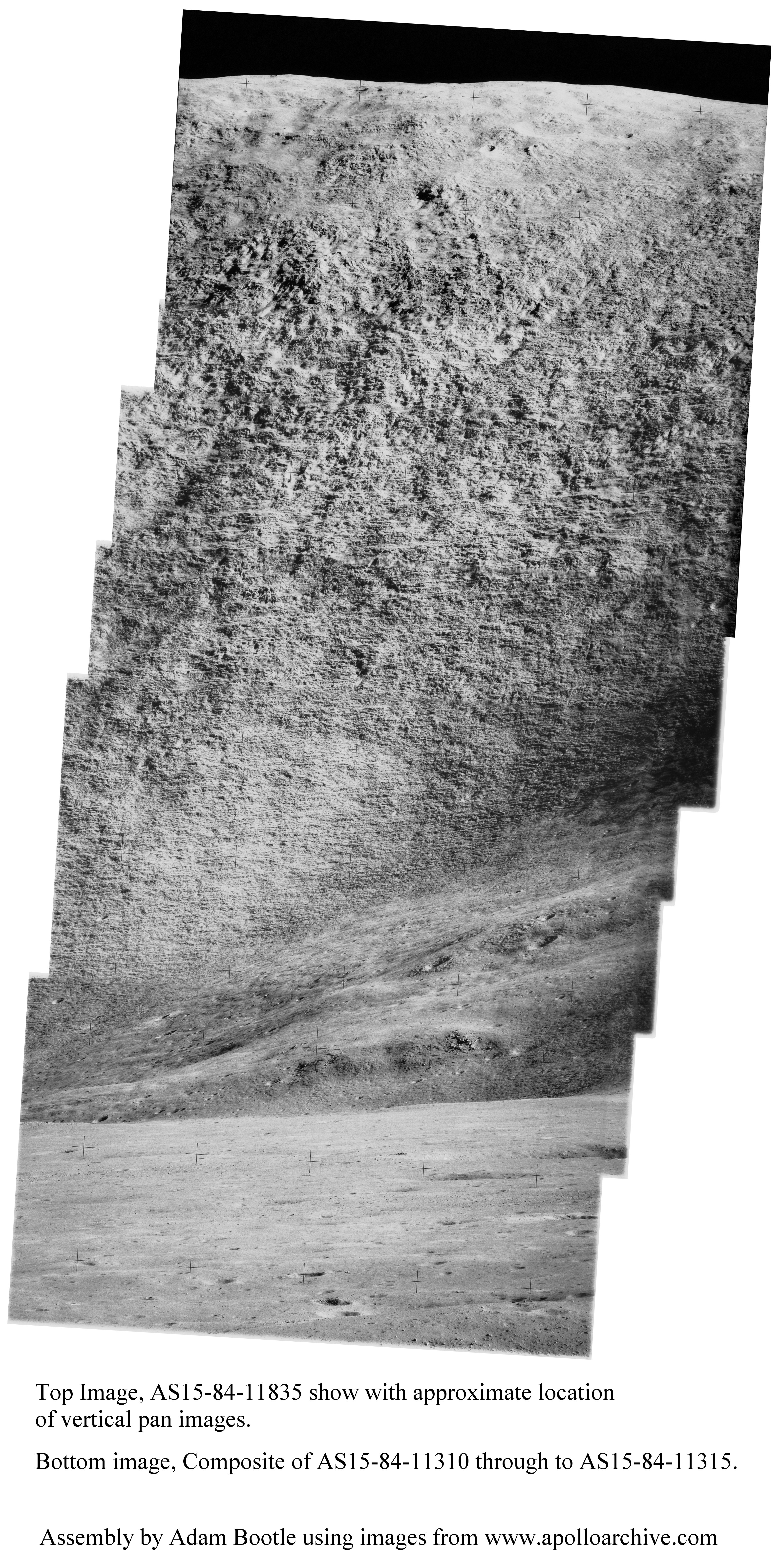 Dave took this left-to-right strip of an area slightly farther down the wall from the first strip. The frames are AS15-84- 11269 to 11275. Assembly by Dave Byrne.123:20:51 Station 2 500-mm Pan of Trophy Point, Vertical Strip