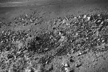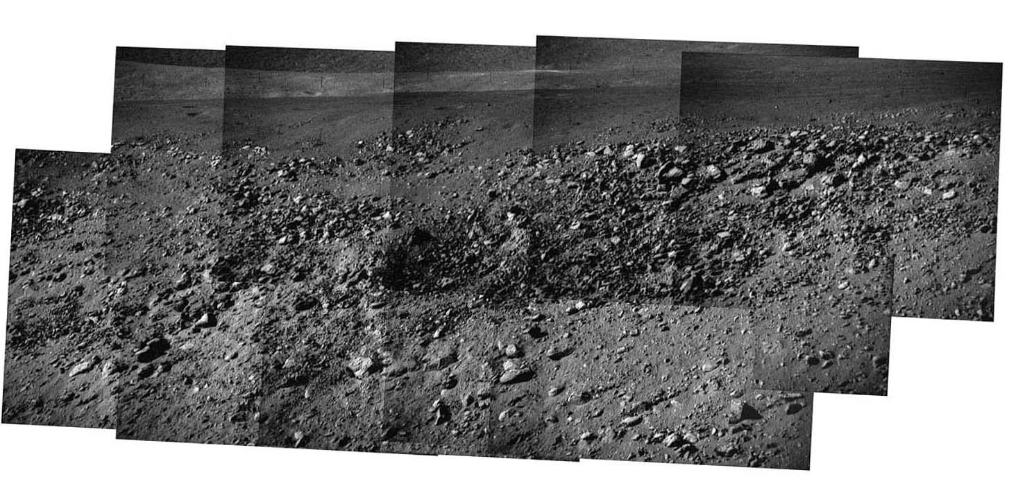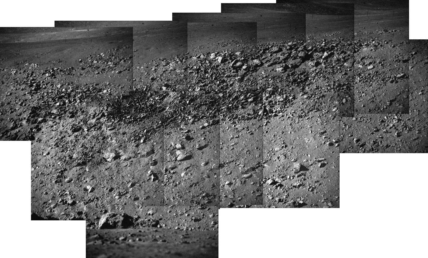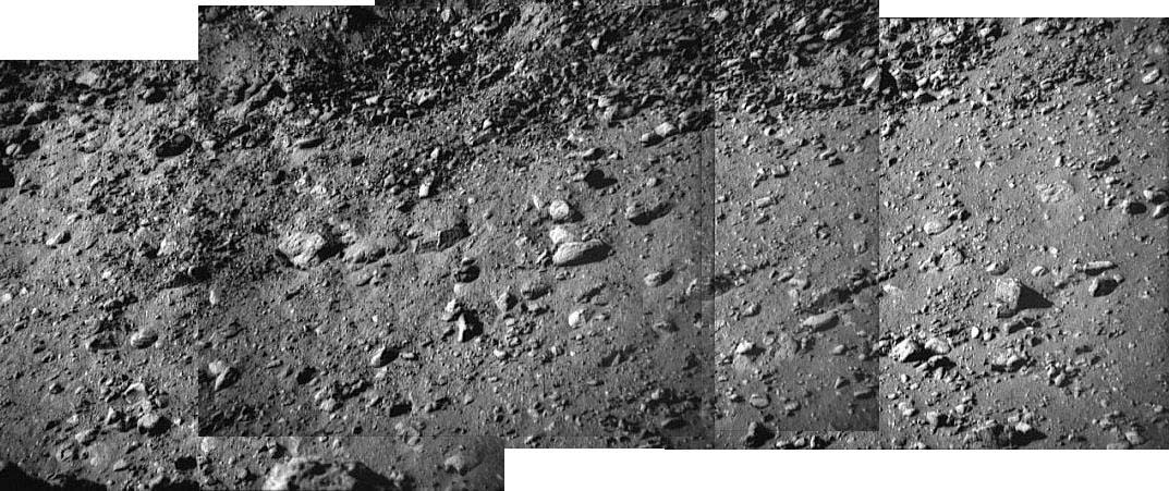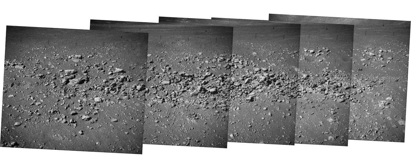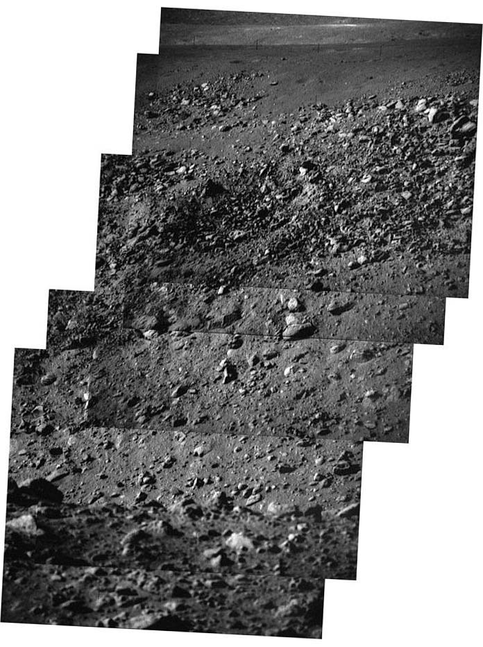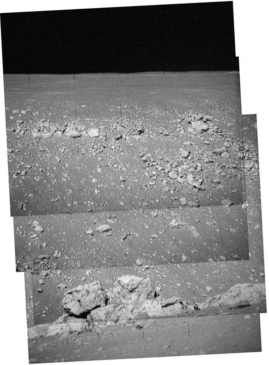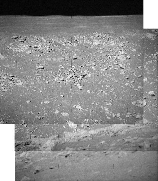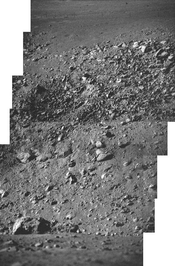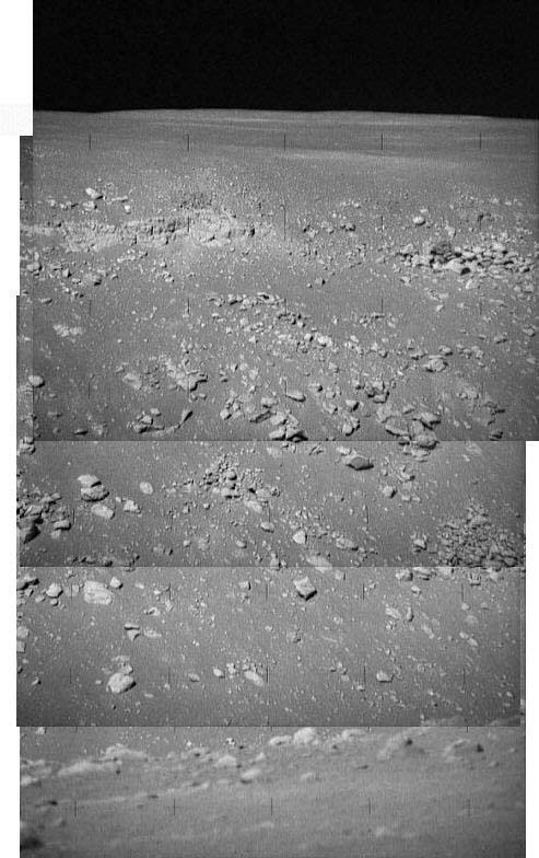 Overhead mosaic of the landing site. Photograph courtesy NASA and the Lunar and Planetary Institute. Hi-resolution scan by Stephen Tellier (LPI).Figure 11-1 ( 130k )