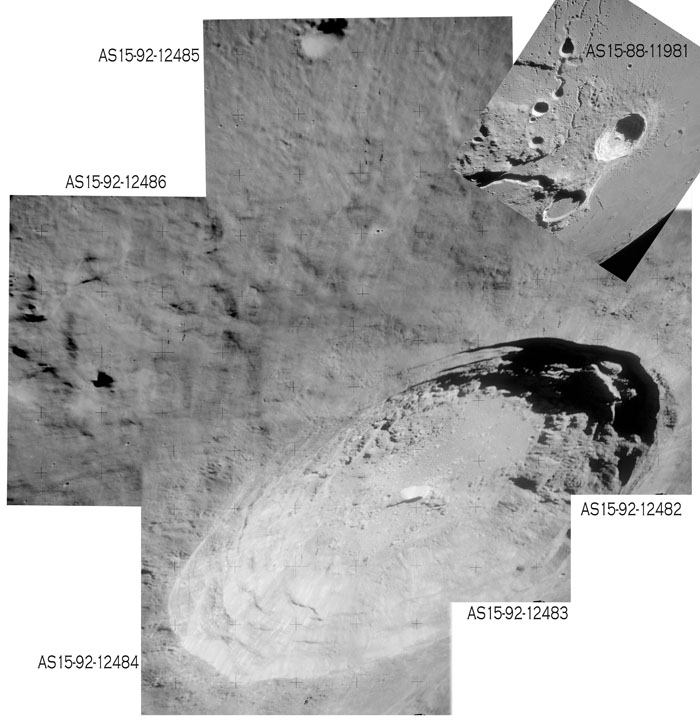 This is figure 10.21 from the Lunar Sourcebook, G.H. Heiken, D.T. Vaniman and B.M. French, editors, copyright 1991 by Cambridge University Press, reproduced with permission.Apollo 15 Takes Manhattan (1.2 MbThis map is derived from U.S. Defense Mapping Agency Sheet 41B4S4 which in turn, is derived from Pan Camera frames 9370 and 9377. Scan by Robin Wheeler.