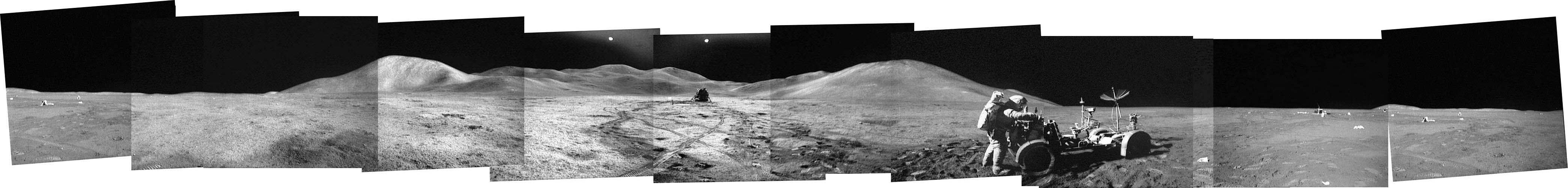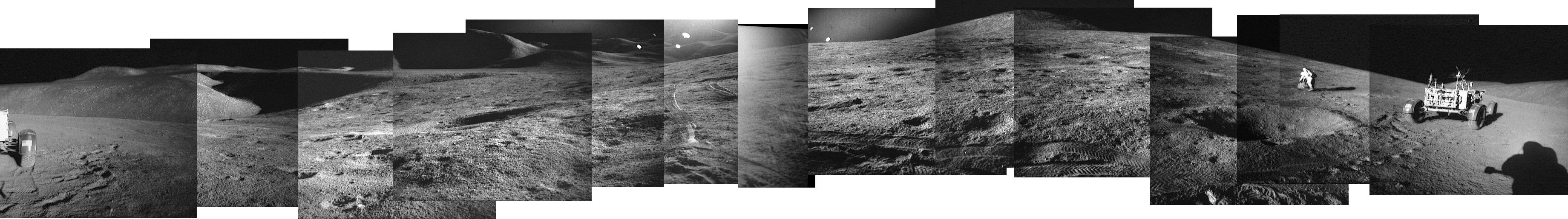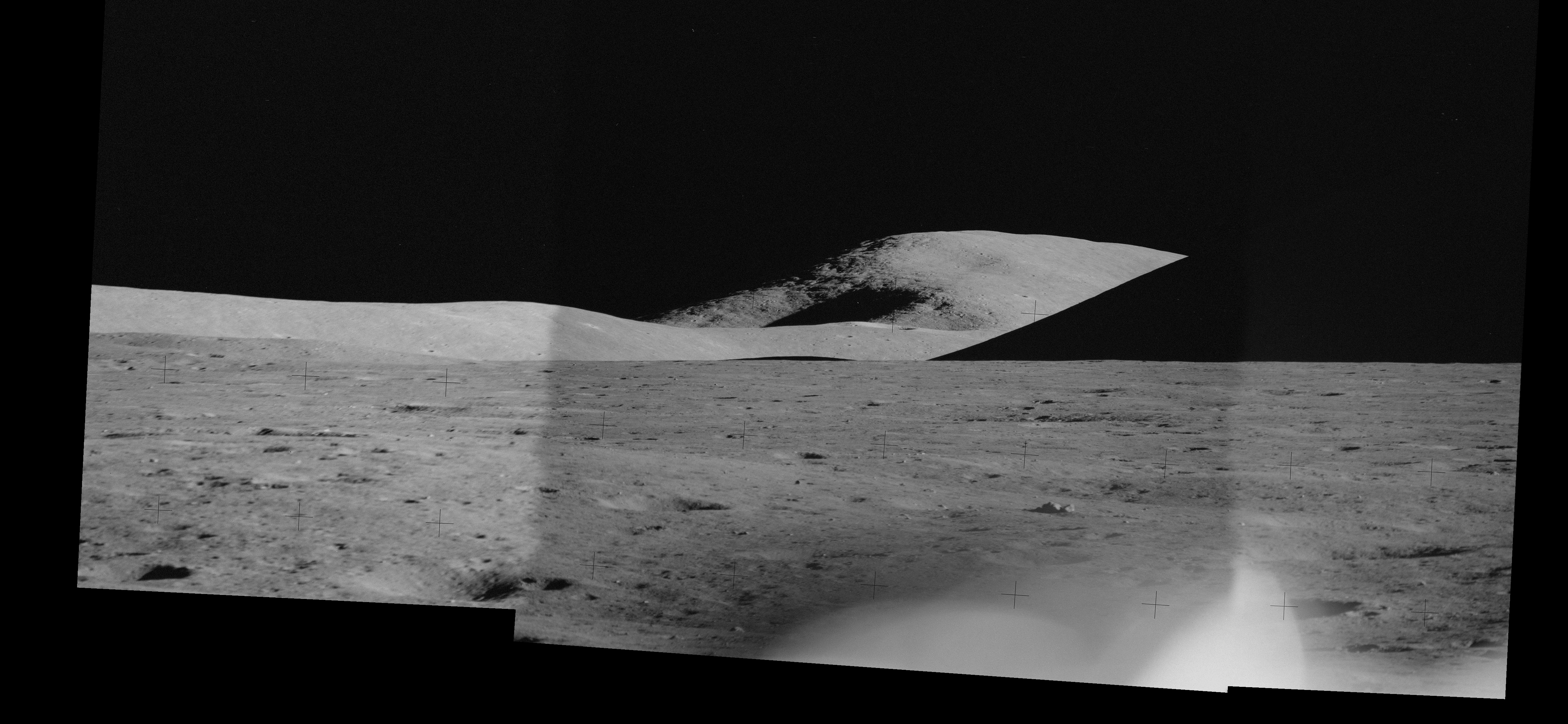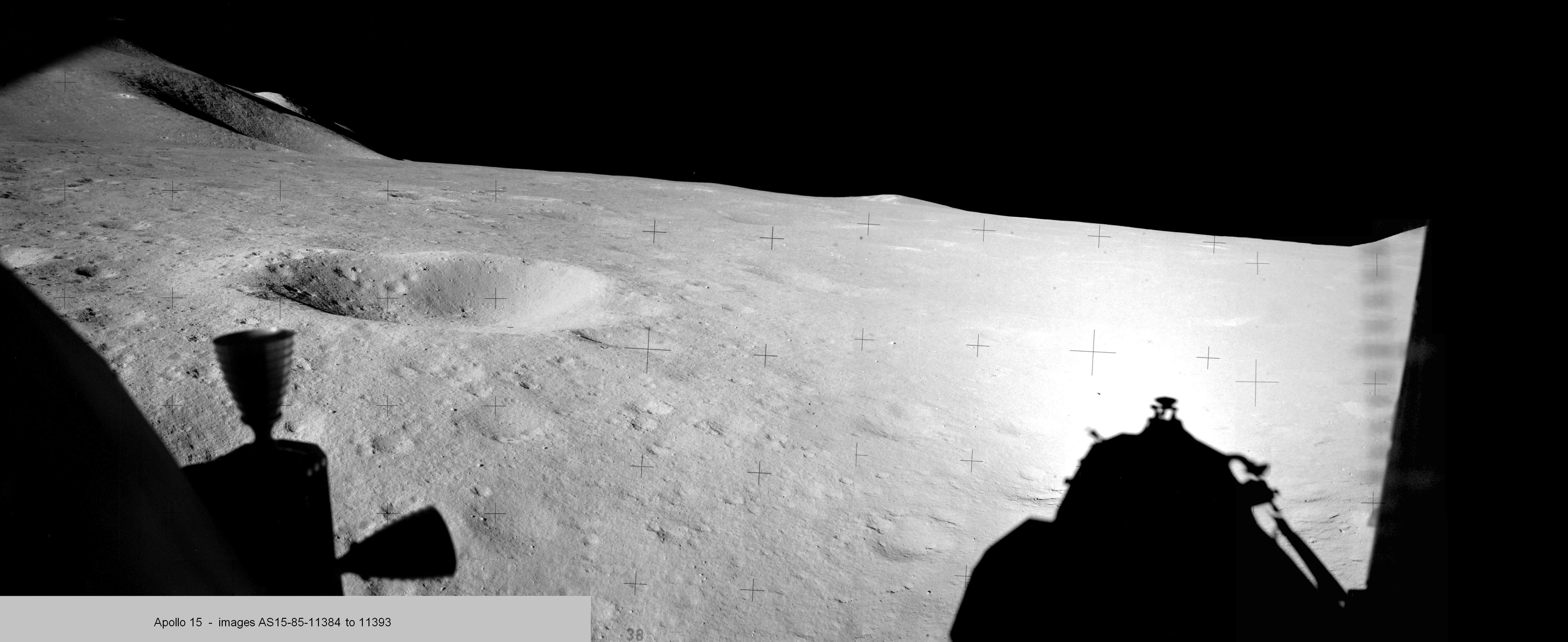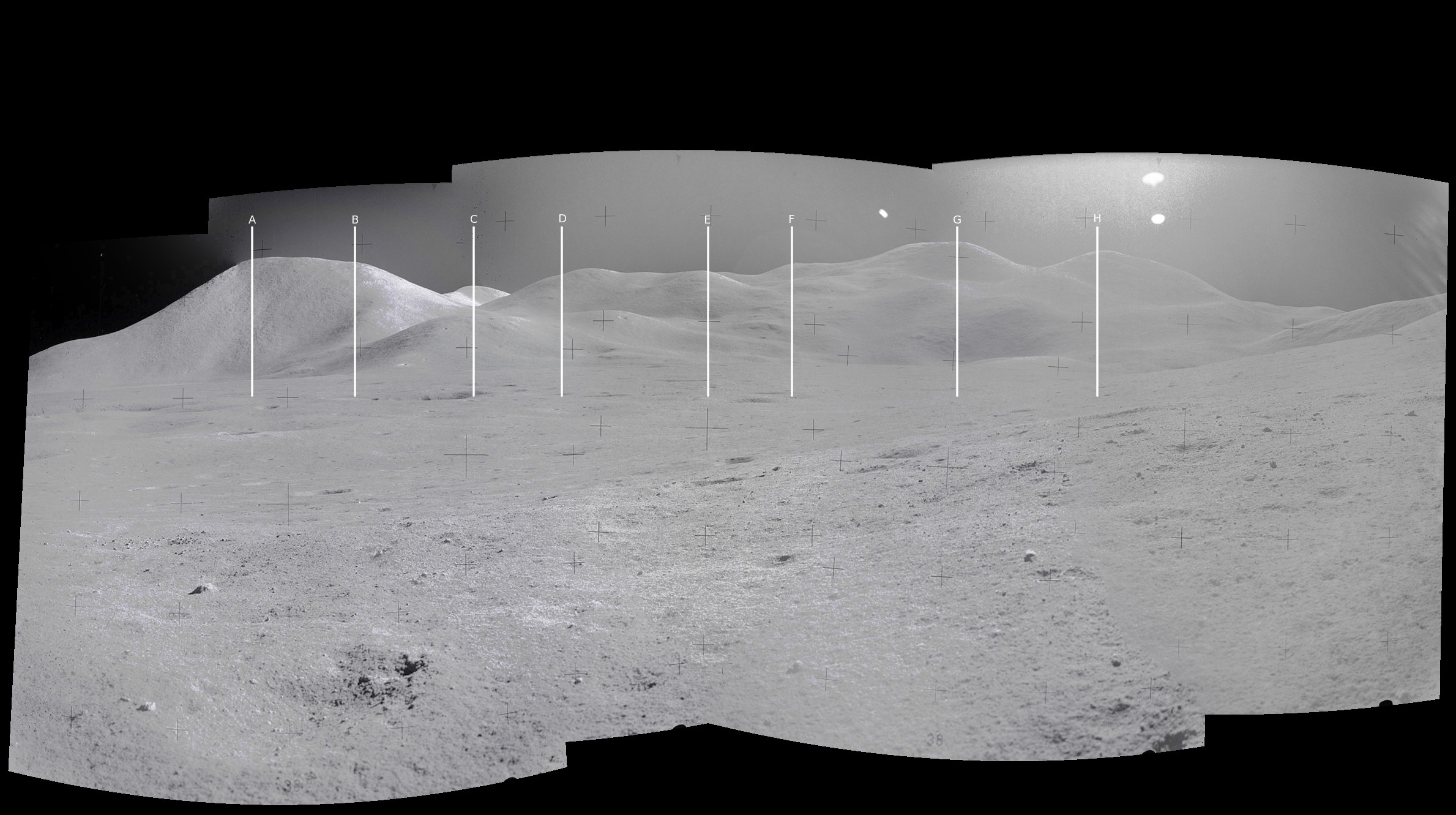 The frames are AS15-84- 11276 to 11283. Assembly by Dave Byrne.123:19:35 Station 2 500-mm Pan of Trophy Point, Horizontal and Vertical Combined