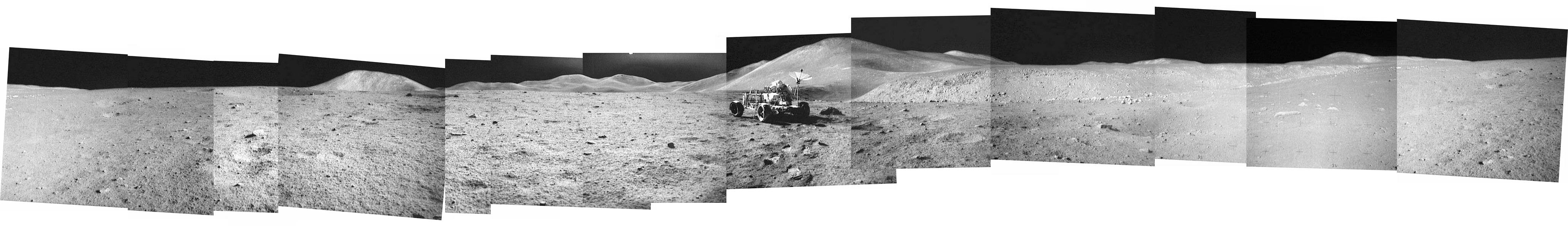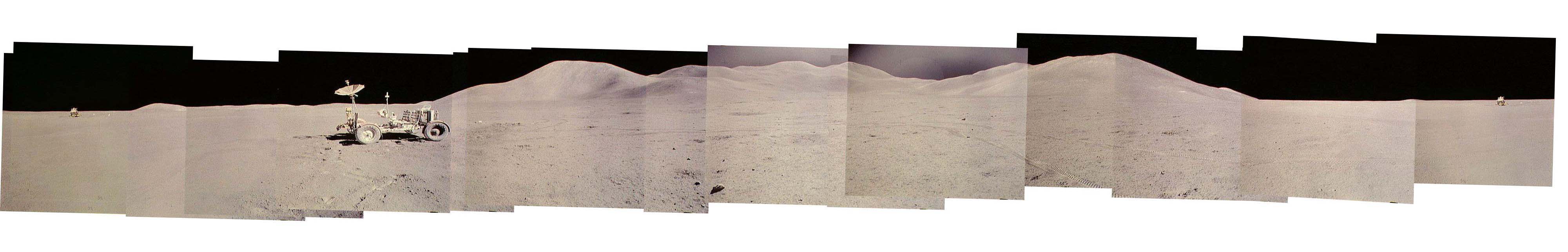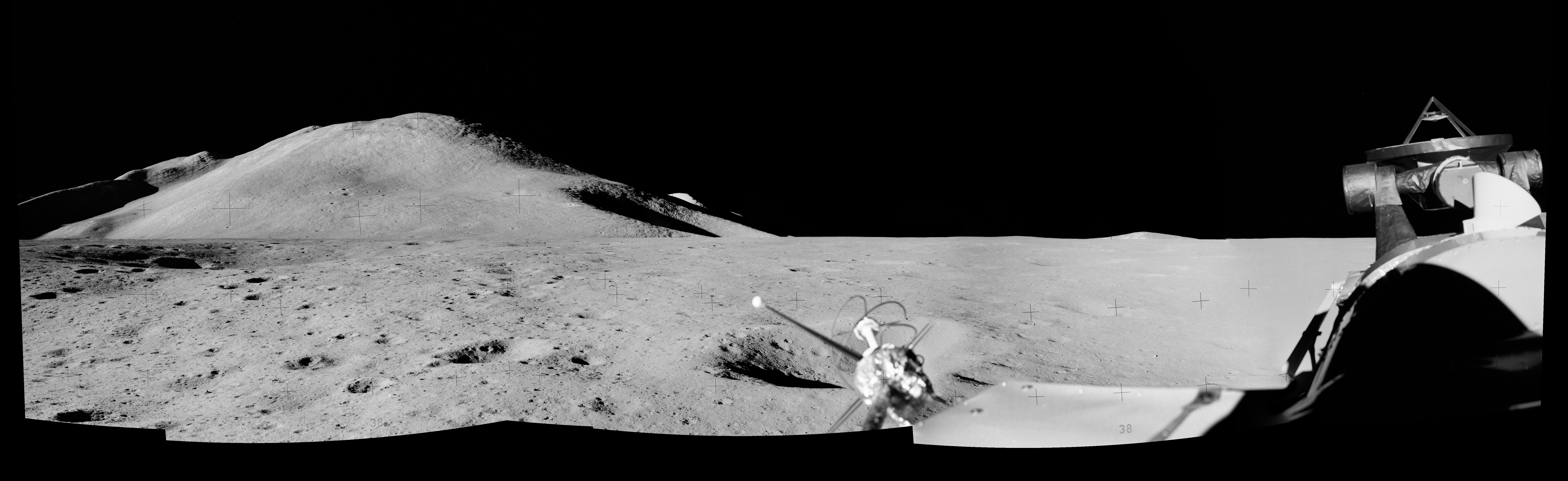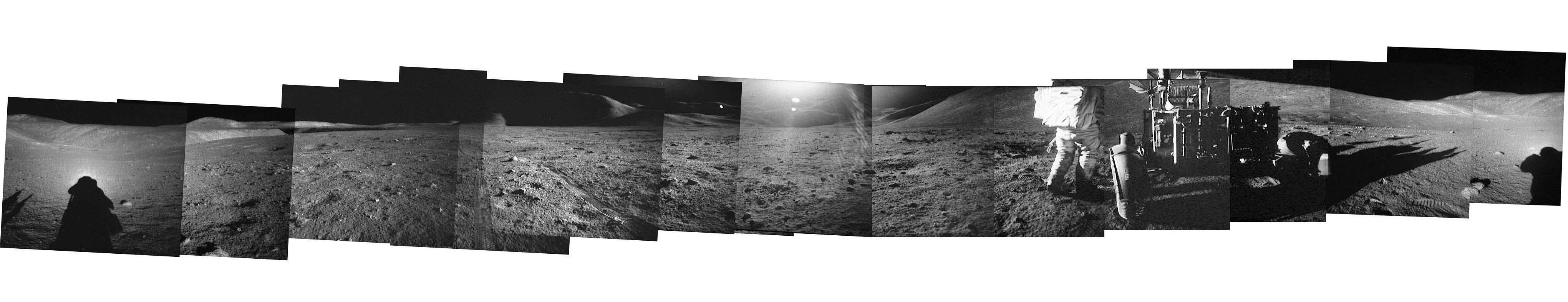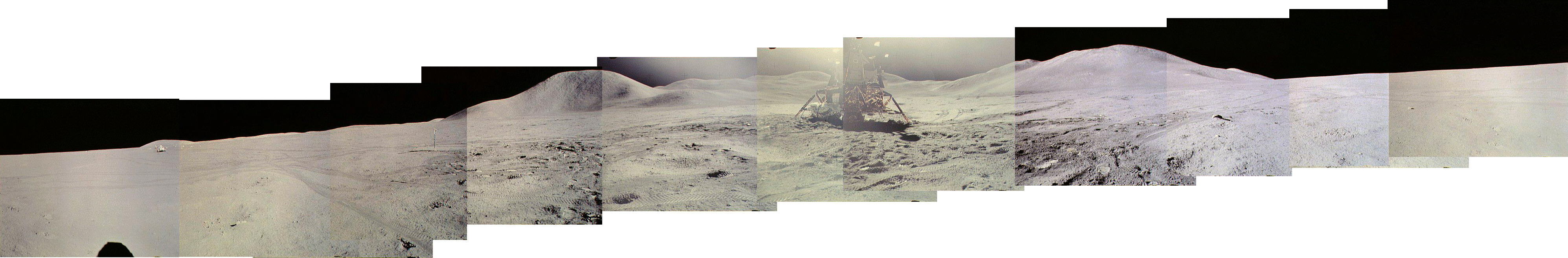 The frames are AS15-84- 11276 to 11283. Assembly by Dave Byrne.123:19:35 Station 2 500-mm Pan of Trophy Point, Horizontal and Vertical Combined