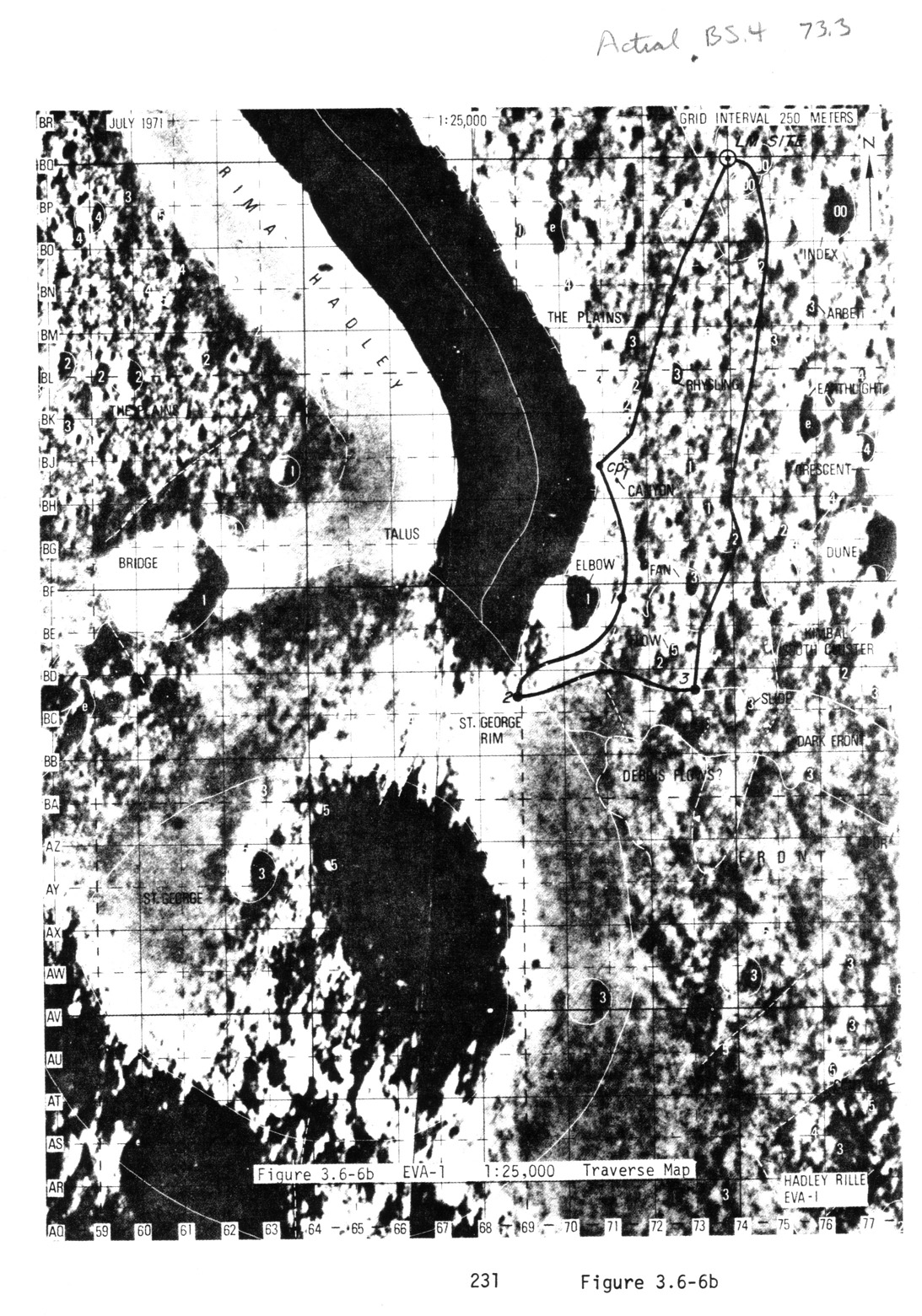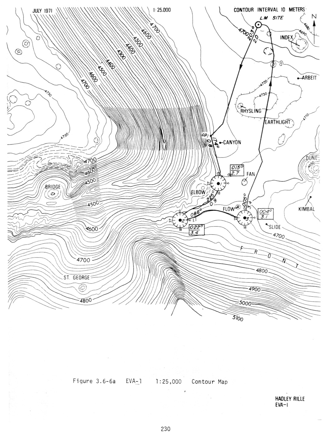 Page 230 from the Apollo 15 Lunar Surface Procedures volume.EVA-1 Traverse Map ( 730k )