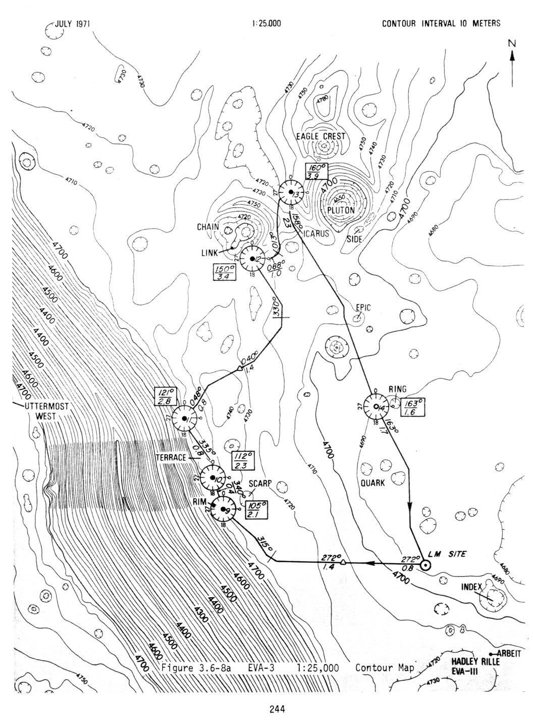 Page 244 from the Apollo 15 Lunar Surface Procedures volume.EVA-3 Traverse Map ( 725k )