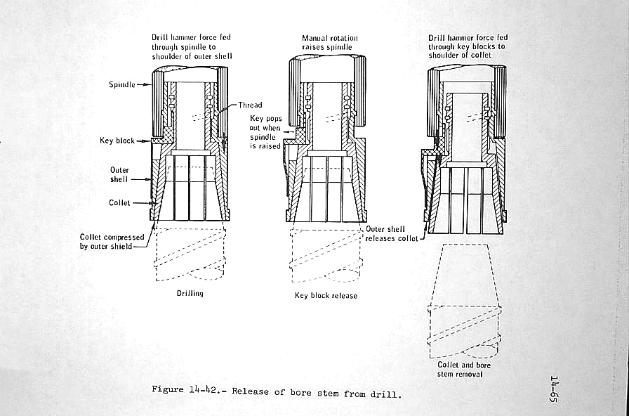 Release of bore stem from drill.Figure 14-43 ( 125k )