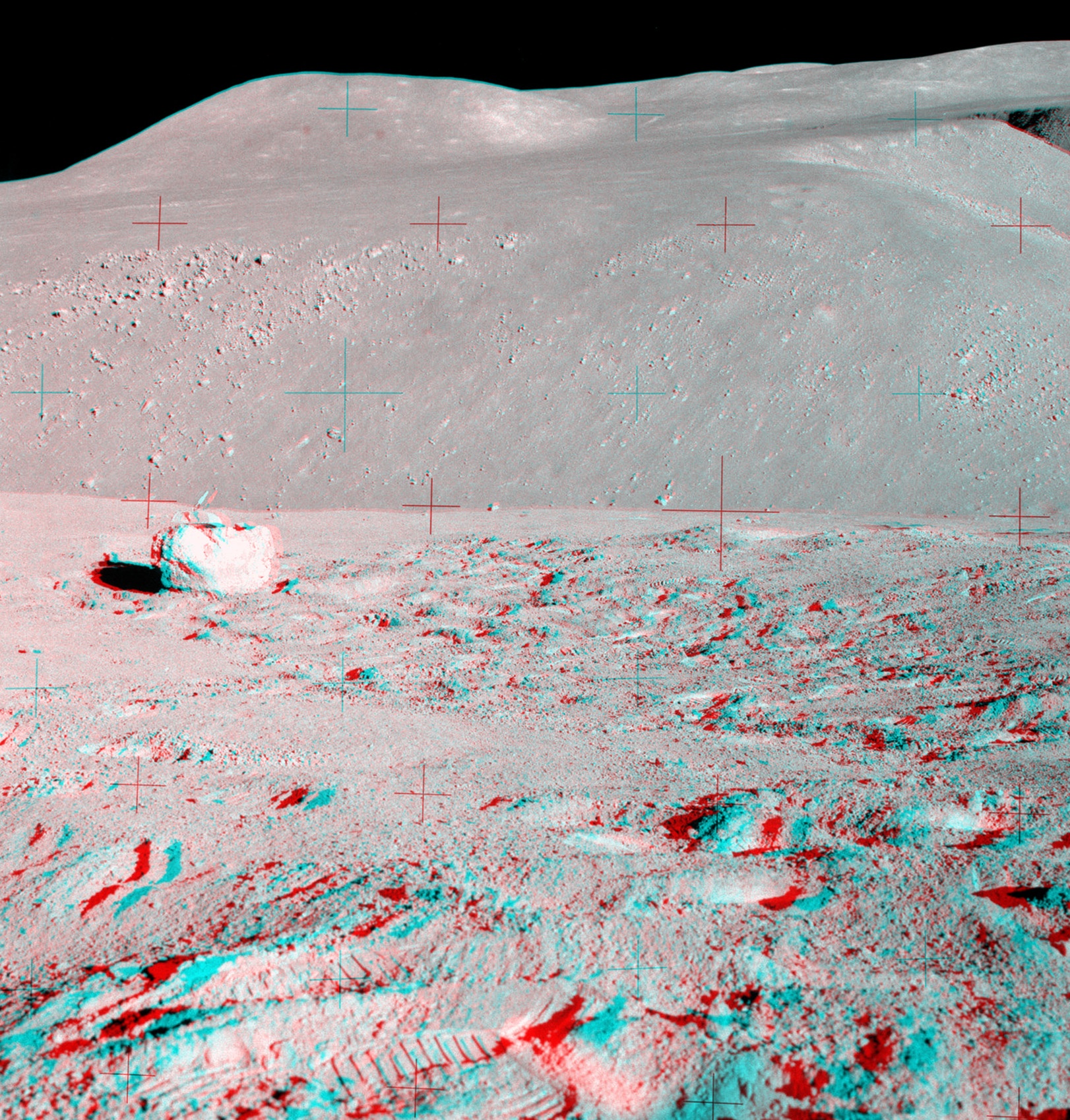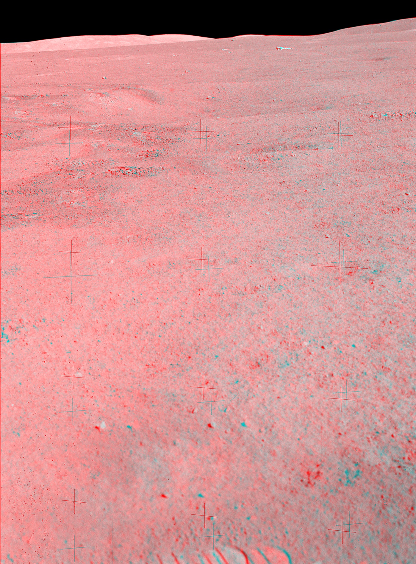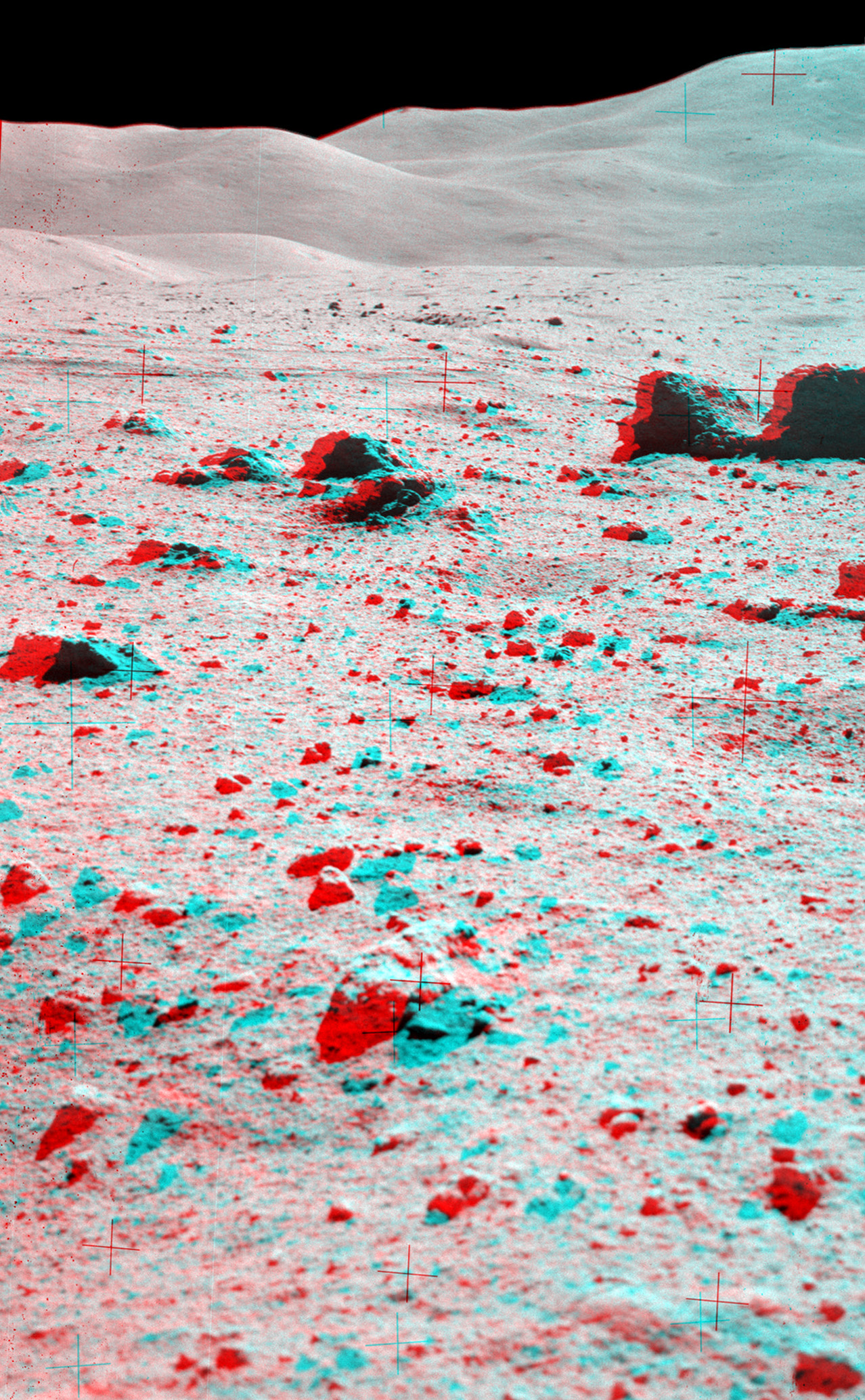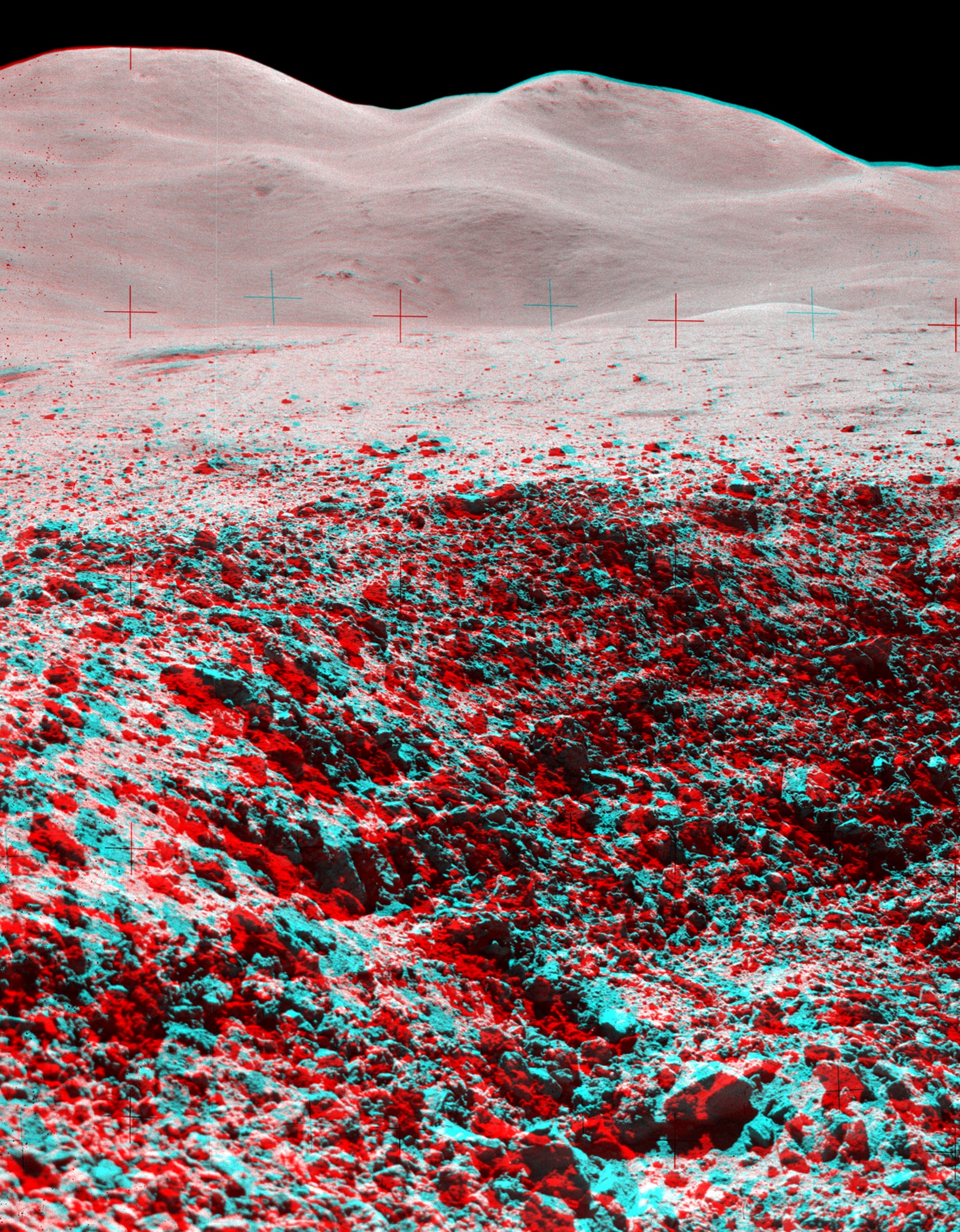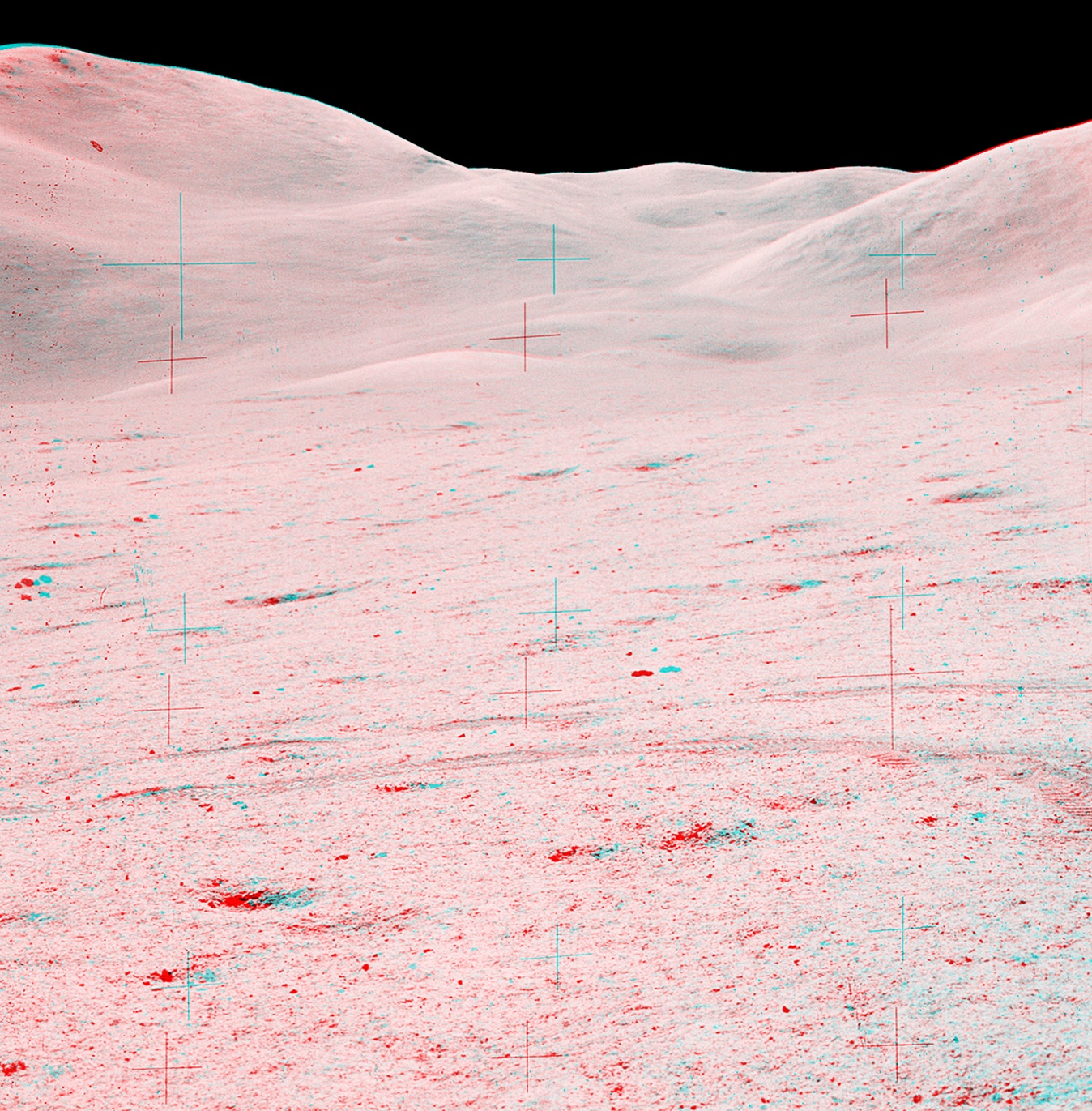 Anaglyphs in the image libraries created from sequential panorama frames by the ALSJ editor exist only because of Yuri Krasilnikov's willingness to teach me the art. Whatever value the anaglyphs have is due to Yuri's insights and guidance. Flaws are my doing. Briefly, panorama stitching software Hugin is used to create both non-stereo pan assemblies and remapped versions of the images. The latter are then made into anaglyphs using GIMP. The individual remapped images are linked from the corresponding Library entries for the original frames. The remapped images can be used to create stereo views using other methods.