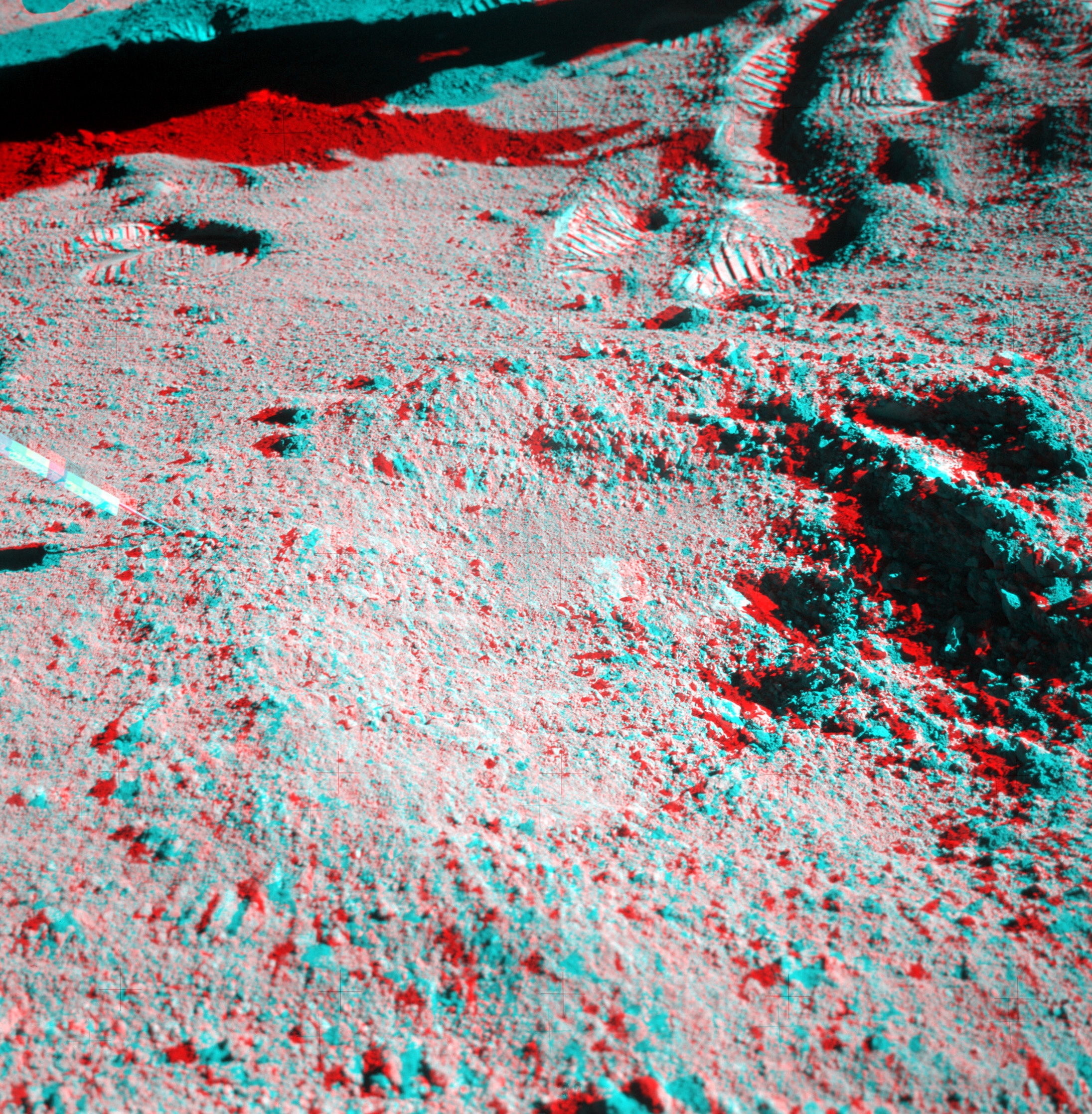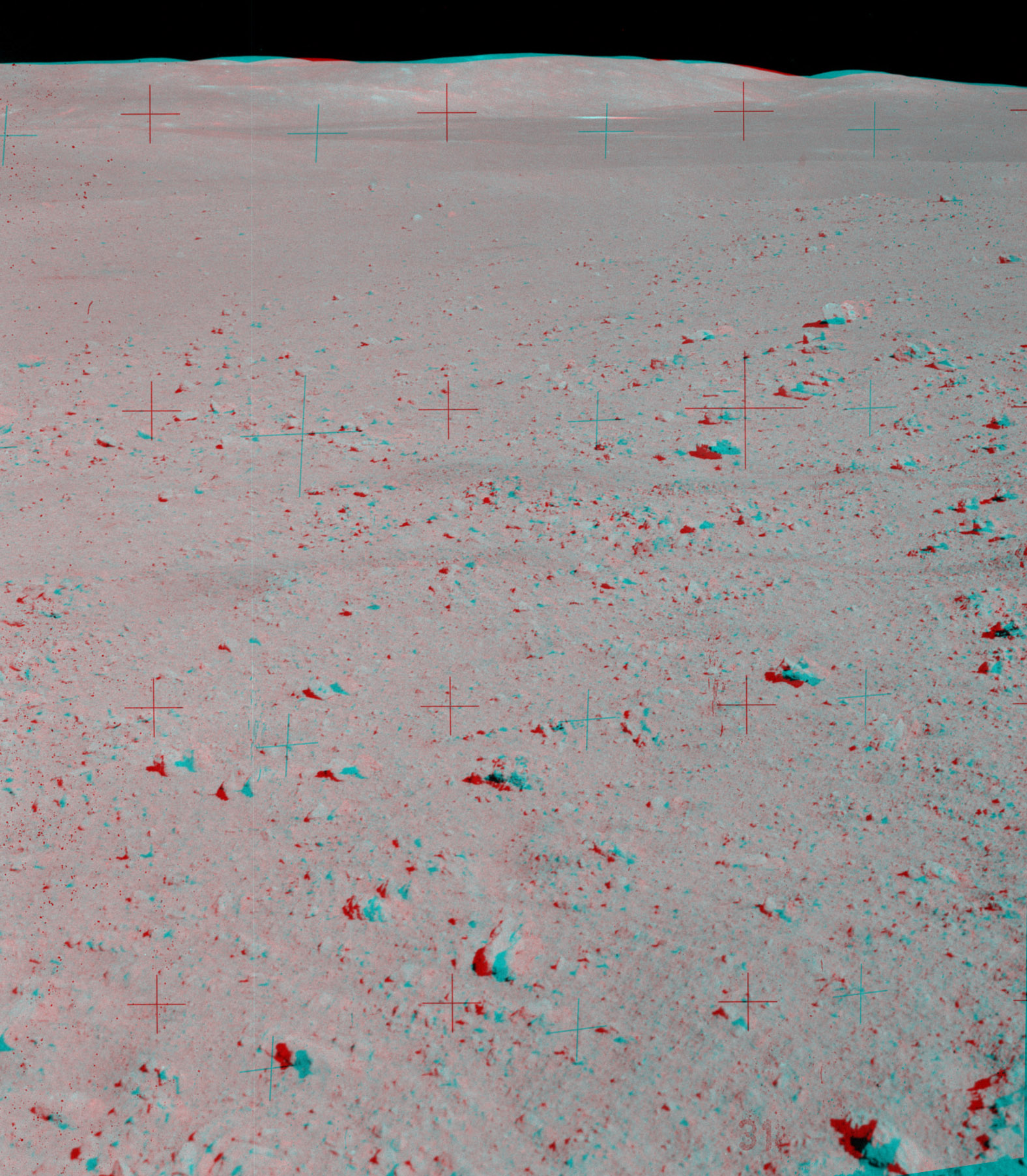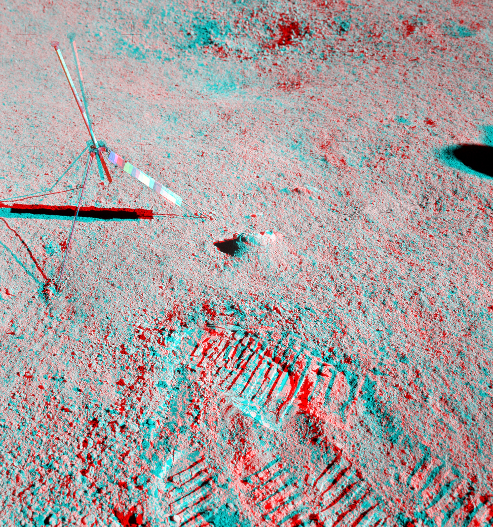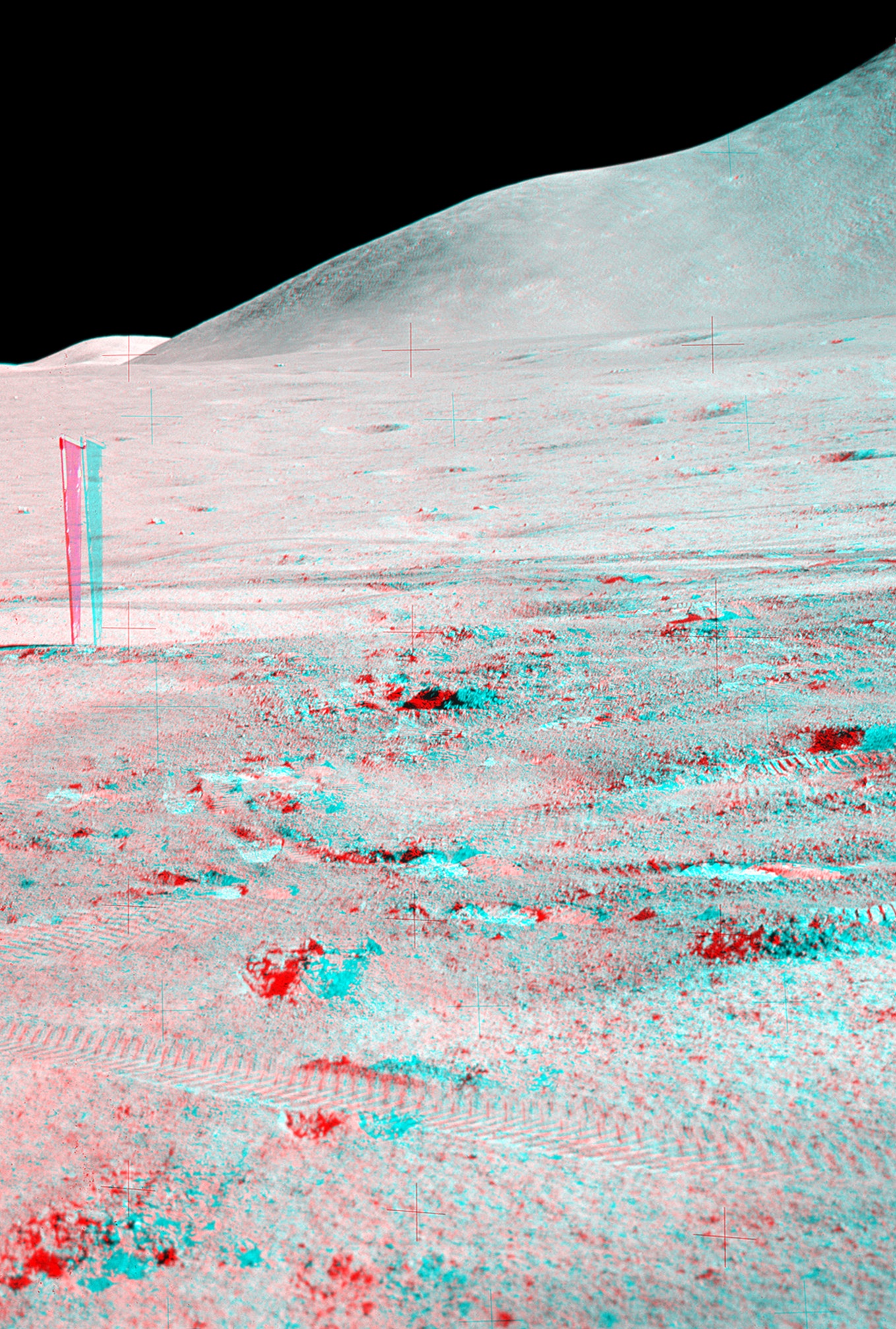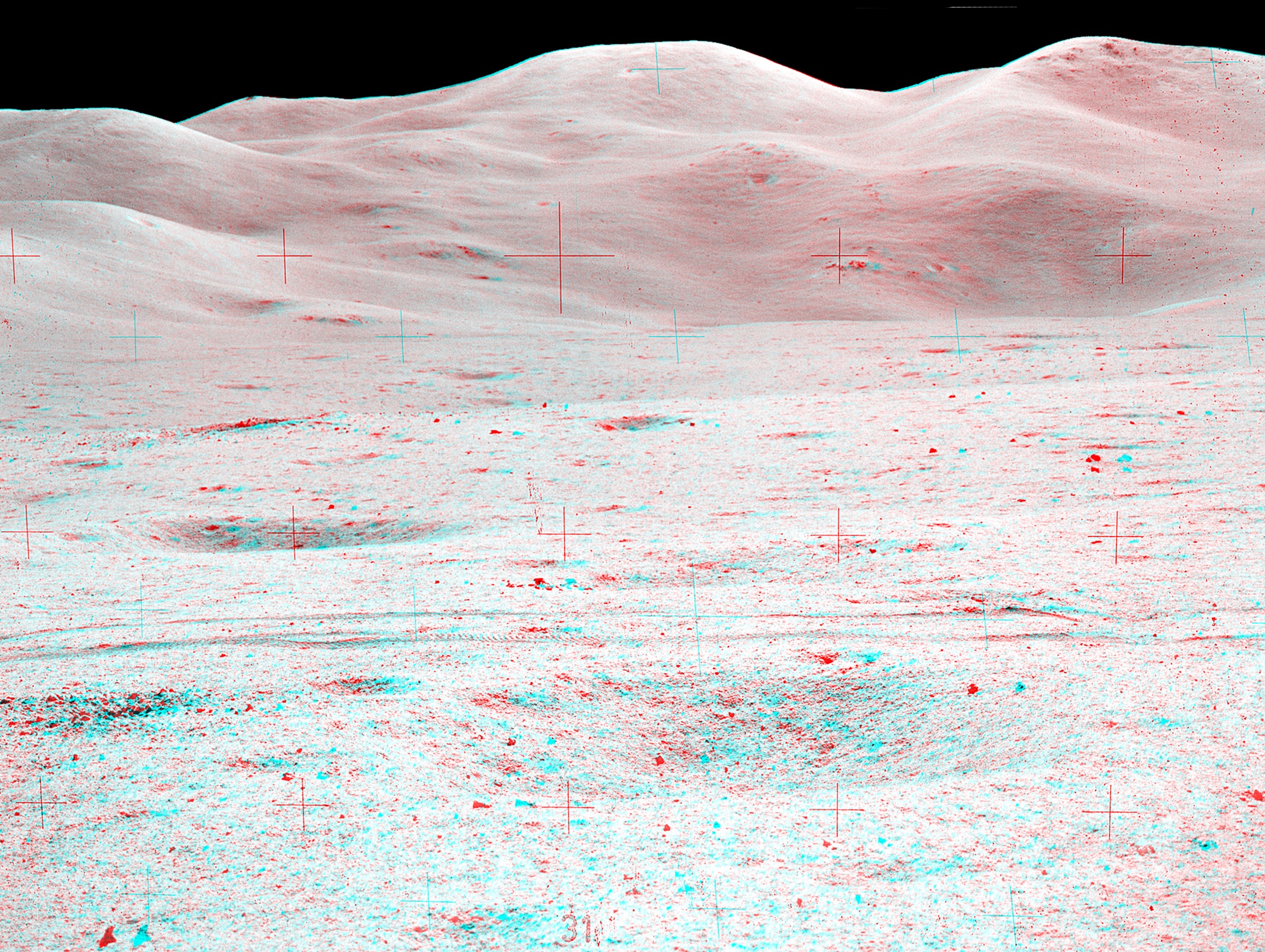 Anaglyphs in the image libraries created from sequential panorama frames by the ALSJ editor exist only because of Yuri Krasilnikov's willingness to teach me the art. Whatever value the anaglyphs have is due to Yuri's insights and guidance. Flaws are my doing. Briefly, panorama stitching software Hugin is used to create both non-stereo pan assemblies and remapped versions of the images. The latter are then made into anaglyphs using GIMP. The individual remapped images are linked from the corresponding Library entries for the original frames. The remapped images can be used to create stereo views using other methods.
