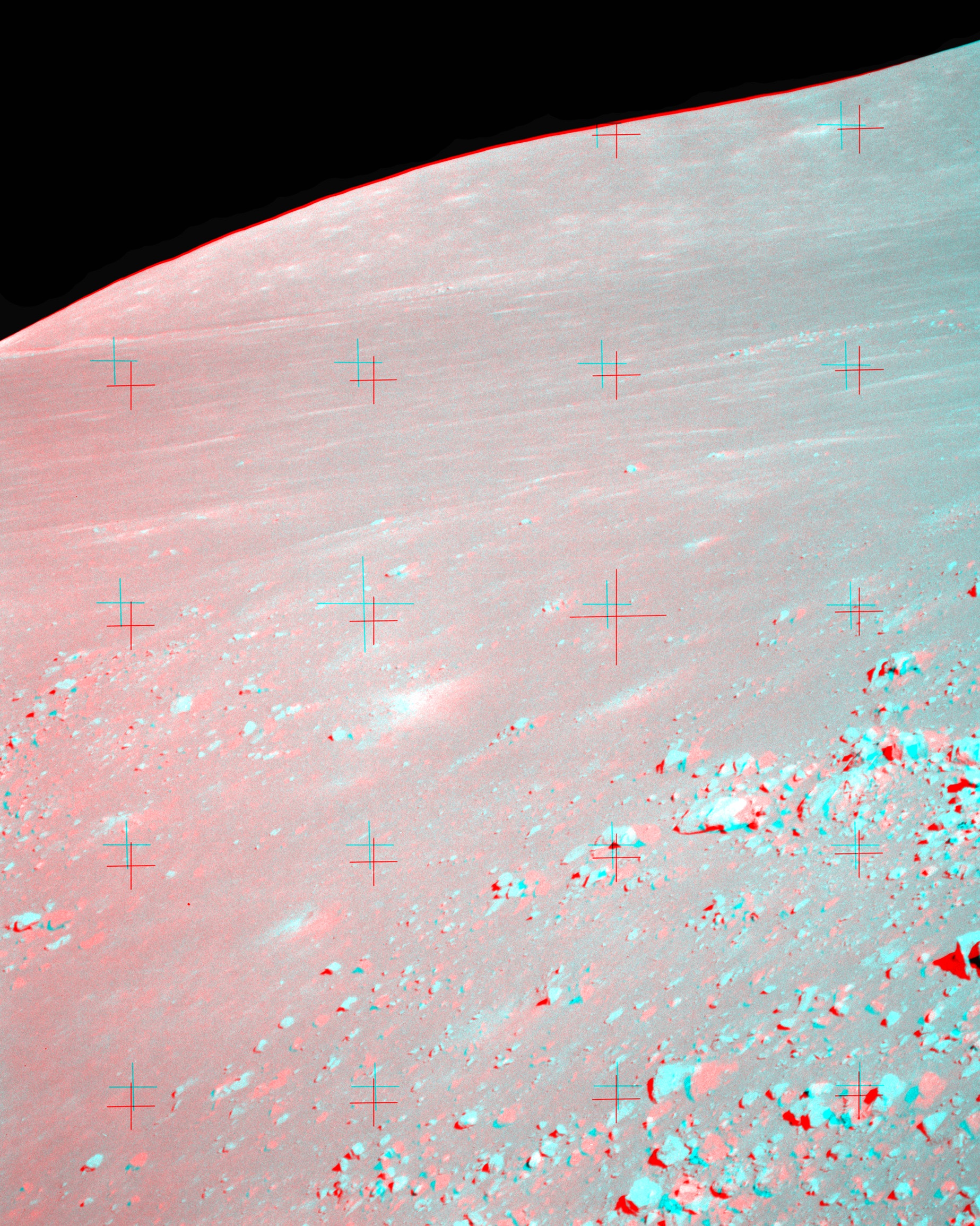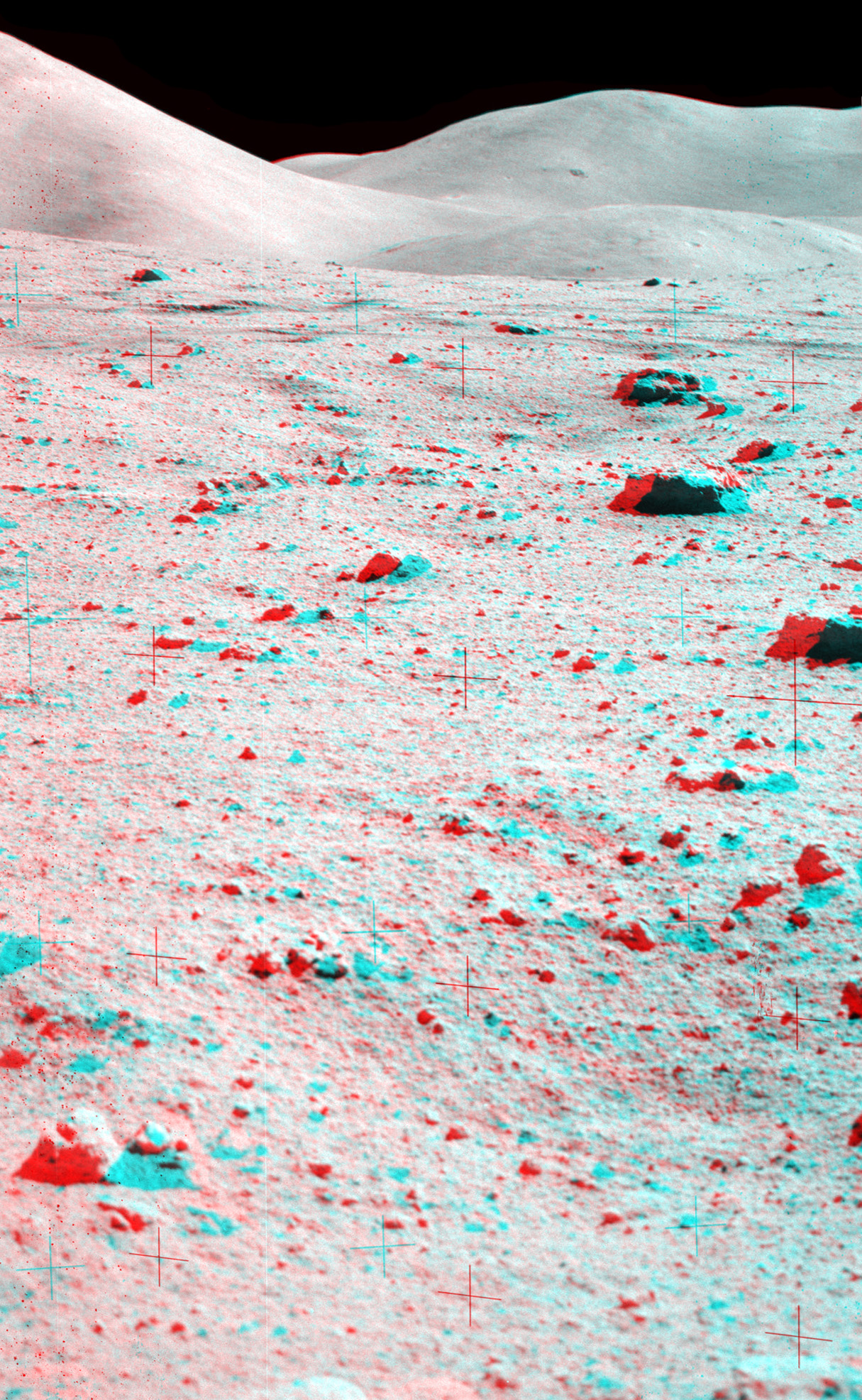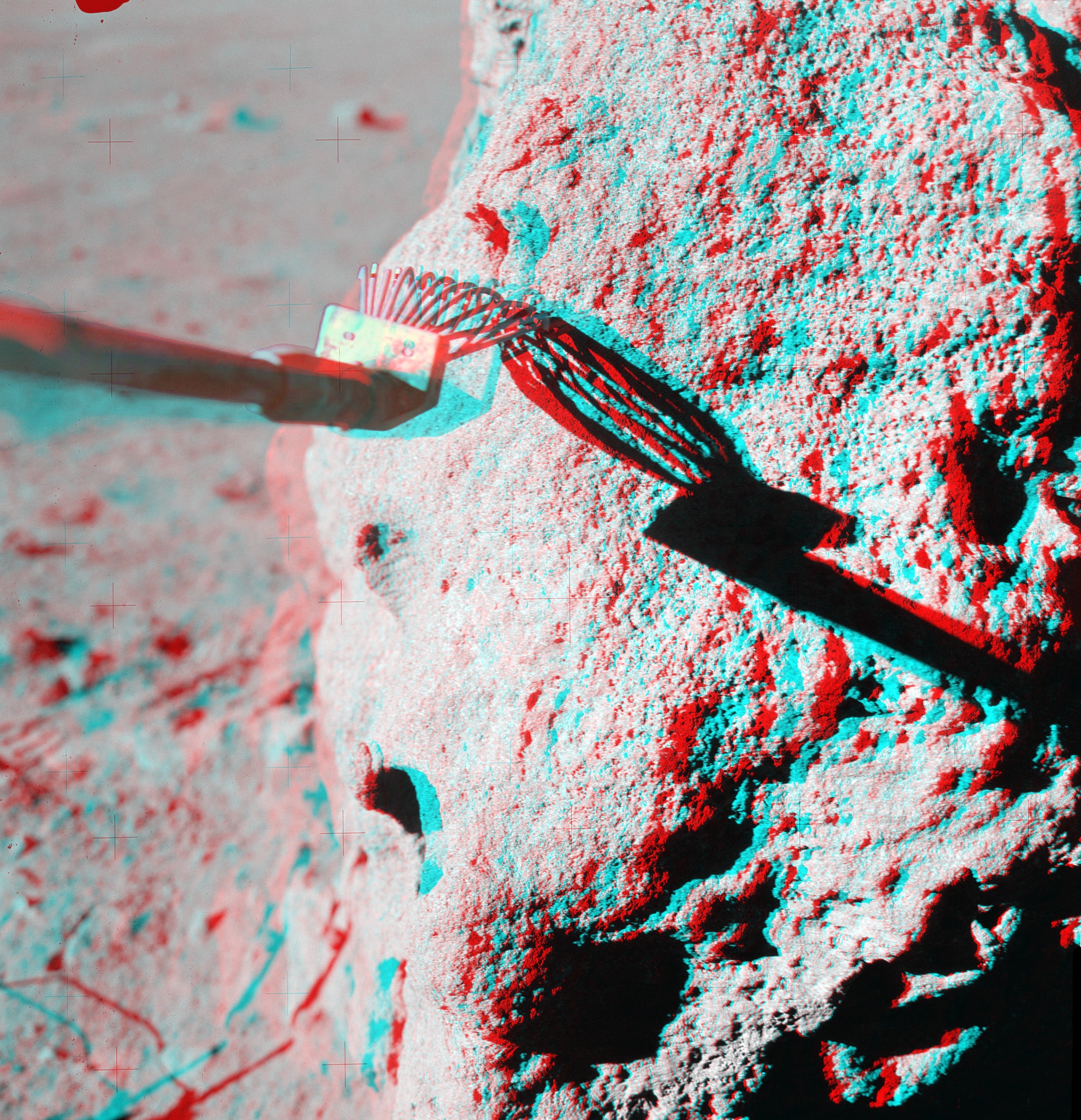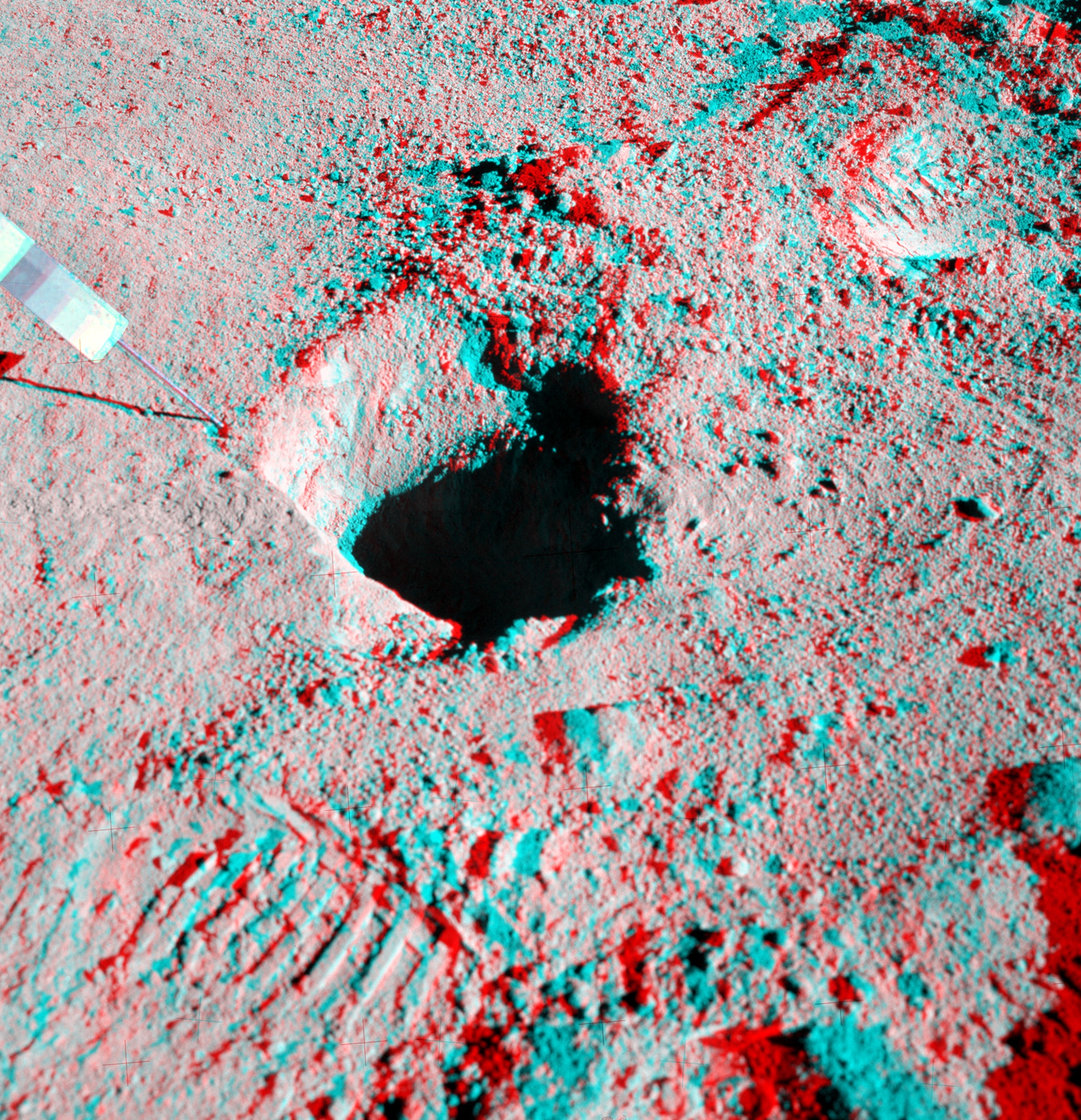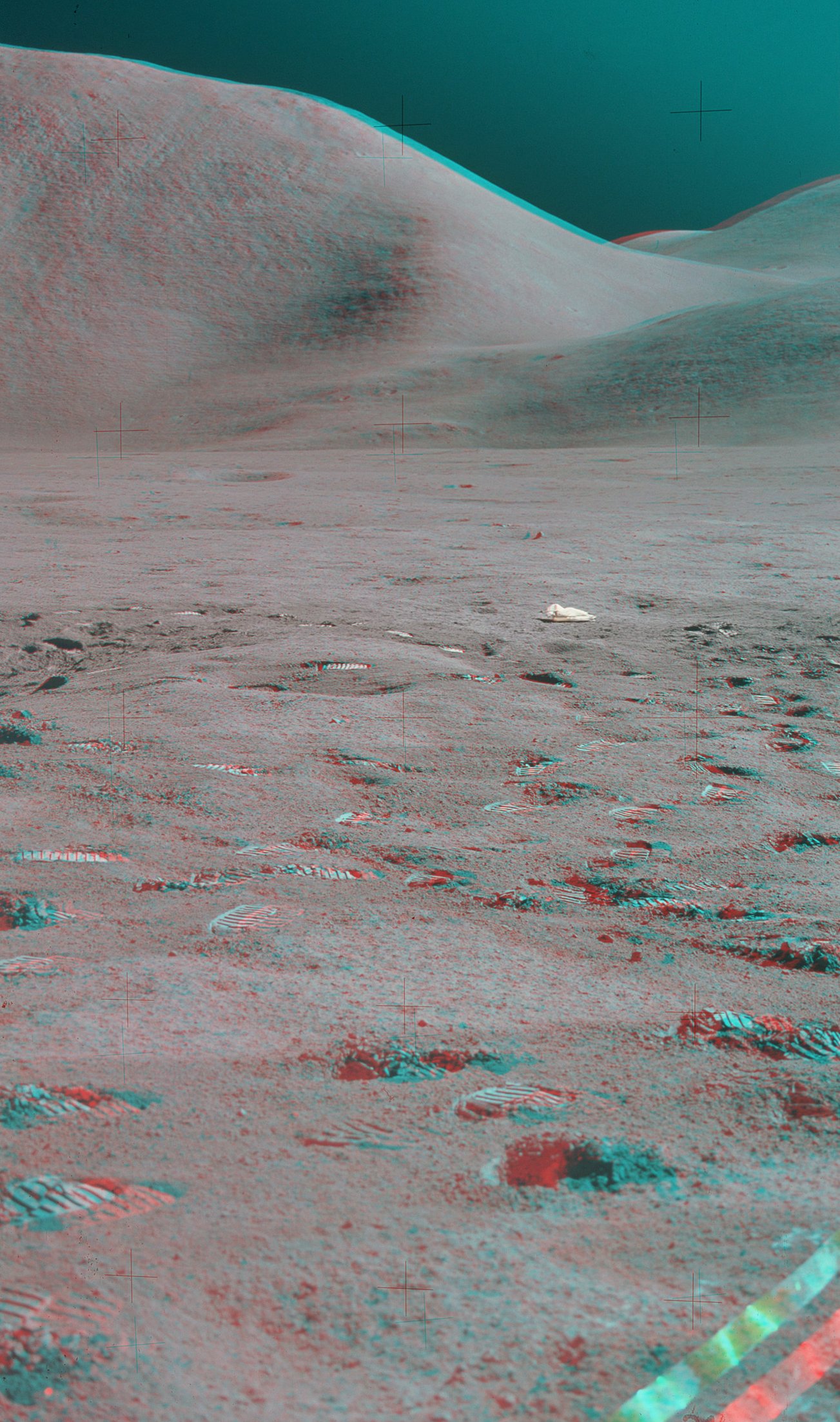 Anaglyphs in the image libraries created from sequential panorama frames by the ALSJ editor exist only because of Yuri Krasilnikov's willingness to teach me the art. Whatever value the anaglyphs have is due to Yuri's insights and guidance. Flaws are my doing. Briefly, panorama stitching software Hugin is used to create both non-stereo pan assemblies and remapped versions of the images. The latter are then made into anaglyphs using GIMP. The individual remapped images are linked from the corresponding Library entries for the original frames. The remapped images can be used to create stereo views using other methods.