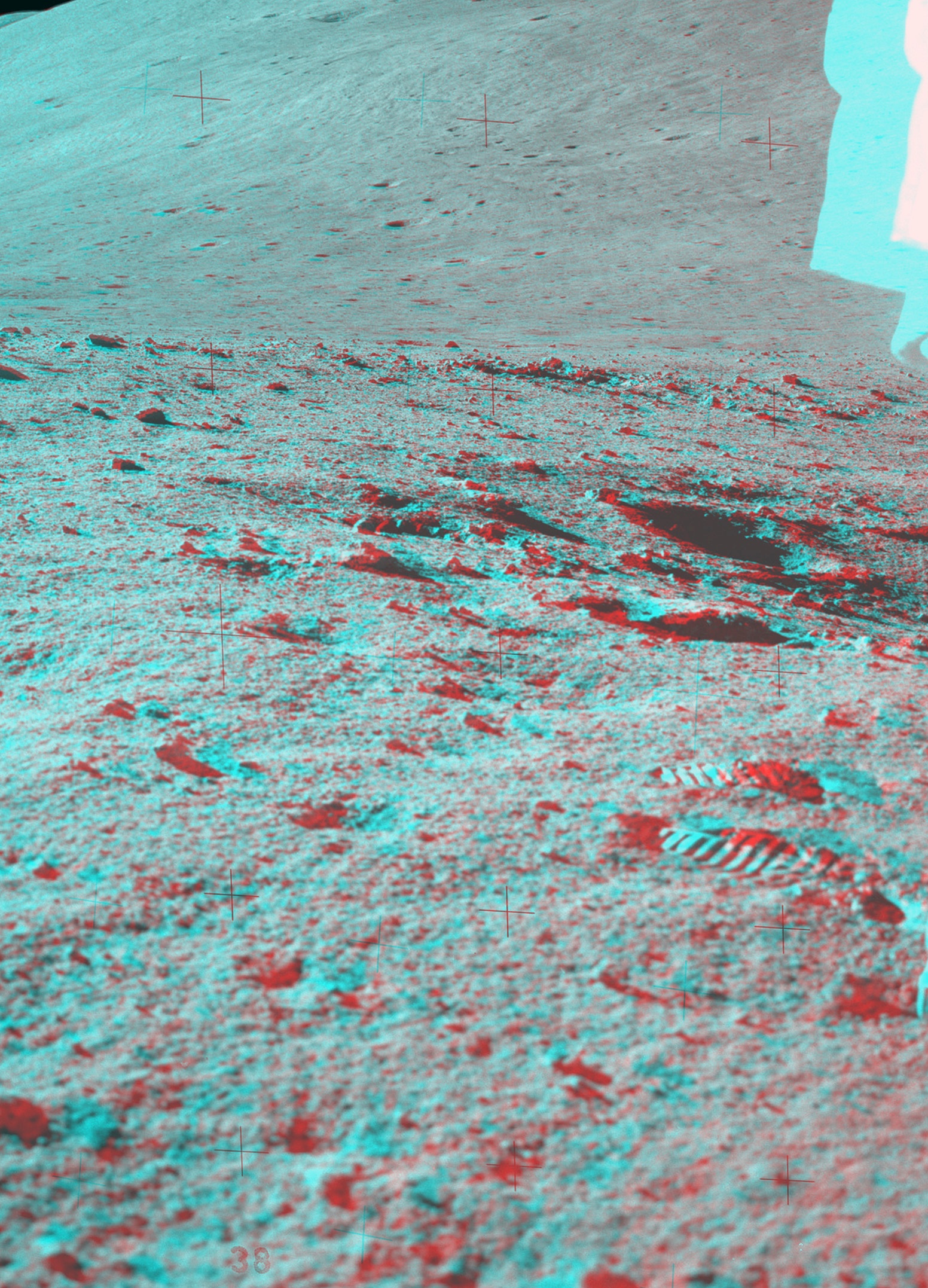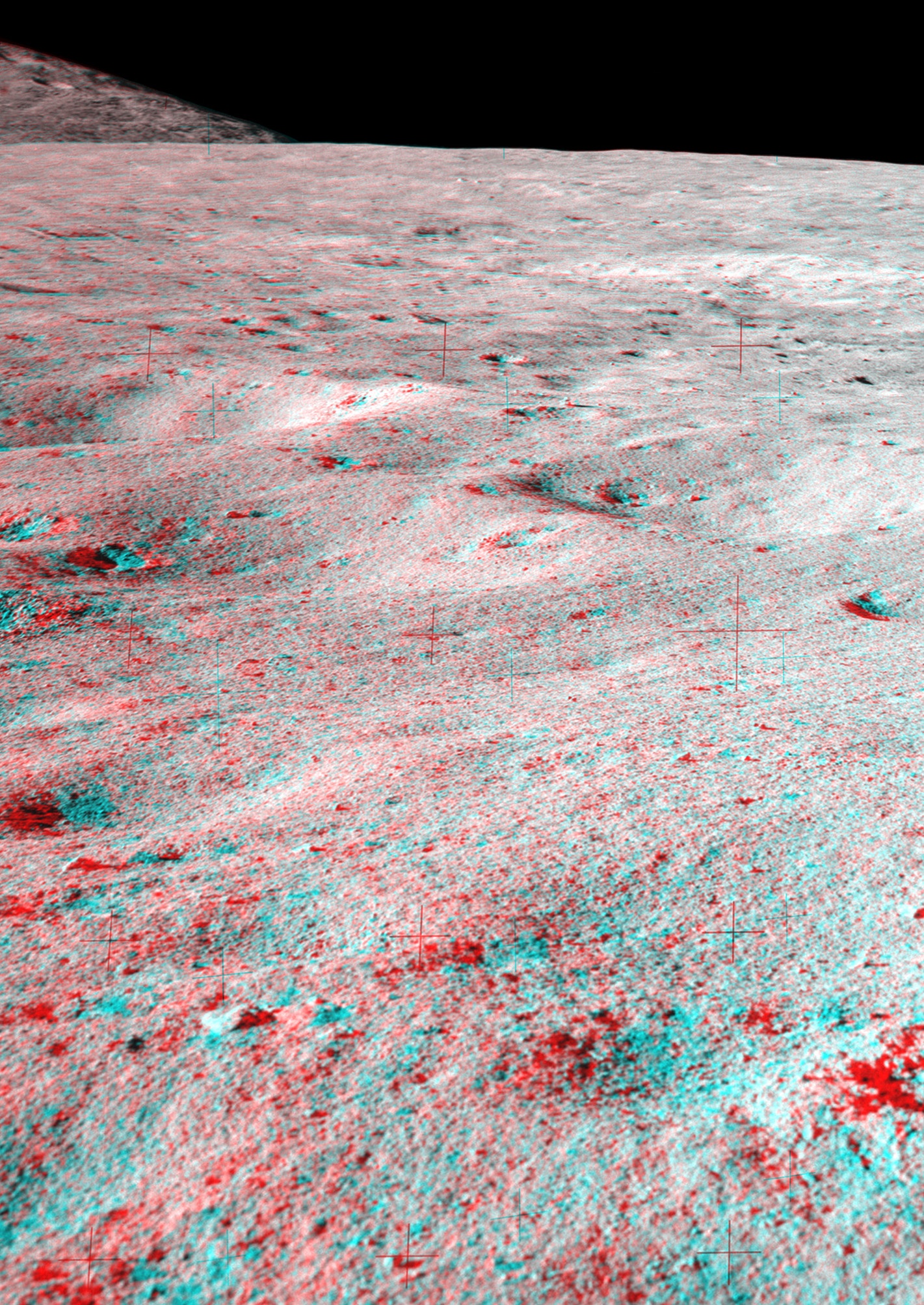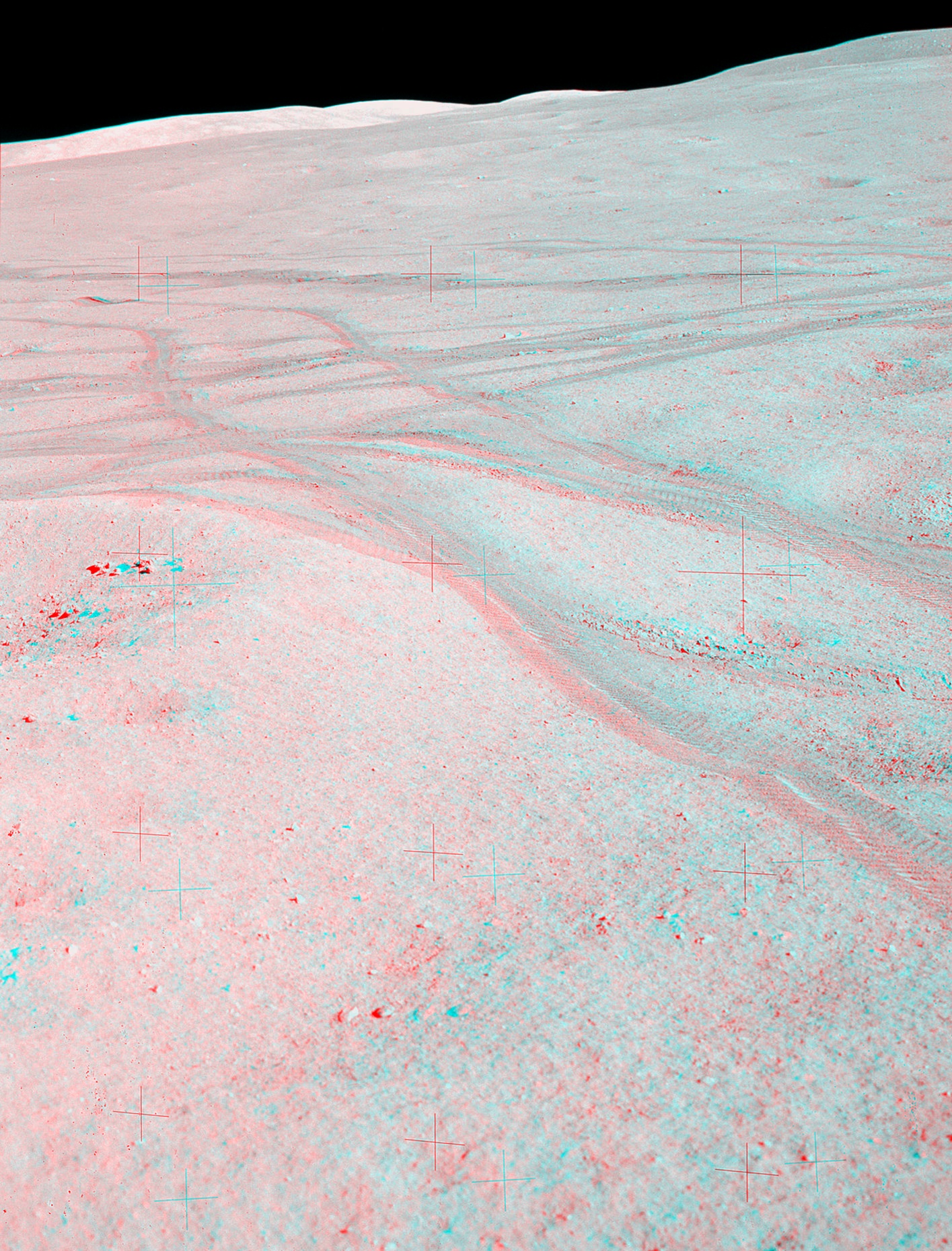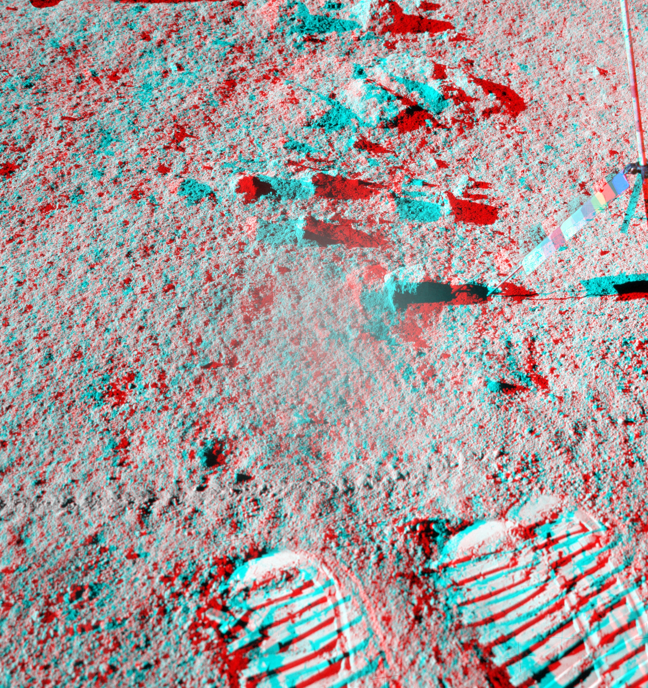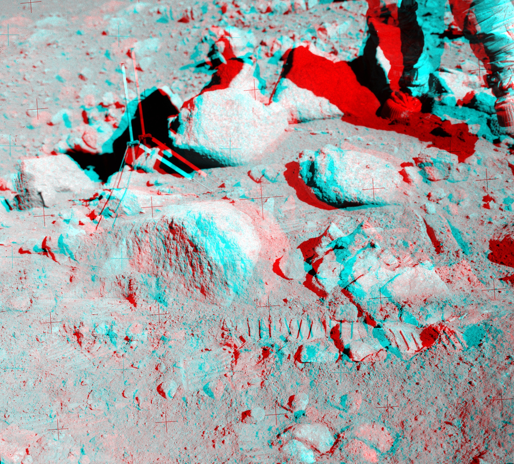 Anaglyphs in the image libraries created from sequential panorama frames by the ALSJ editor exist only because of Yuri Krasilnikov's willingness to teach me the art. Whatever value the anaglyphs have is due to Yuri's insights and guidance. Flaws are my doing. Briefly, panorama stitching software Hugin is used to create both non-stereo pan assemblies and remapped versions of the images. The latter are then made into anaglyphs using GIMP. The individual remapped images are linked from the corresponding Library entries for the original frames. The remapped images can be used to create stereo views using other methods.
