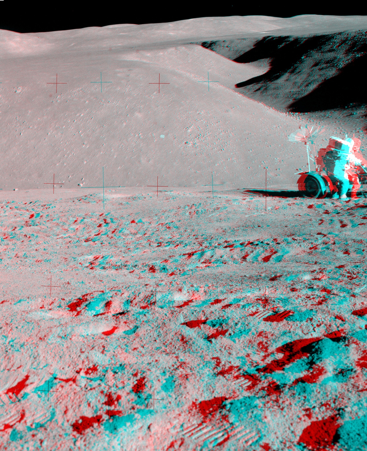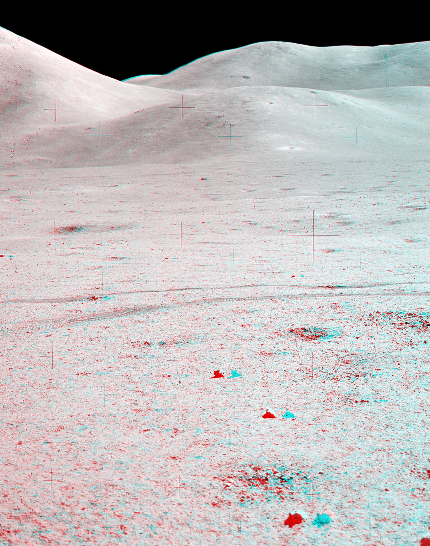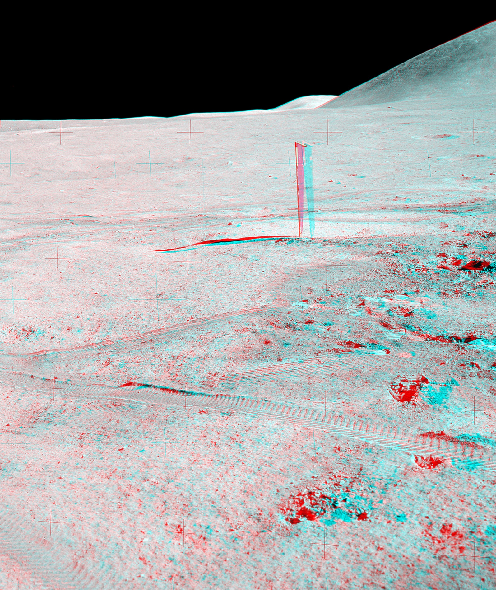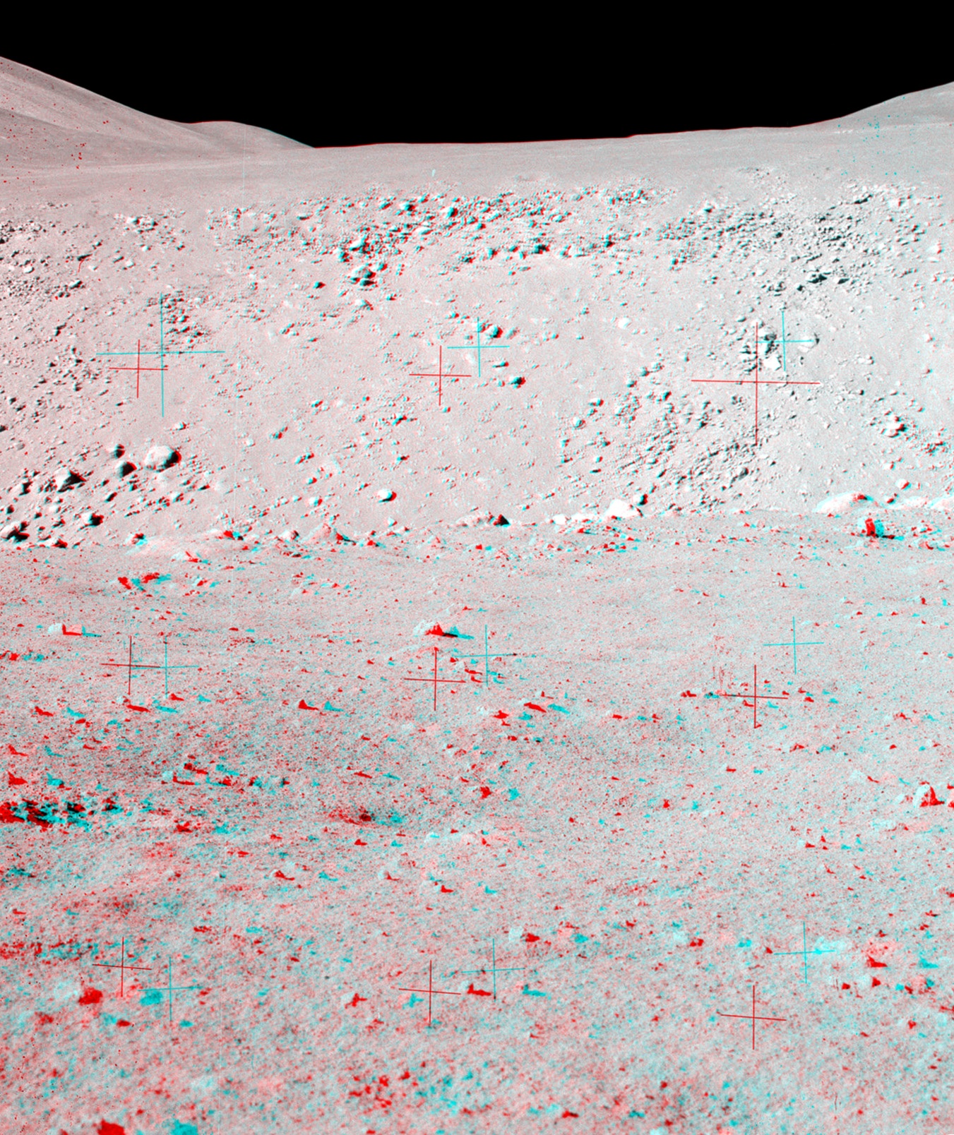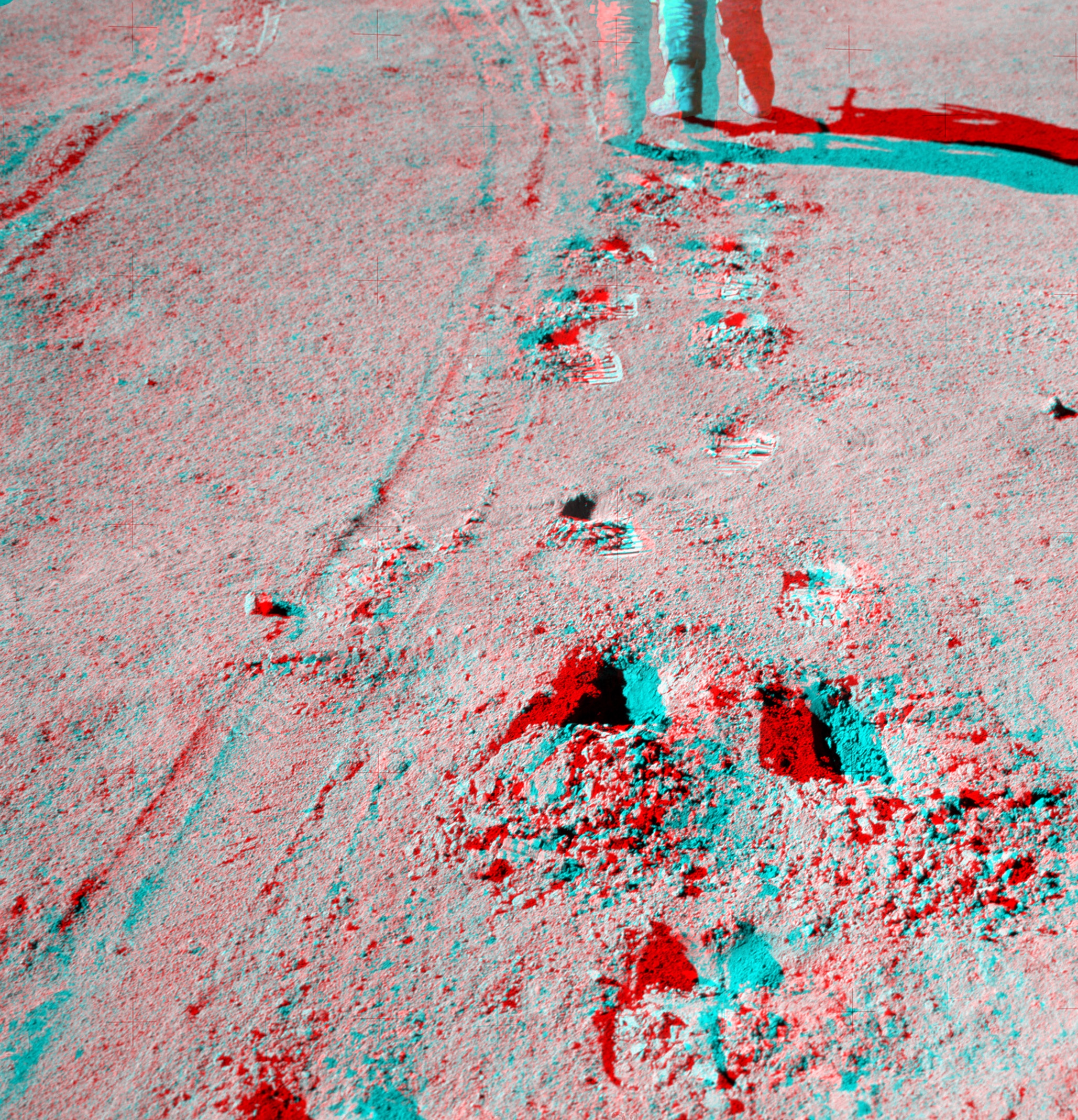 Anaglyphs in the image libraries created from sequential panorama frames by the ALSJ editor exist only because of Yuri Krasilnikov's willingness to teach me the art. Whatever value the anaglyphs have is due to Yuri's insights and guidance. Flaws are my doing. Briefly, panorama stitching software Hugin is used to create both non-stereo pan assemblies and remapped versions of the images. The latter are then made into anaglyphs using GIMP. The individual remapped images are linked from the corresponding Library entries for the original frames. The remapped images can be used to create stereo views using other methods.