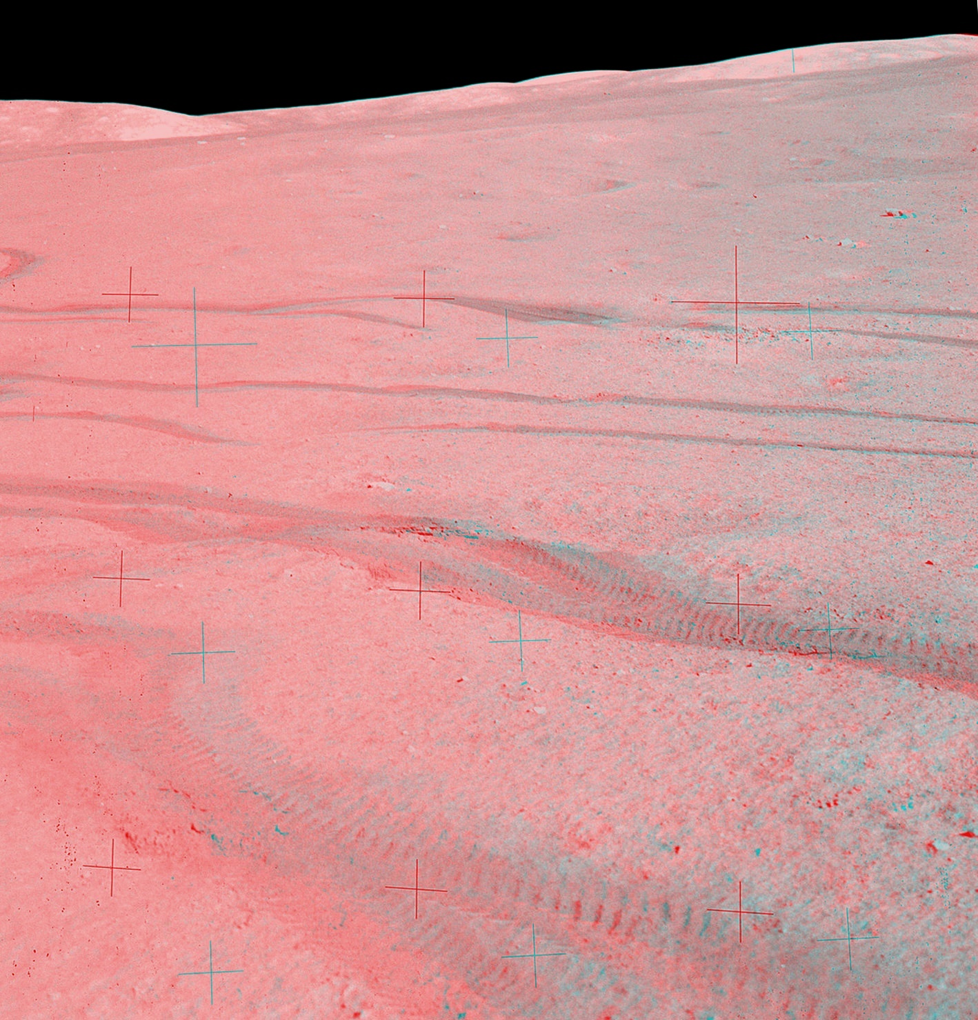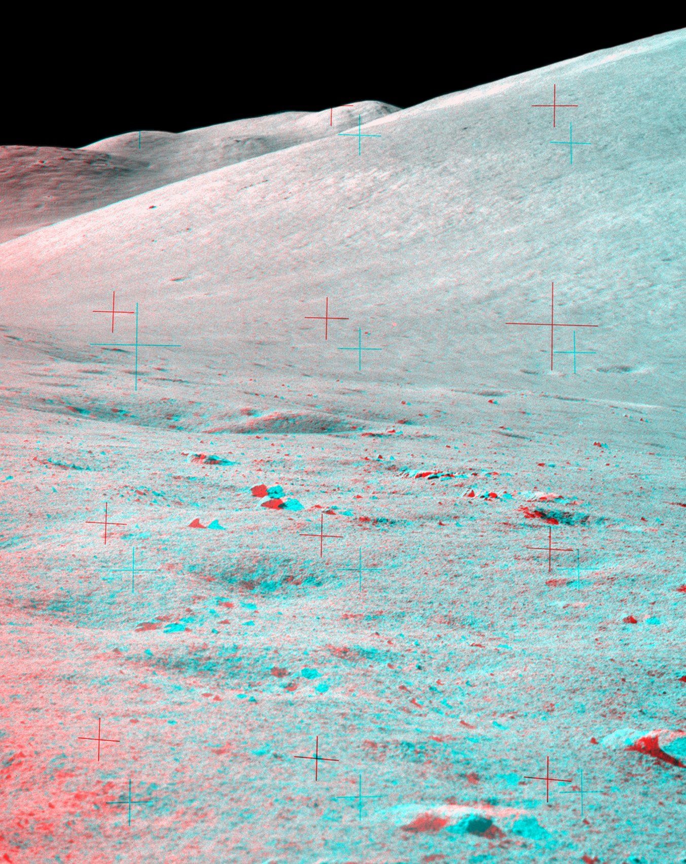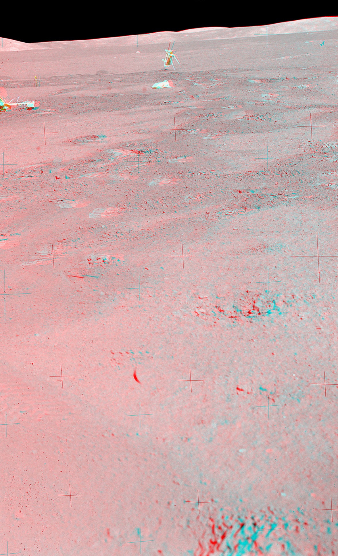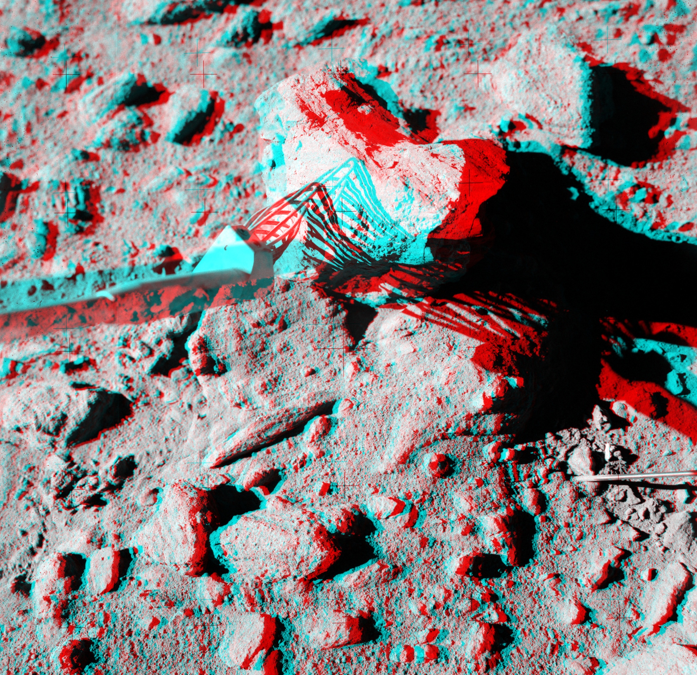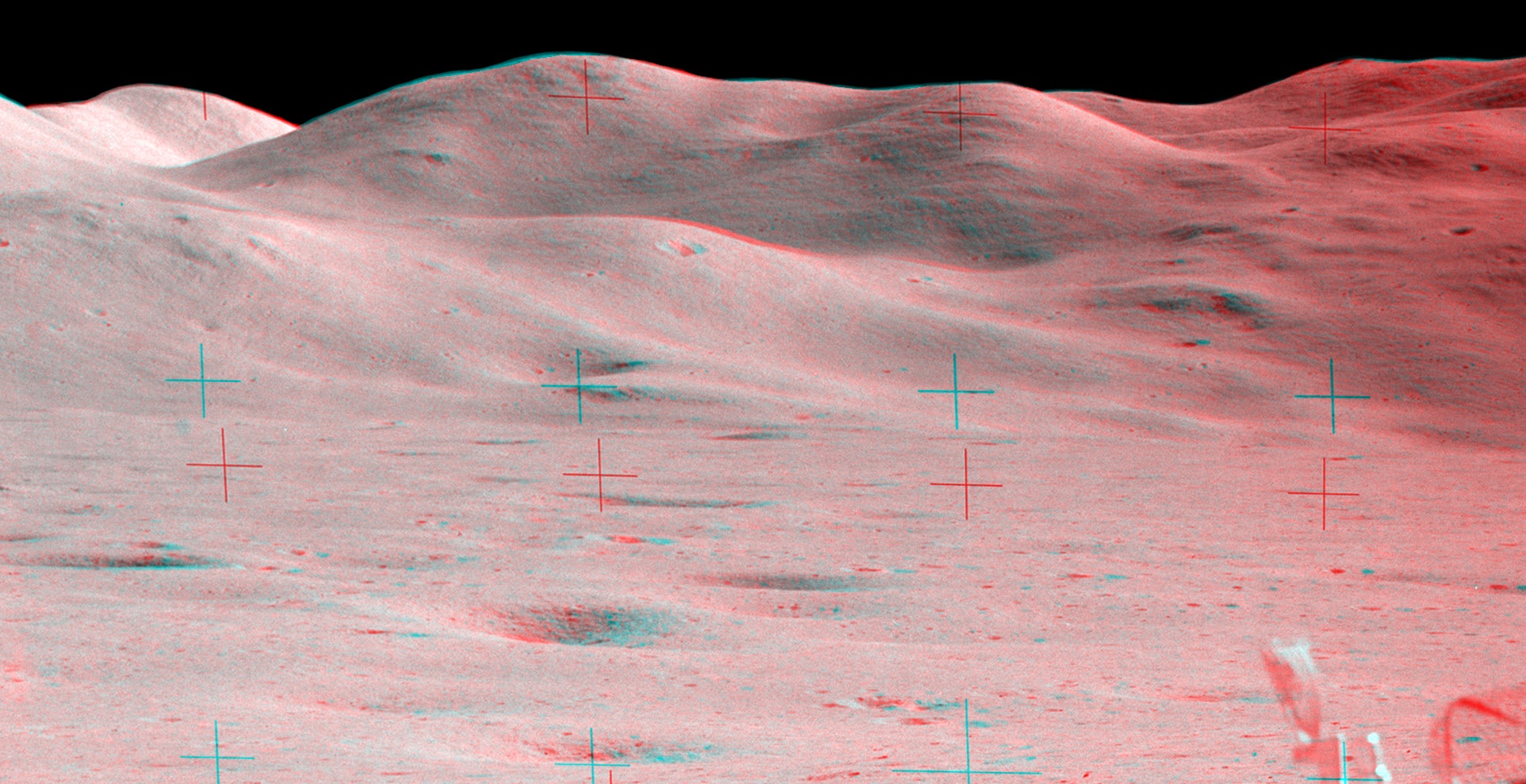 Anaglyphs in the image libraries created from sequential panorama frames by the ALSJ editor exist only because of Yuri Krasilnikov's willingness to teach me the art. Whatever value the anaglyphs have is due to Yuri's insights and guidance. Flaws are my doing. Briefly, panorama stitching software Hugin is used to create both non-stereo pan assemblies and remapped versions of the images. The latter are then made into anaglyphs using GIMP. The individual remapped images are linked from the corresponding Library entries for the original frames. The remapped images can be used to create stereo views using other methods.
