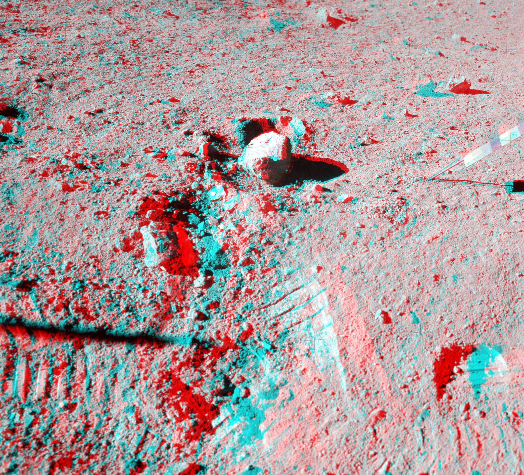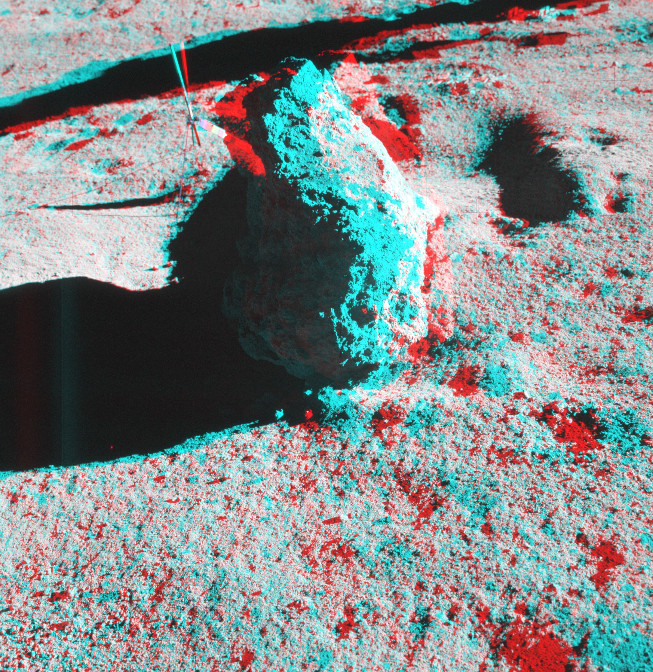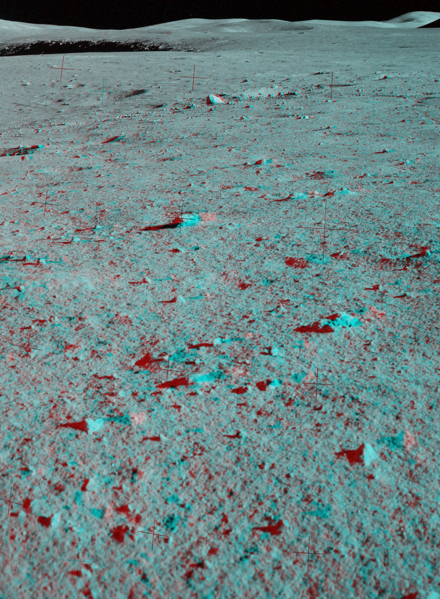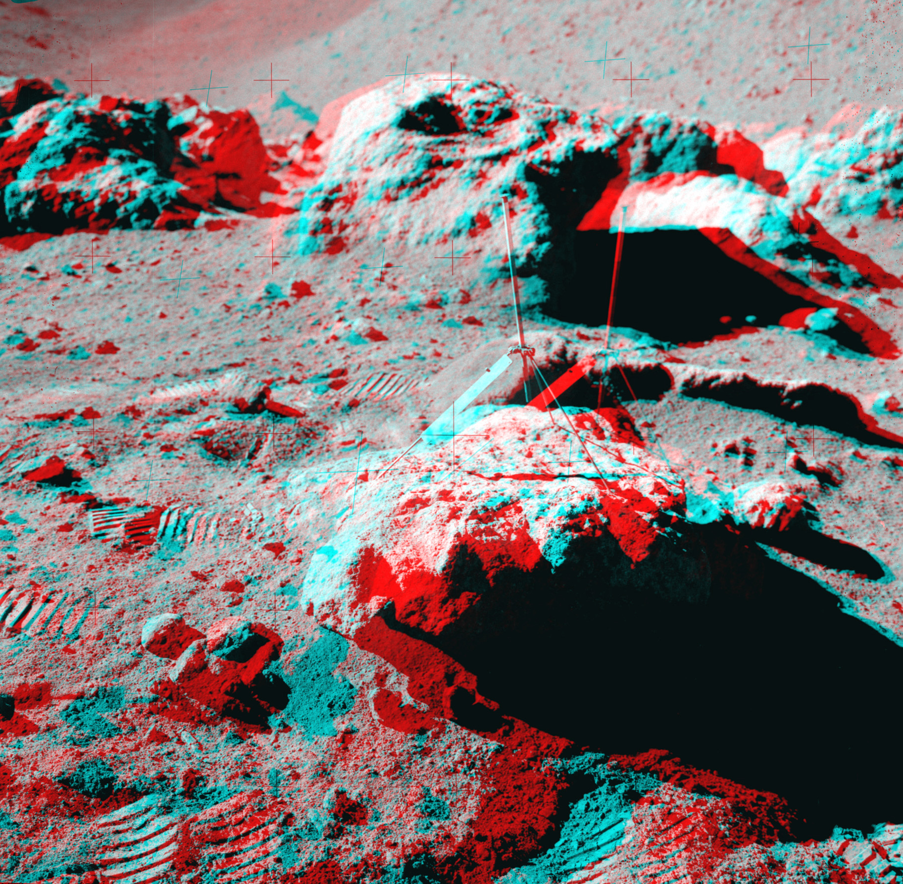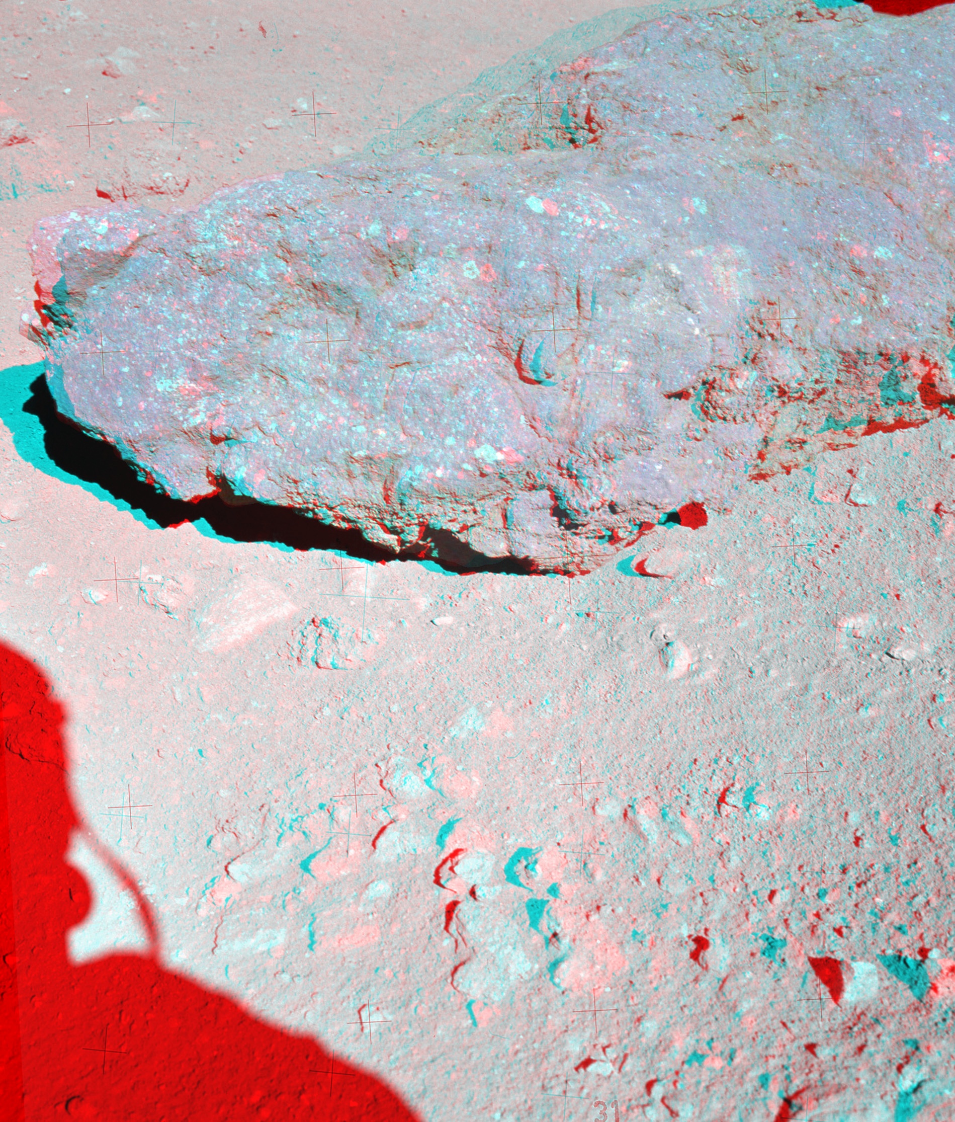 Anaglyphs in the image libraries created from sequential panorama frames by the ALSJ editor exist only because of Yuri Krasilnikov's willingness to teach me the art. Whatever value the anaglyphs have is due to Yuri's insights and guidance. Flaws are my doing. Briefly, panorama stitching software Hugin is used to create both non-stereo pan assemblies and remapped versions of the images. The latter are then made into anaglyphs using GIMP. The individual remapped images are linked from the corresponding Library entries for the original frames. The remapped images can be used to create stereo views using other methods.