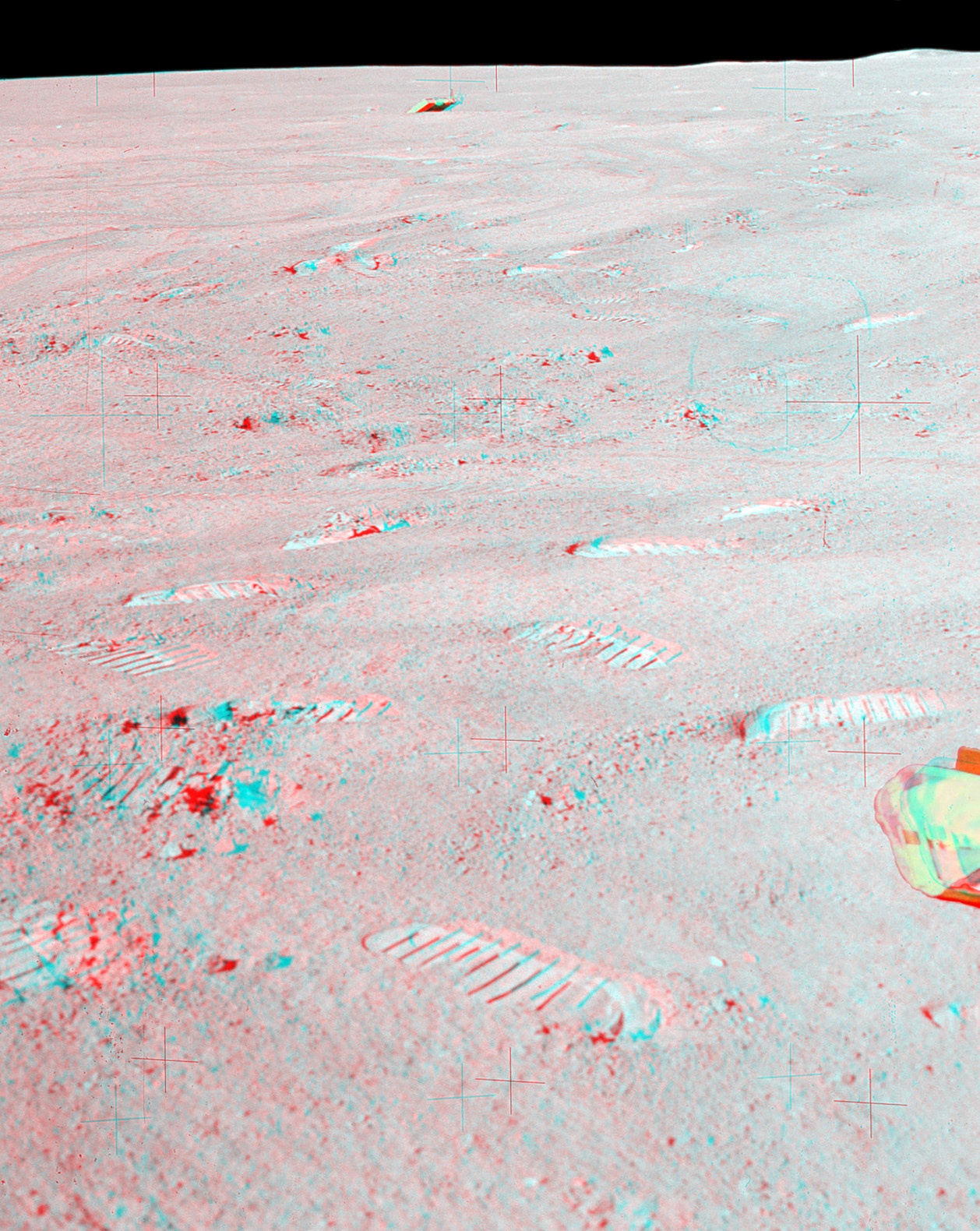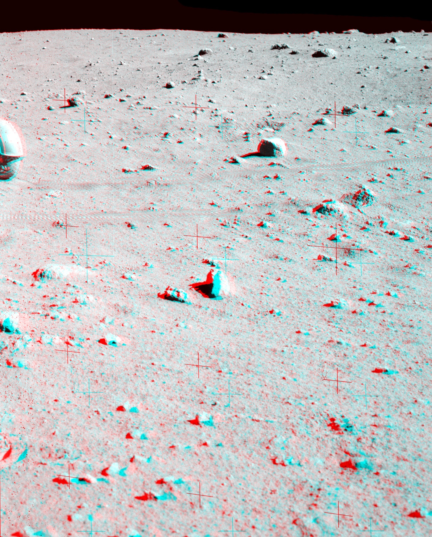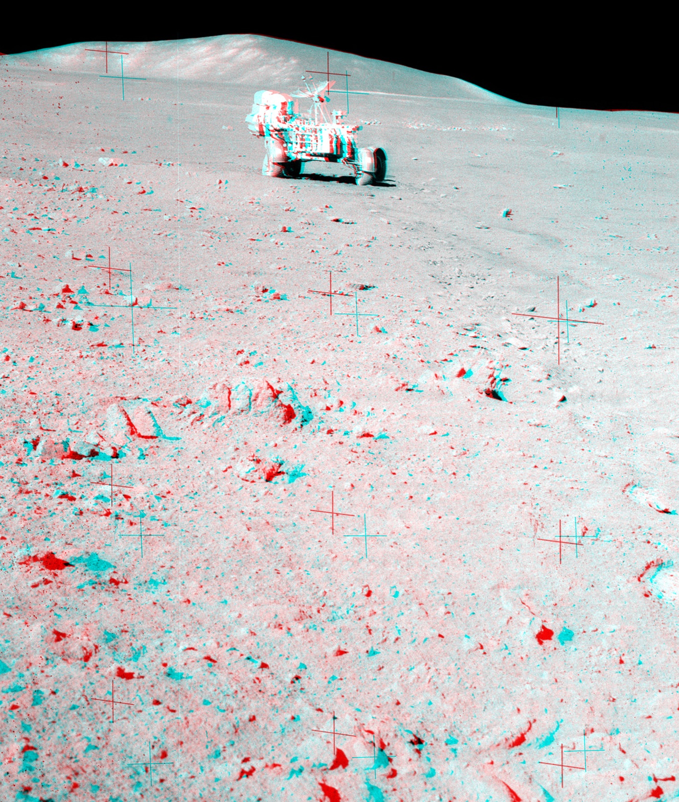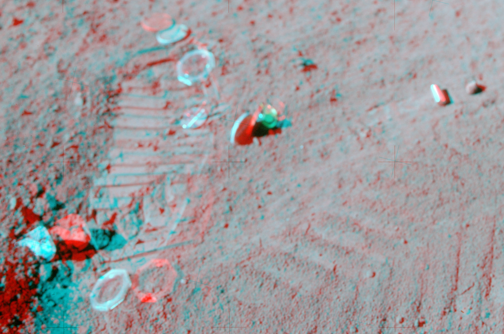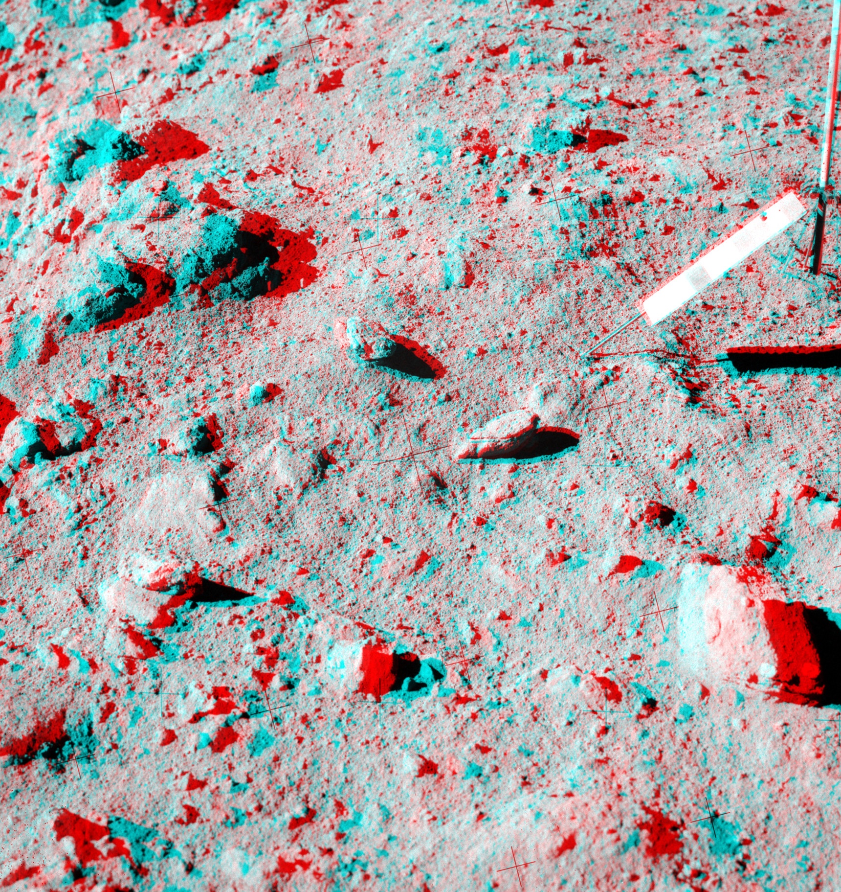 Anaglyphs in the image libraries created from sequential panorama frames by the ALSJ editor exist only because of Yuri Krasilnikov's willingness to teach me the art. Whatever value the anaglyphs have is due to Yuri's insights and guidance. Flaws are my doing. Briefly, panorama stitching software Hugin is used to create both non-stereo pan assemblies and remapped versions of the images. The latter are then made into anaglyphs using GIMP. The individual remapped images are linked from the corresponding Library entries for the original frames. The remapped images can be used to create stereo views using other methods.