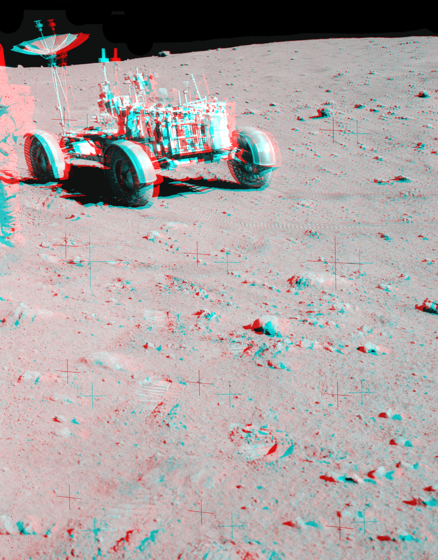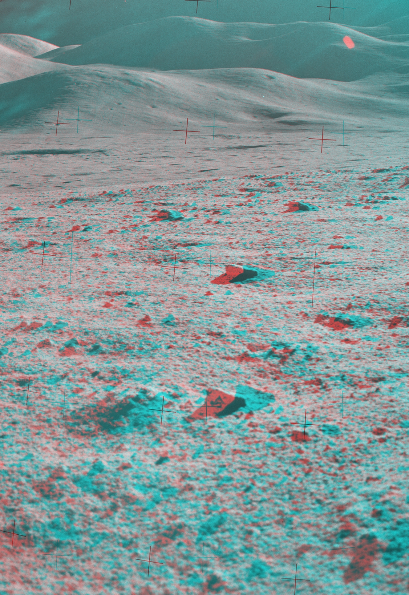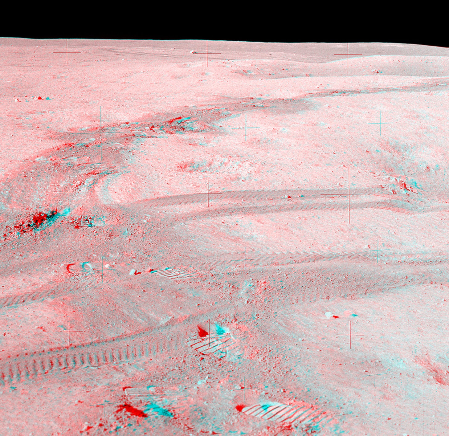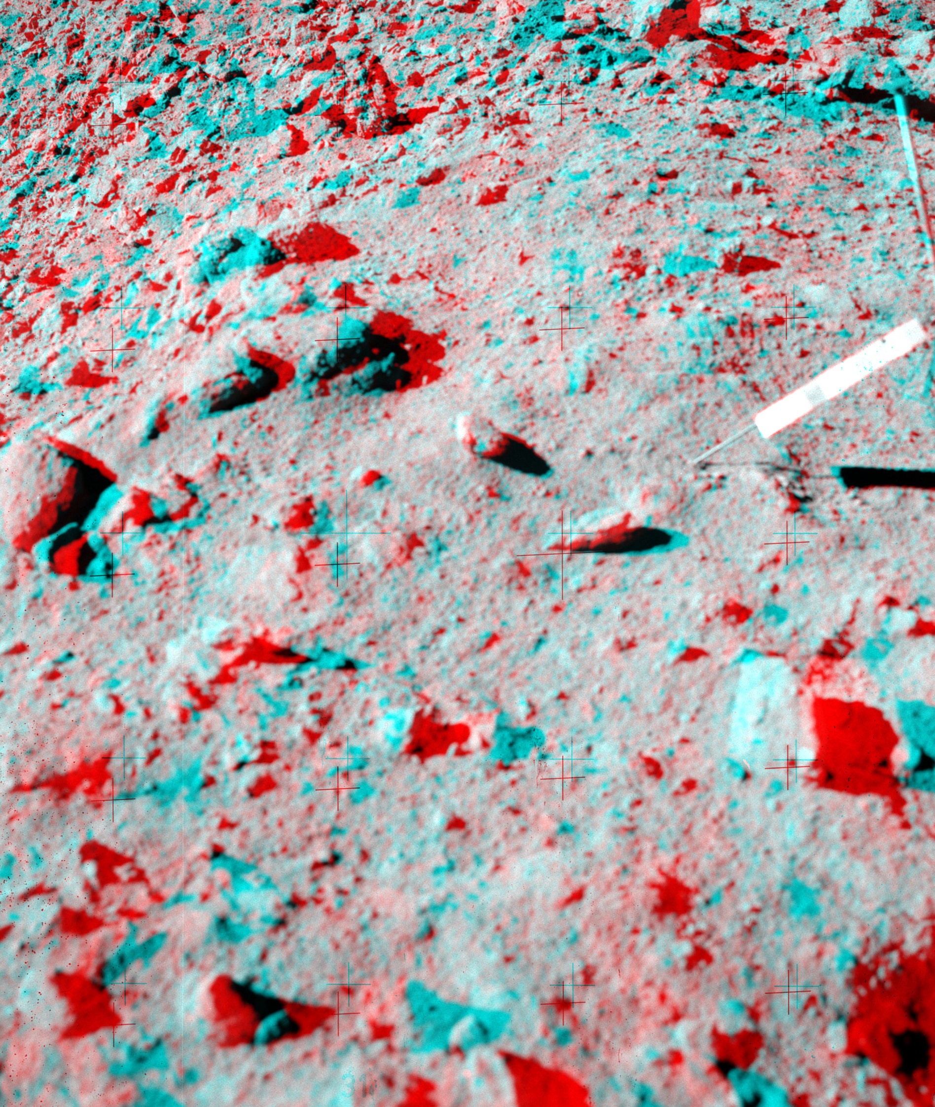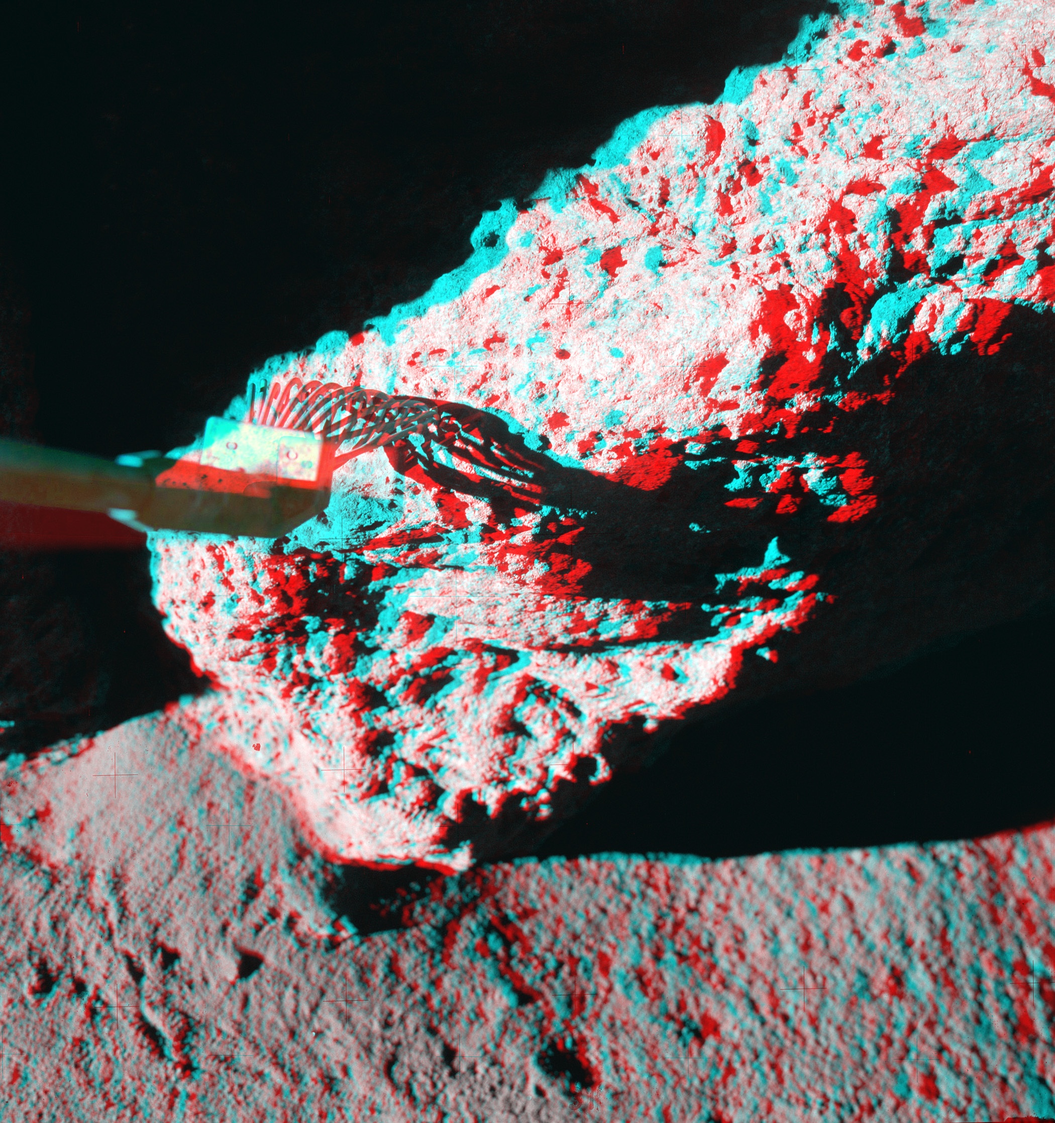 Anaglyphs in the image libraries created from sequential panorama frames by the ALSJ editor exist only because of Yuri Krasilnikov's willingness to teach me the art. Whatever value the anaglyphs have is due to Yuri's insights and guidance. Flaws are my doing. Briefly, panorama stitching software Hugin is used to create both non-stereo pan assemblies and remapped versions of the images. The latter are then made into anaglyphs using GIMP. The individual remapped images are linked from the corresponding Library entries for the original frames. The remapped images can be used to create stereo views using other methods.