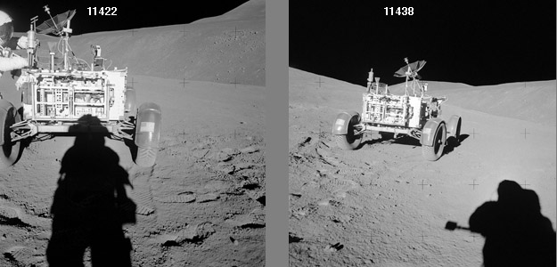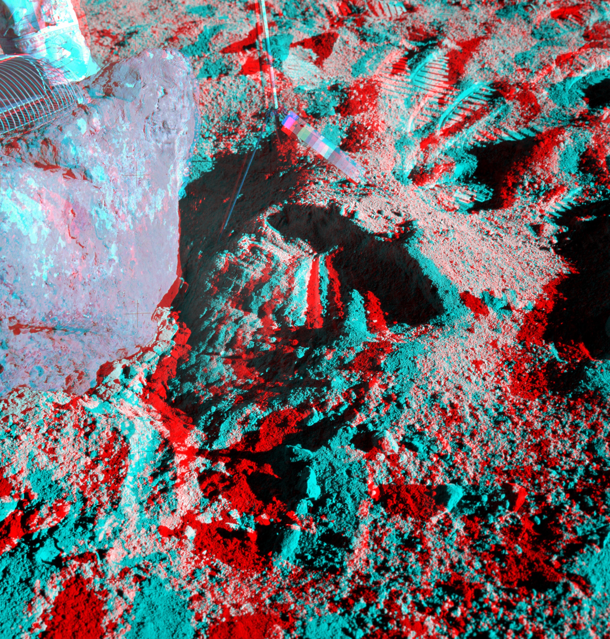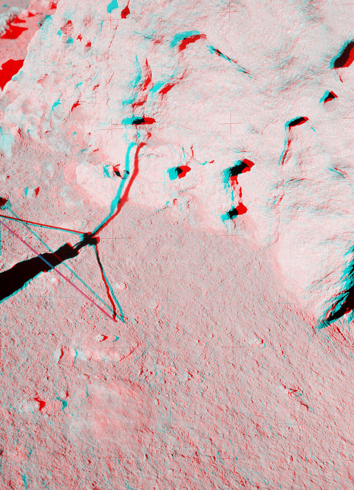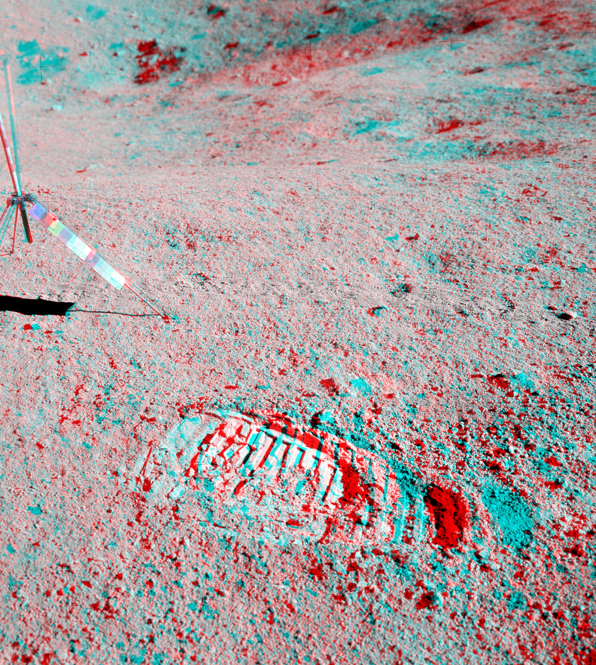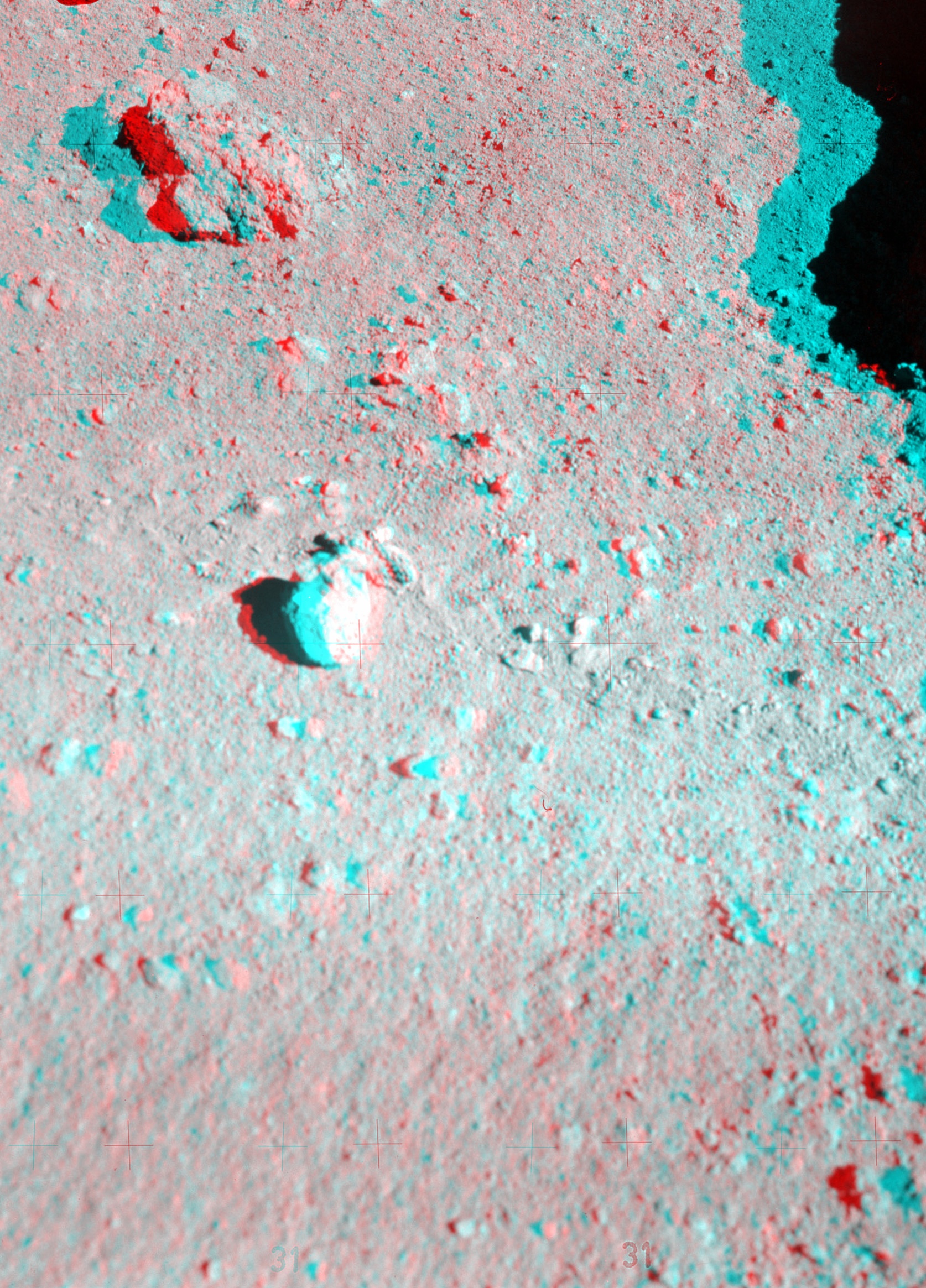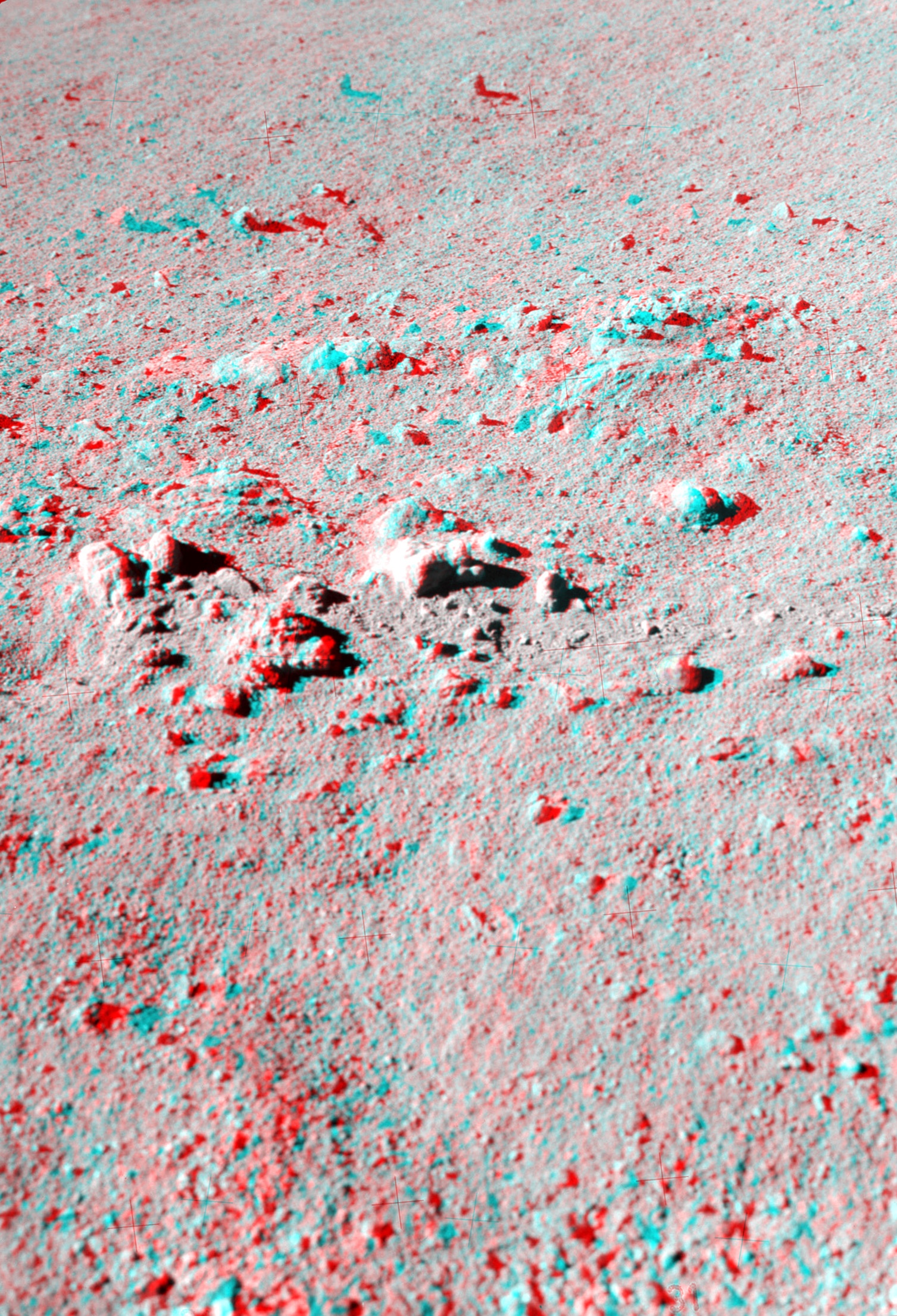 Anaglyphs in the image libraries created from sequential panorama frames by the ALSJ editor exist only because of Yuri Krasilnikov's willingness to teach me the art. Whatever value the anaglyphs have is due to Yuri's insights and guidance. Flaws are my doing. Briefly, panorama stitching software Hugin is used to create both non-stereo pan assemblies and remapped versions of the images. The latter are then made into anaglyphs using GIMP. The individual remapped images are linked from the corresponding Library entries for the original frames. The remapped images can be used to create stereo views using other methods.