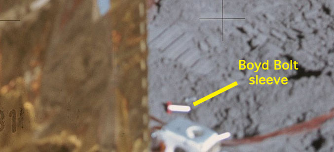 Fourth view of Great Scott. The cube at the lower right is one inch (2.54 cm) on eash side.S71-43955 (14 Mb or 0.3 Mb)