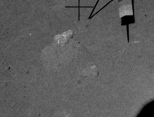 LRL view of sample 15205, a cubical sample off the Station 2 boulder with thin glass coatings on five of six sides. Image courtesy Mike Gentry, NASA Johnson.S77-22162 (2.3 Mb)