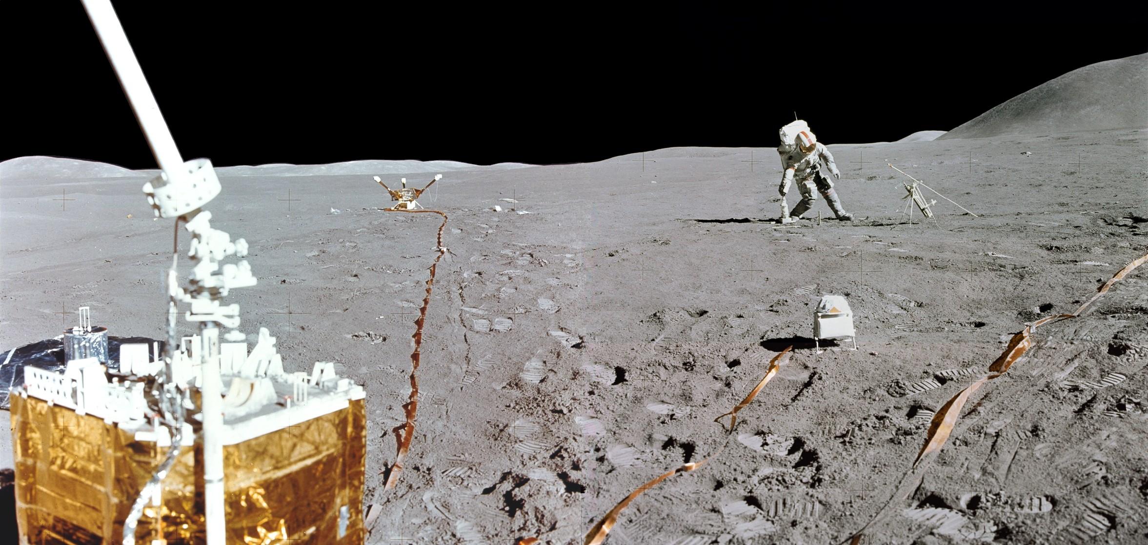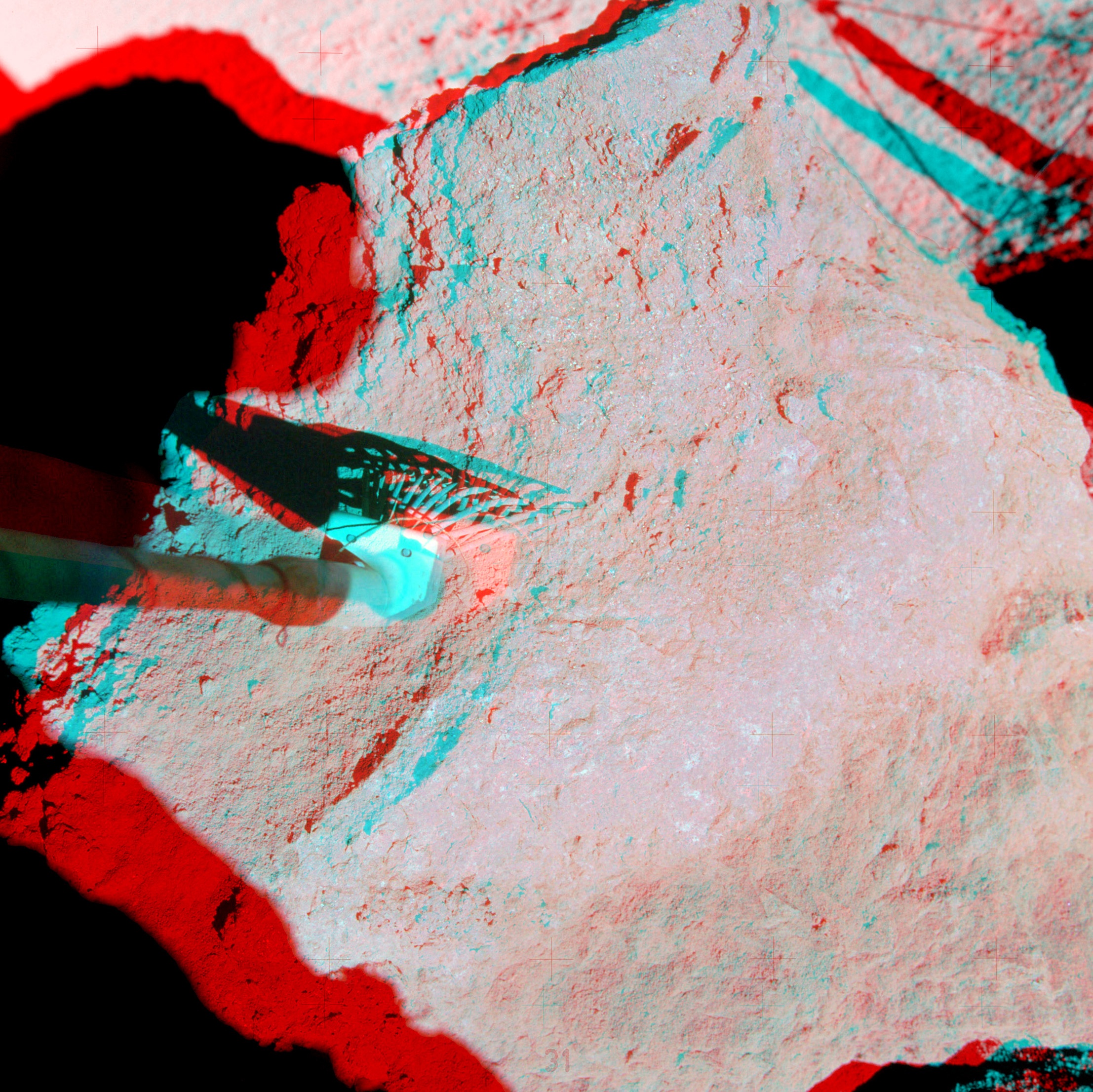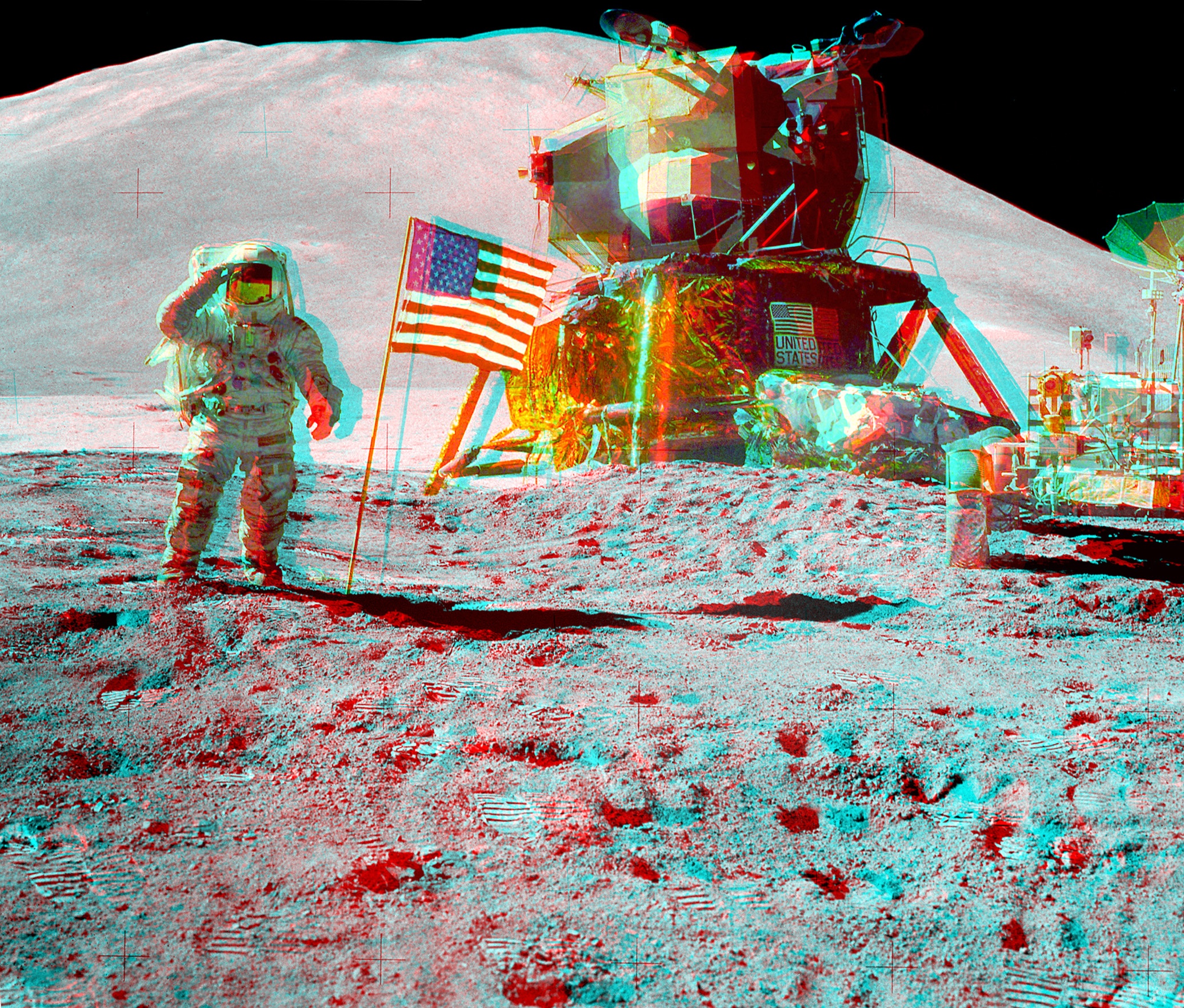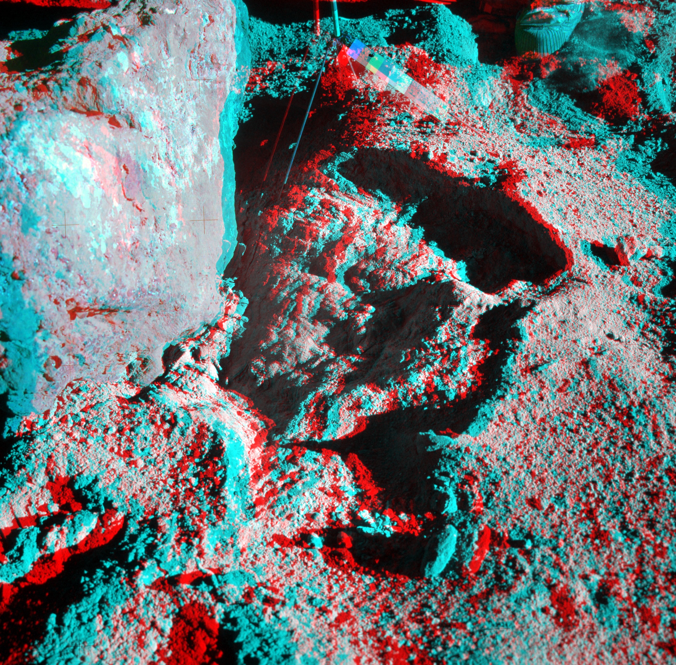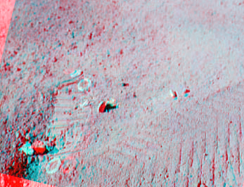 Red-Blue Anaglyph of the ALSEP, LM, LRV (0.3 Mb