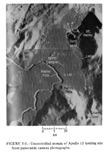 Geologic map of the Apollo 15 landing site. Photograph courtesy NASA and the Lunar and Planetary Institute. Hi-resolution scan by Stephen Tellier (LPI).Figure 5-2 ( 138k or 833k )