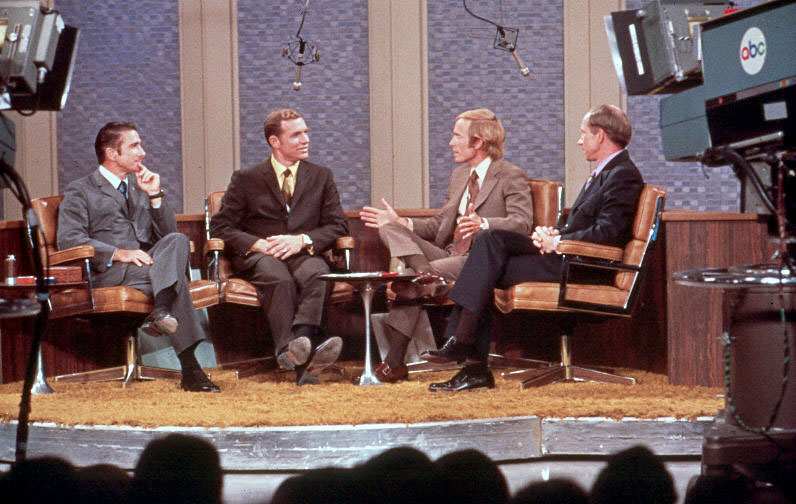 Jim Irwin (left), Dave Scott, and Al Worden appear on the Dick Cavett Show. 26 August 1971. Scan by J.L. Pickering.71-H-1471 ( 157k )