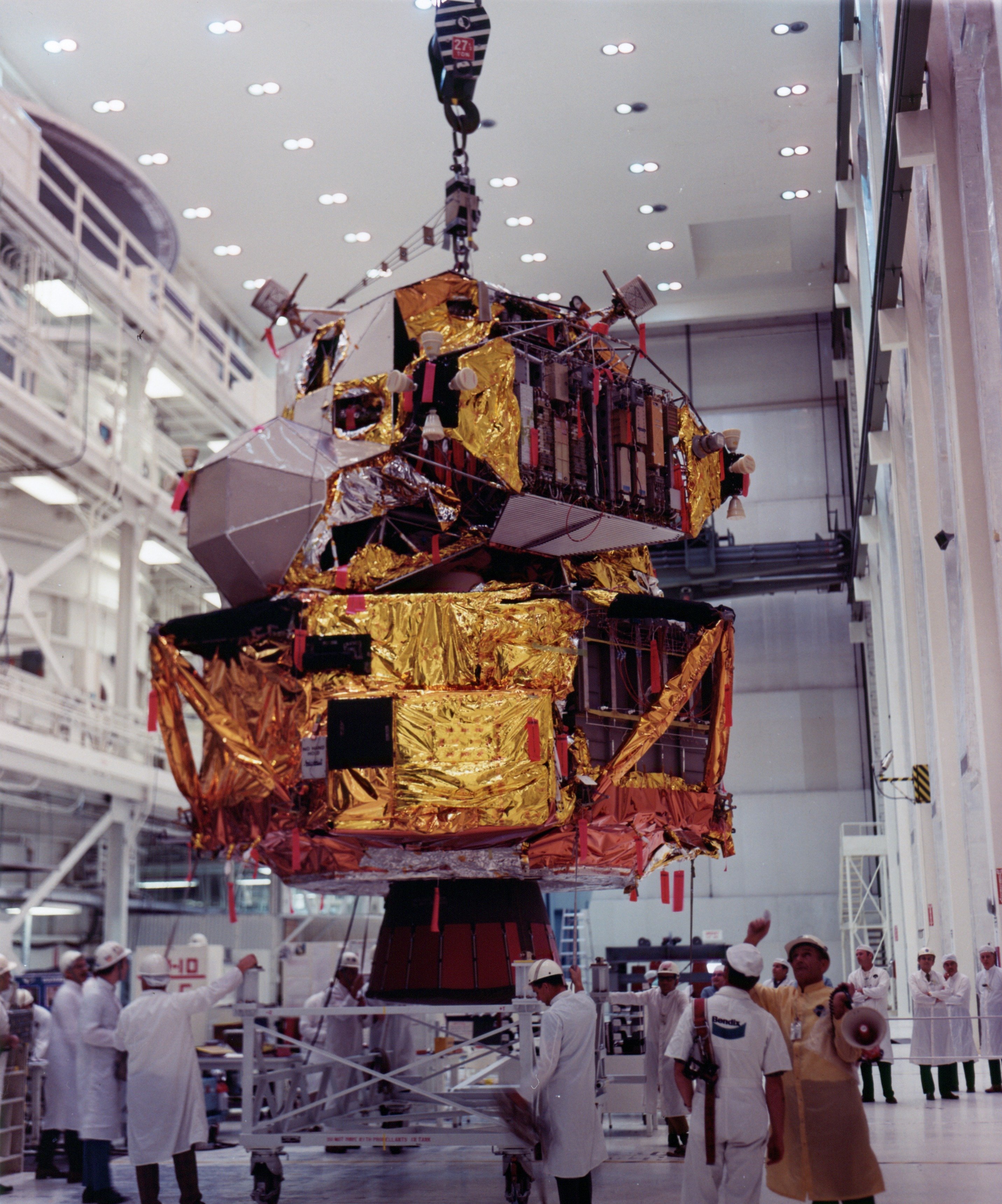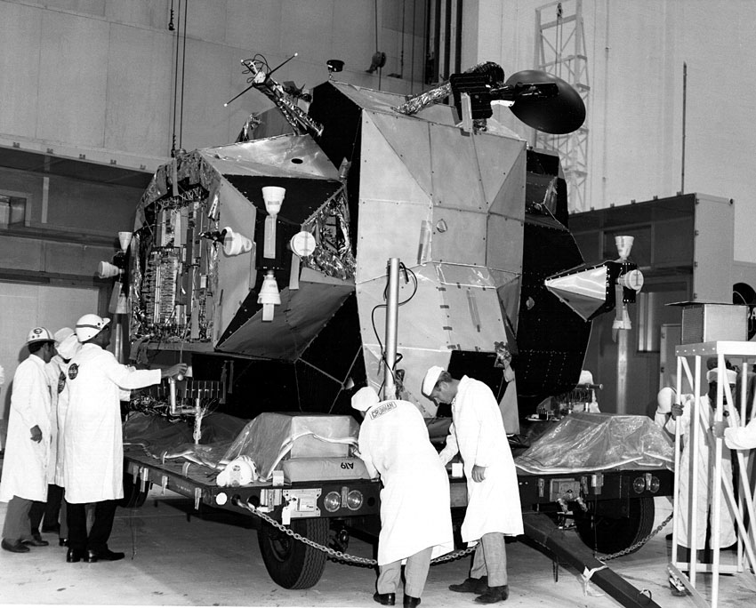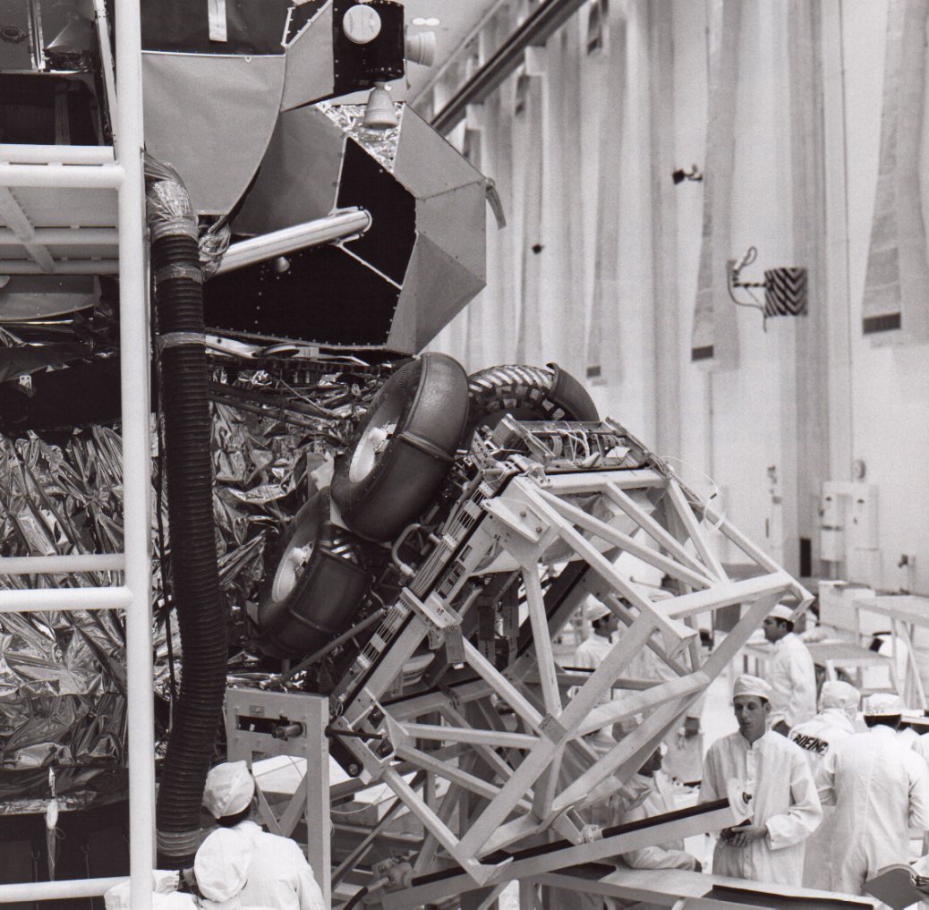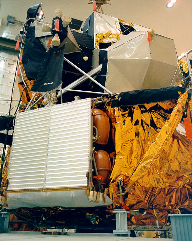 LM Ascent Stage and EVA floodlight during rendezvous. Scan by Kipp Teague.AS15-96-13043 ( 159k or 1371k )