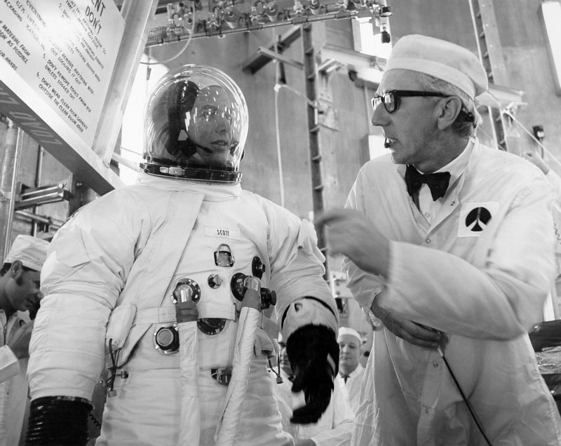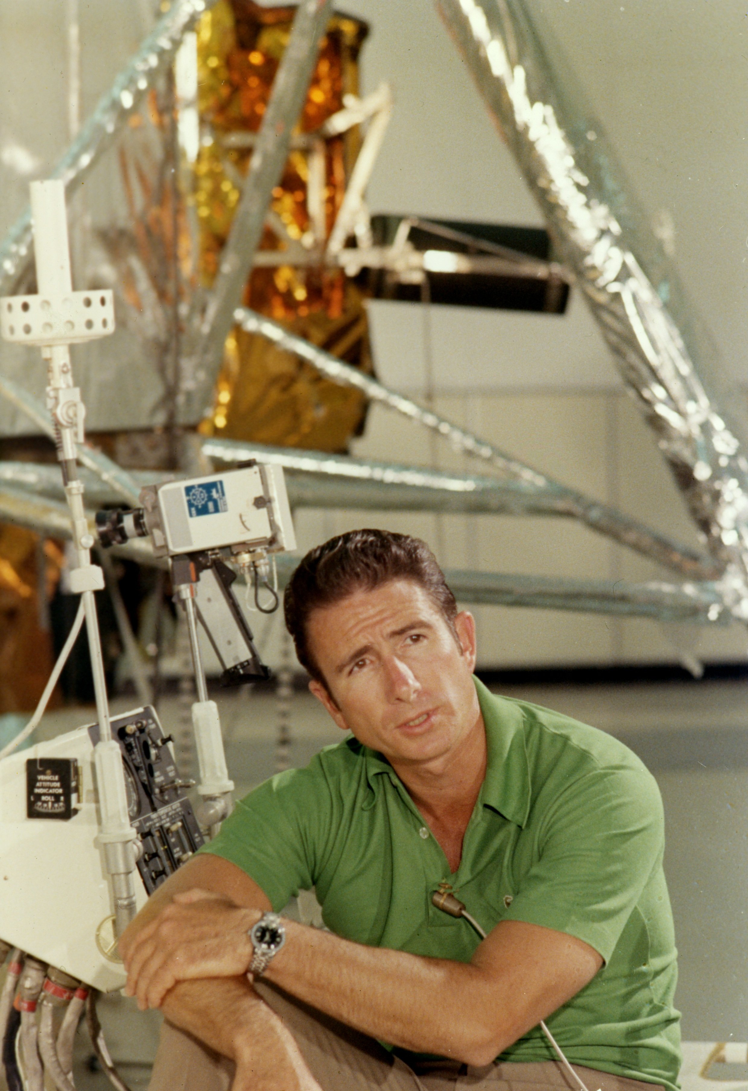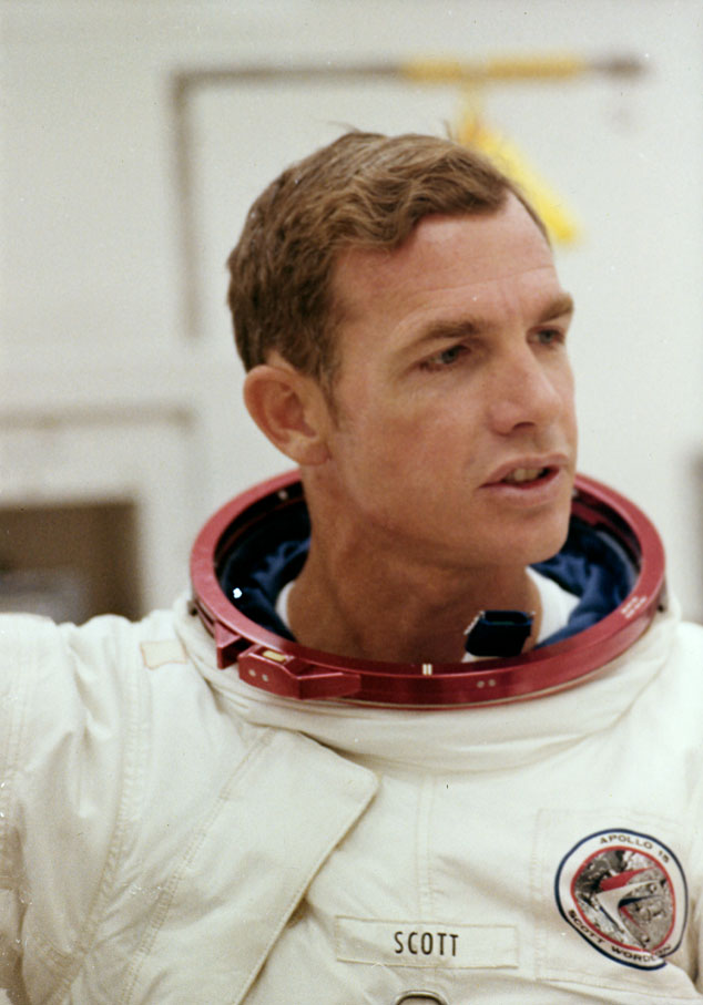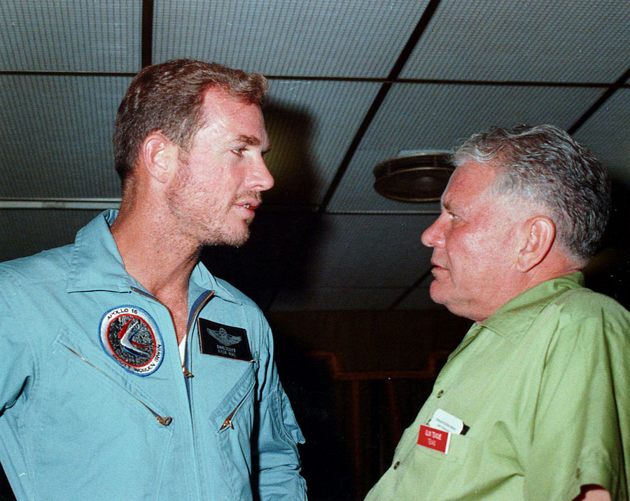 Dave Scott talks with Texas Congressman Olin Teague aboard the Okinawa. 7 August 1971. Scan by J.L. Pickering.S71-42258 ( 135k )