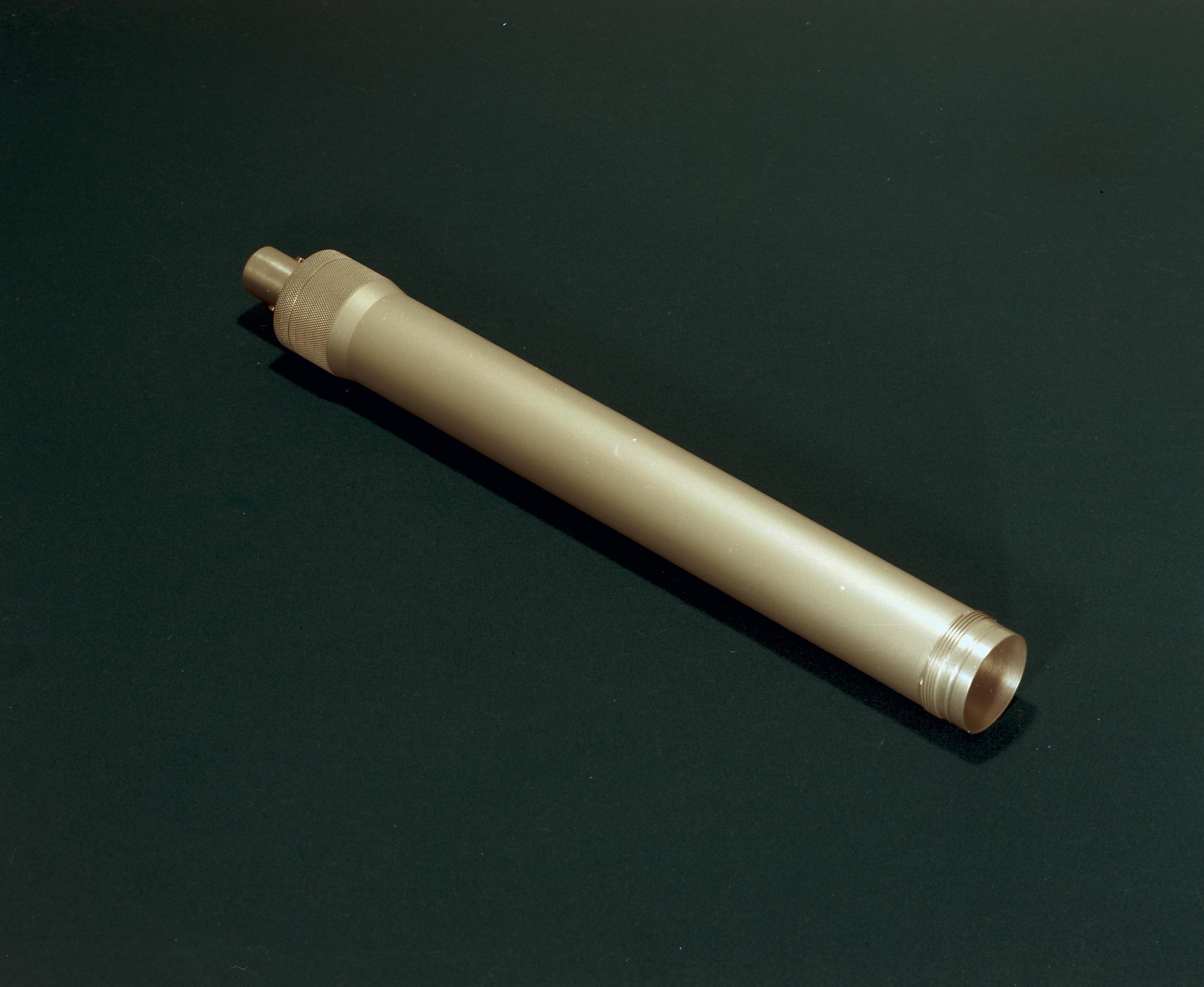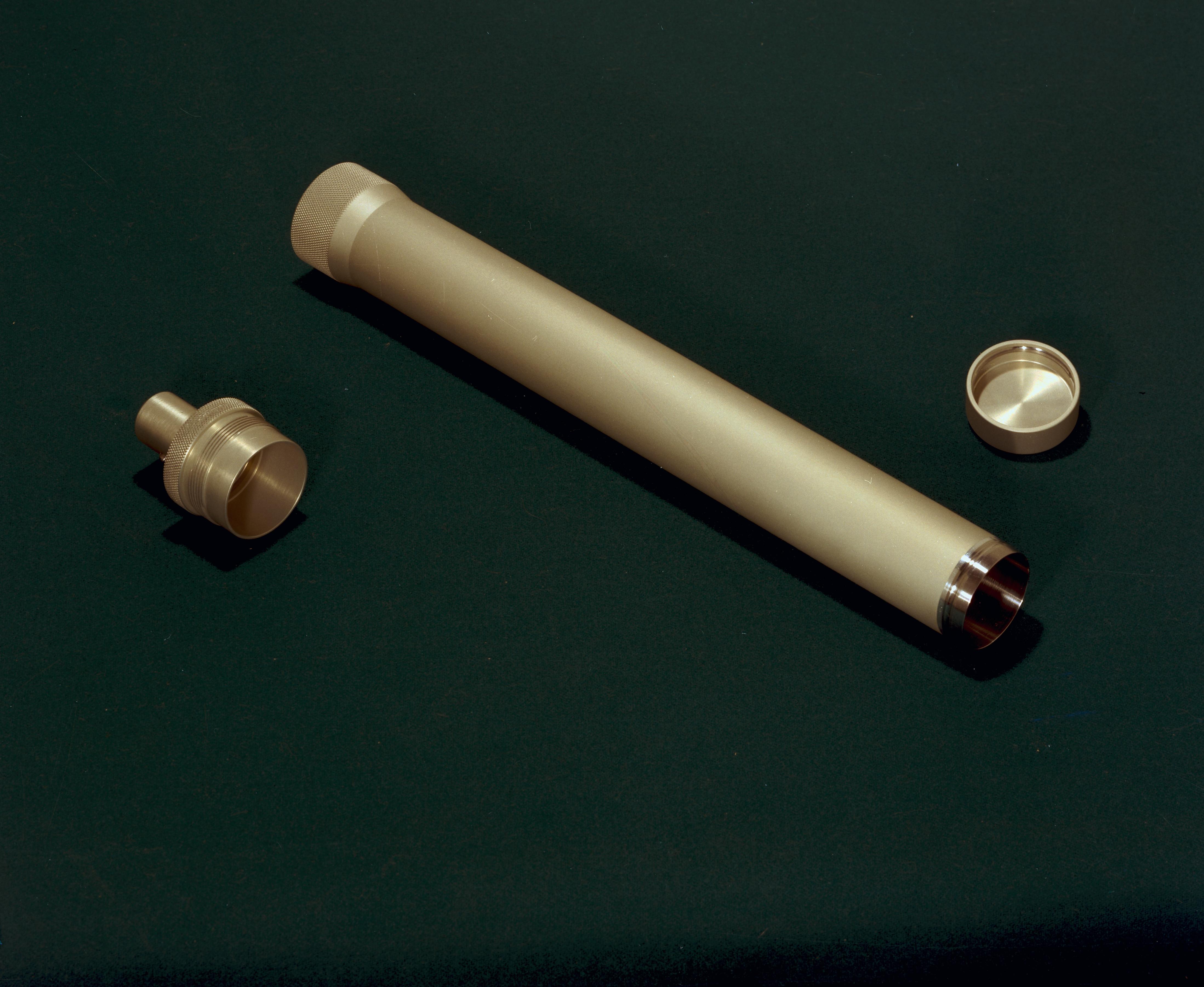 Photo by Carl-Gustaf EdhardtI who writes, "I took this photo when Jim Irwin and his daughter (Jill, age 15) visited the King of Sweden Carl XVI Gustaf on December 3 in 1976. I was working as a photographer on a daily christian newspaper at that time. Three days later, he visited the editorial office and kindly signed the photo for me. I happen to have the same name as the King."Flown Apollo 15 LM Utility Light Bracket ( 1.0 Mb )