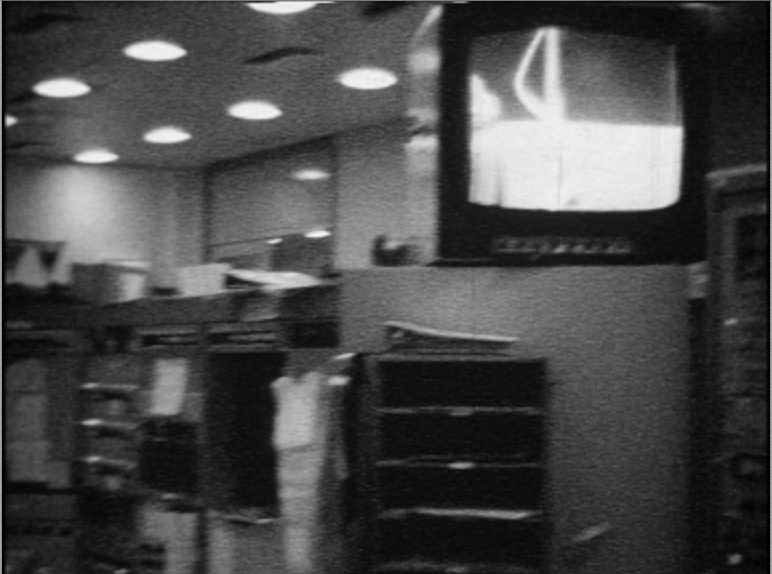 Ed's third Super-8 clip is a distant shot of the TV monitor, which is at the upper right. In the clip, John is clearly using the dust brush on the LCRU mirrors and on the TV lens. He probably finishes dusting at about Journal time 165:47:40.