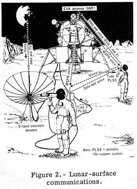[Duke - "John's just saying, 'we have plenty of consumables, why are you rushing us?'"]154:15:50 England: Okay. What we'd like you to do, as best you can, a patchwork job on that antenna. We saw about a 15 dB loss from you when it broke. And we'll probably ask you and Charlie to switch OPSs tomorrow, because you're relaying. (Pause)[Jones - "As in, 'everybody's rushing around, there must be a fire someplace'."]