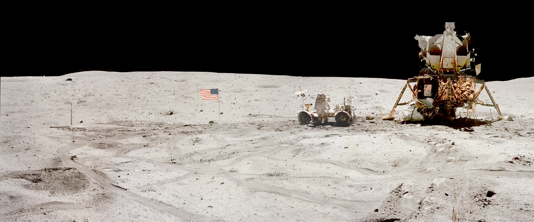 [During the return to the LM at the end of EVA-2, the Rover Navigation system stopped working. Although Houston believes the problem was caused by improper switch settings, the health of the Nav system won't be known until John and Charlie are on their way to North Ray Crater.]166:03:44 Young: Okay. She's reset and level; and you heard her re-mode. (Pause) See it get to the Sun now, Charlie. (Laughs) (Pause)[Duke - "I was unsure that the Nav system was going to be working; and so I ran out 50 to 100 yards to the north of the Rover and turned around and tried to sight on something between the LM and Stone Mountain. And my thought was, we can always see Stone Mountain and I'll pick a spot and we'll just aim for that spot on Stone Mountain and, if we've been going mostly directly north, when we come back, if we're not in our tracks, we'd just head for that point. And that would get us back."]