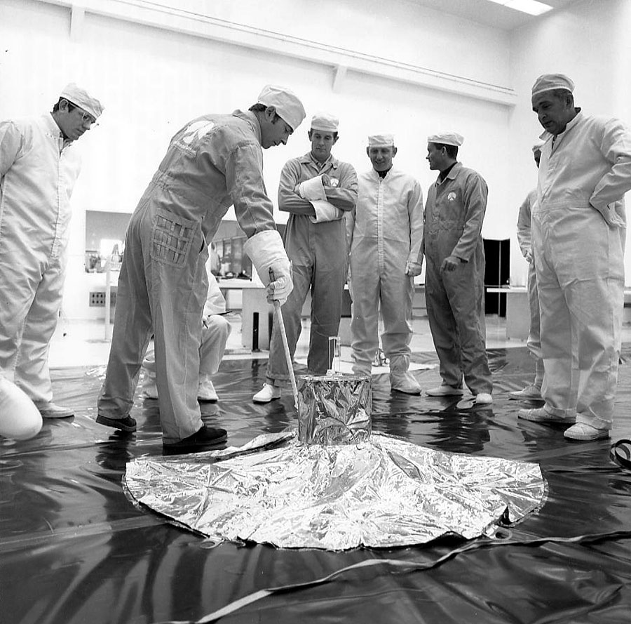 [The heat flow readings at the Apollo 15 site were higher than expected and, consequently, the experimenters are very interested in the Apollo 16 results.]121:21:21 Duke: Okay, (on) the second one: the thermal cover is in to the second red mark. And, Tony, the probe is out of the ground up to B-8. Right on the line between B-7 and B-8.