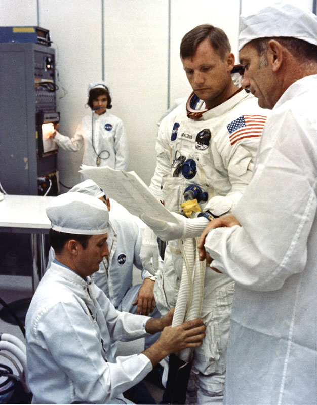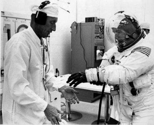["You could let out the legs. The legs had these laces and you could undo the laces and sort of work it around and it would extend the leg; and I was about ready to do that. I felt like I could do that. I had seen the suit techs do it; but they (meaning Houston) nixed it. They didn't want me to do that, in case I screwed it up. But with just a few more hours of preliminary training on cleaning seals and making sure the laces are right and preliminary inspections, I think a guy could maintain his own suit."]