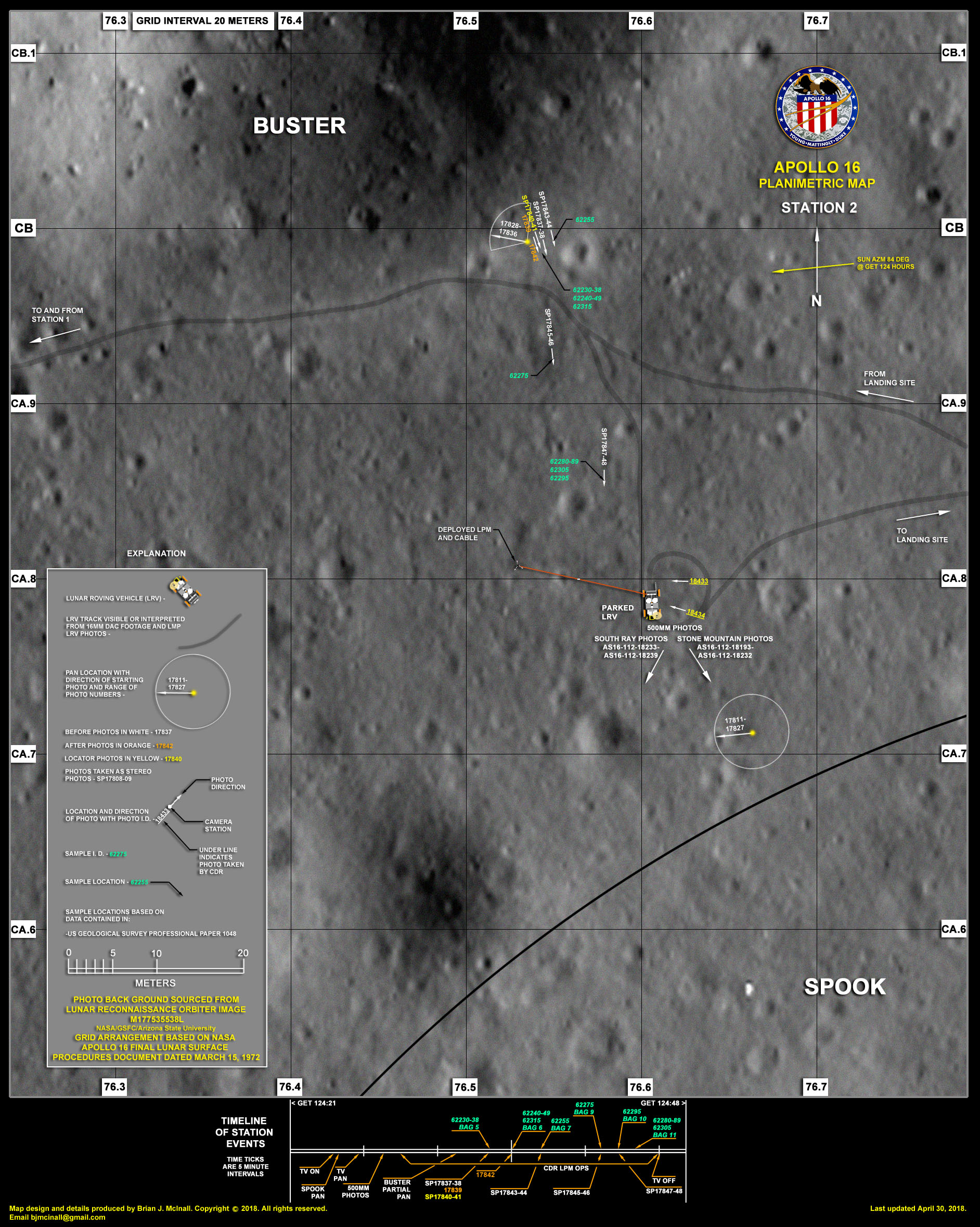 [Station 2 activities are detailed in Brian McInall's Station 2 Planimetric Map.]124:21:52 Duke: (Probably looking at his checklist) Okay; pan one, up on Spook crater.