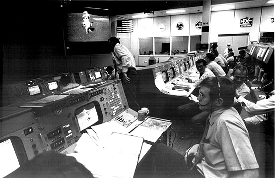 [Duke - "Yeah. 'Cause they'd have to help you get up and get you down. When you start to pull out (of the dive that gives one-sixth g), it's a 2 1/2-g pull-out and, you know, 360 pounds is a lot of weight and your legs couldn't support it. So, as the airplane started out, they'd ring a big bell and, if you couldn't get down, two guys'd would slam you to the floor and you just sort spread-eagled on the floor while doing this 2 1/2 gs. Then, when you were ready to push over the next parabola, the guys would help you get up so you'd be ready to go when you got to the right g level."]