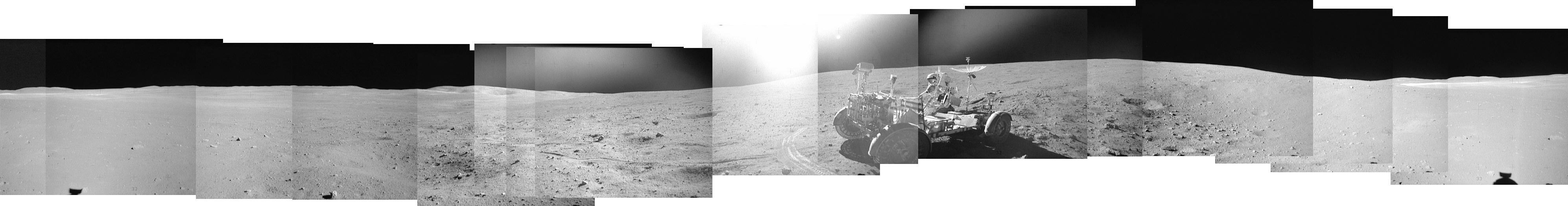 145:56:16 Young: Okay. It's dusted. Going downhill (from Station 4), it doesn't get near as much dust as it did coming up, for some reason. (Pause) Maybe that's because (chuckles) it was 4 kilometers one way (from the LM to Station 4) and half of one the other (from Station 4 to 5). That's probably the reason.