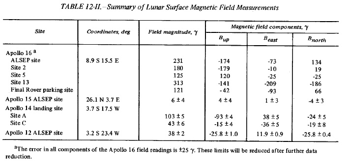 145:56:57 England: ...magnetometer reading. Station 5 there is 125 gamma down; the ALSEP site was 230 gamma - correction: (the Station 5 field is) up. The ALSEP site was 230 gamma down; and Spook was 180 down. (Pause)